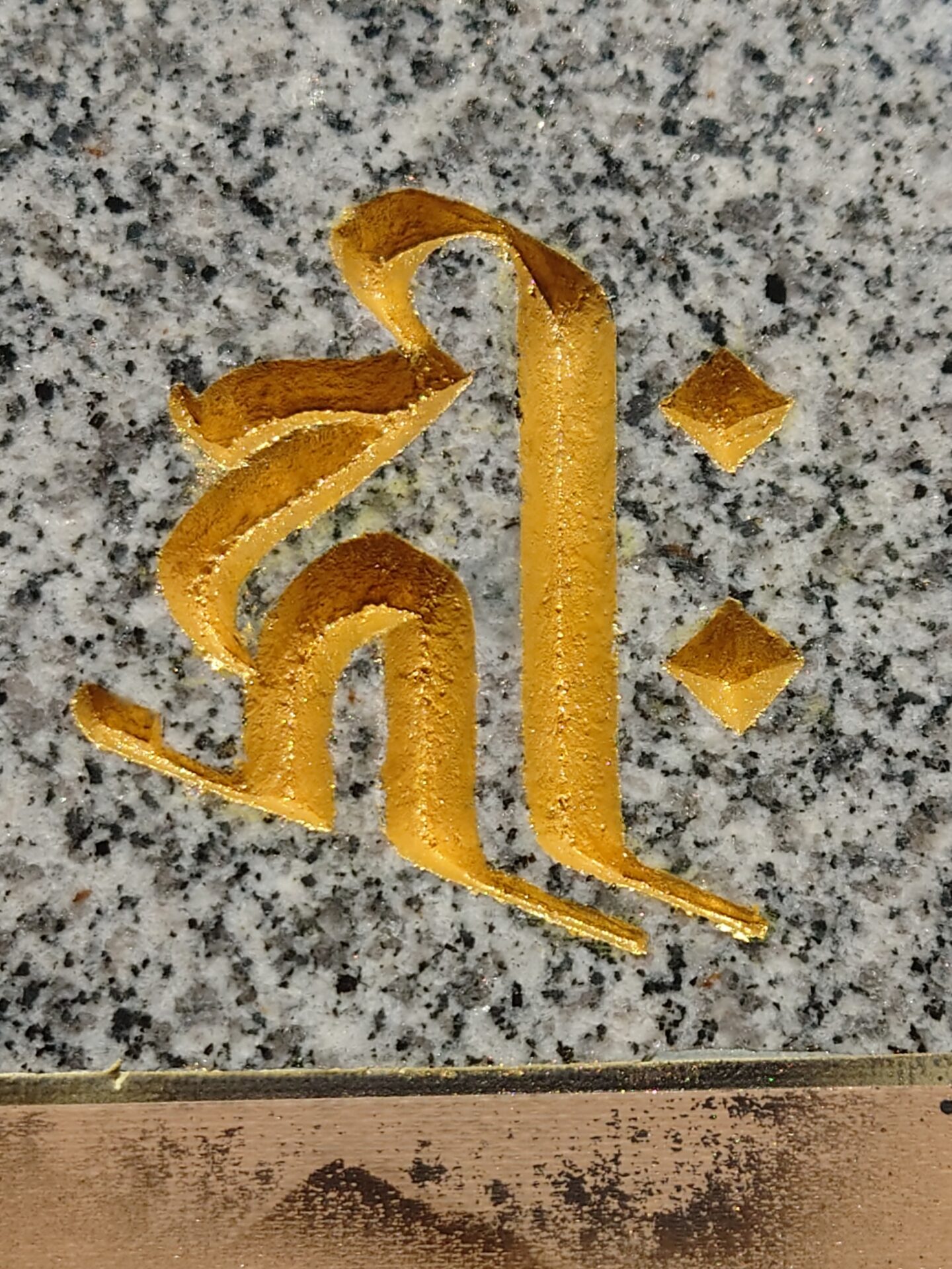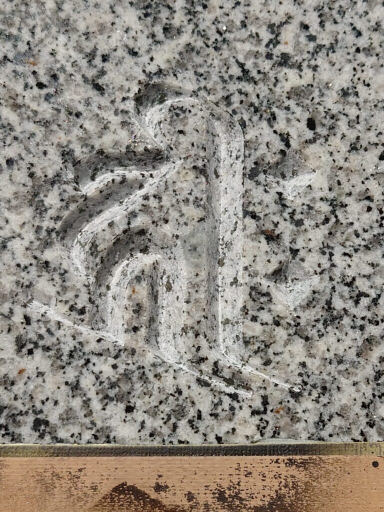 現場仕事と並行して工場では文字彫や家紋などを掘っています。