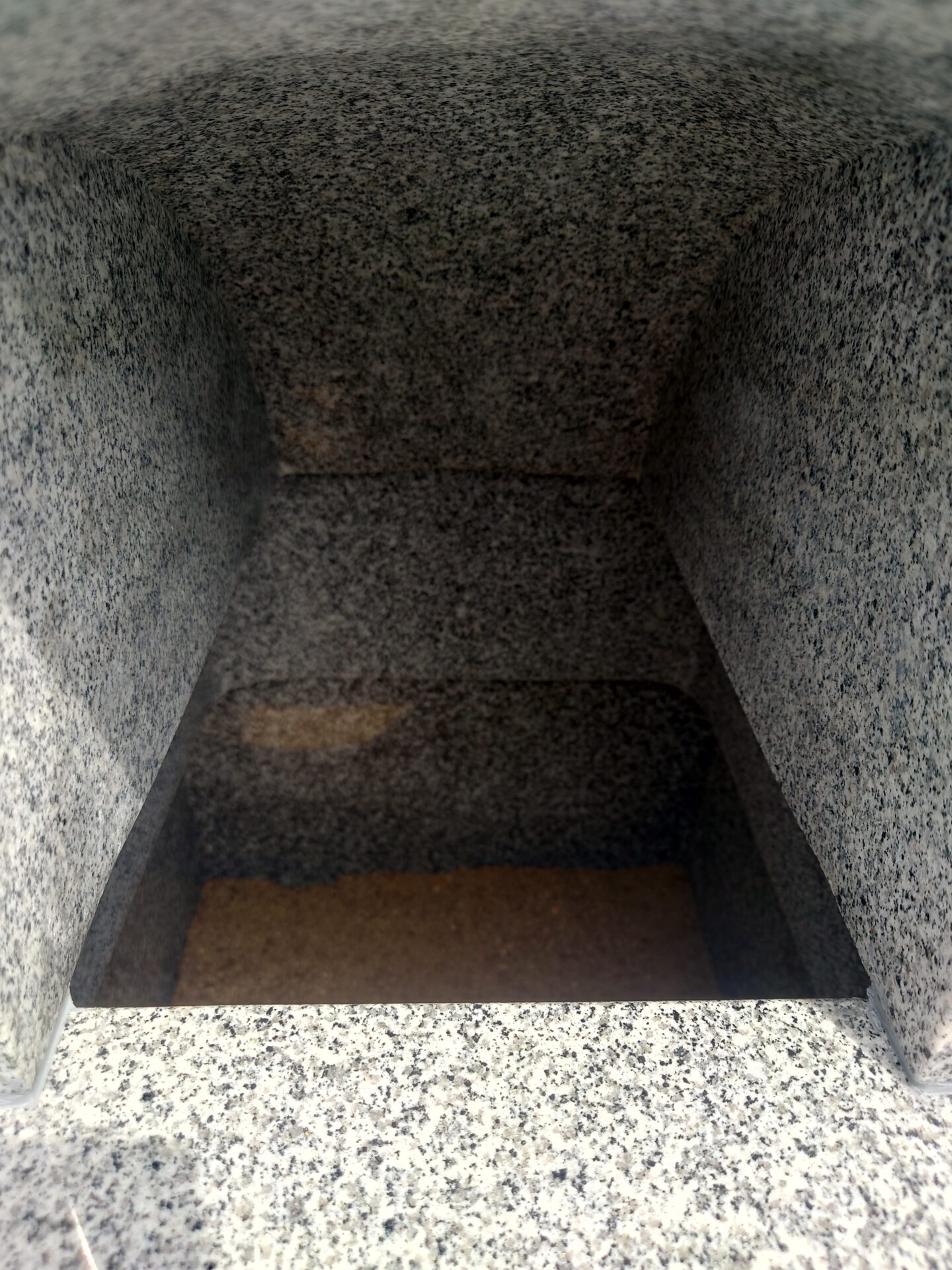 香炉(線香立て・ローソク立が付いている石)に家紋を彫ります。