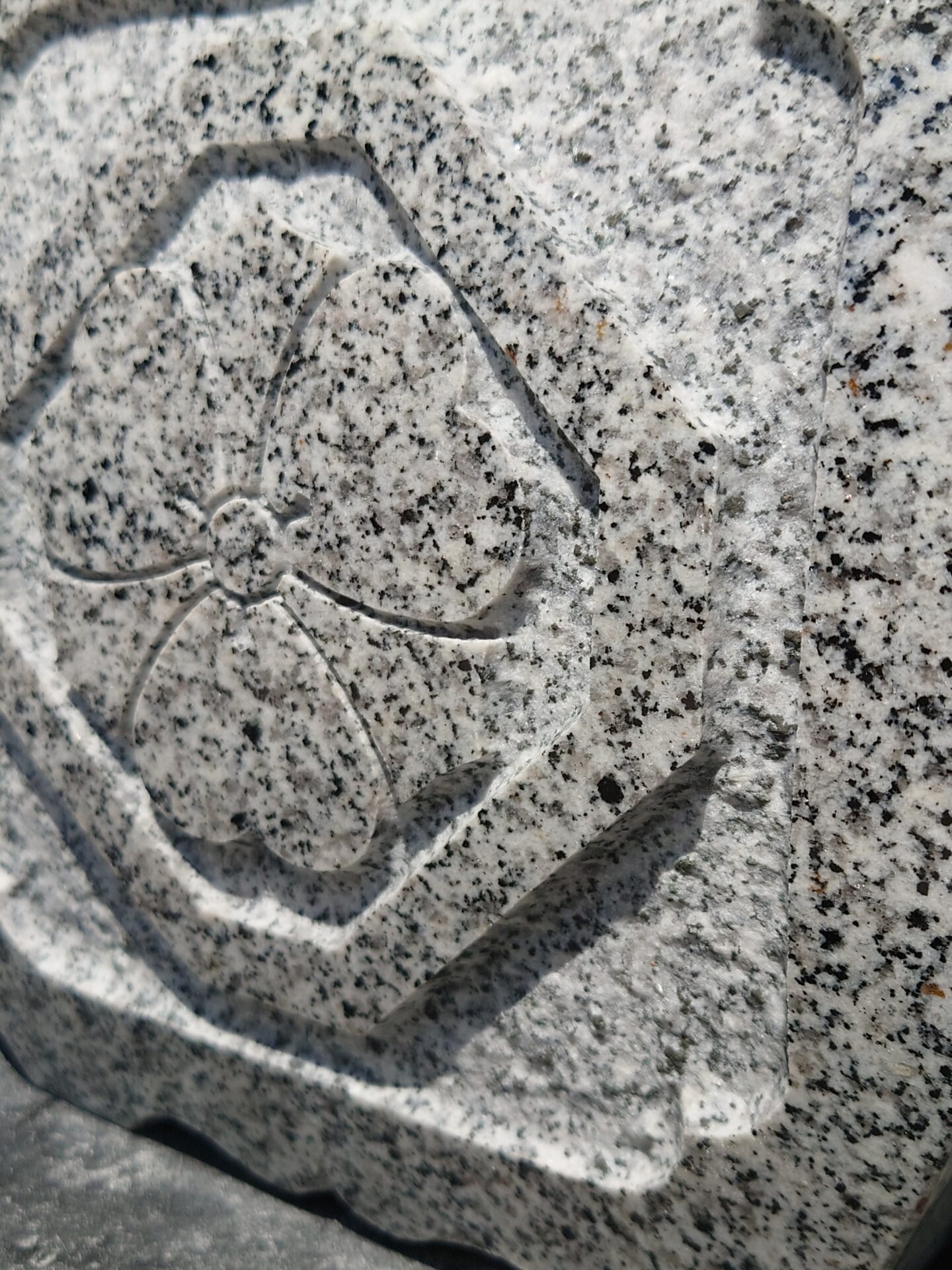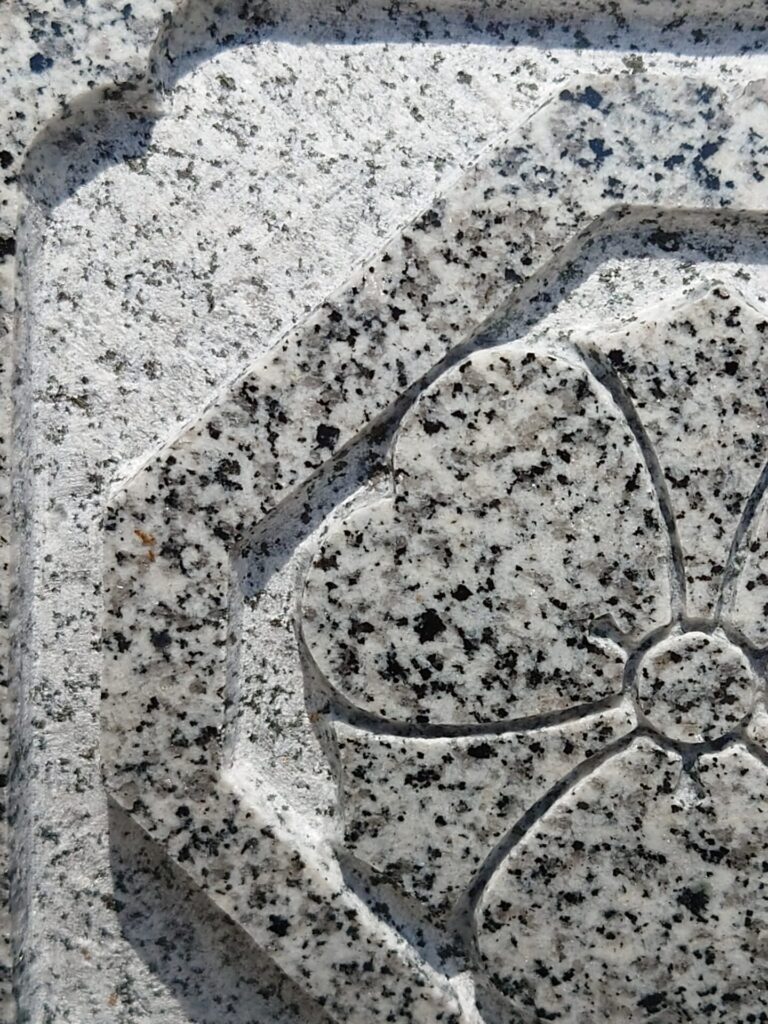 これはどんな石でもサンドブラストで彫ったらこんな感じに仕上がります。