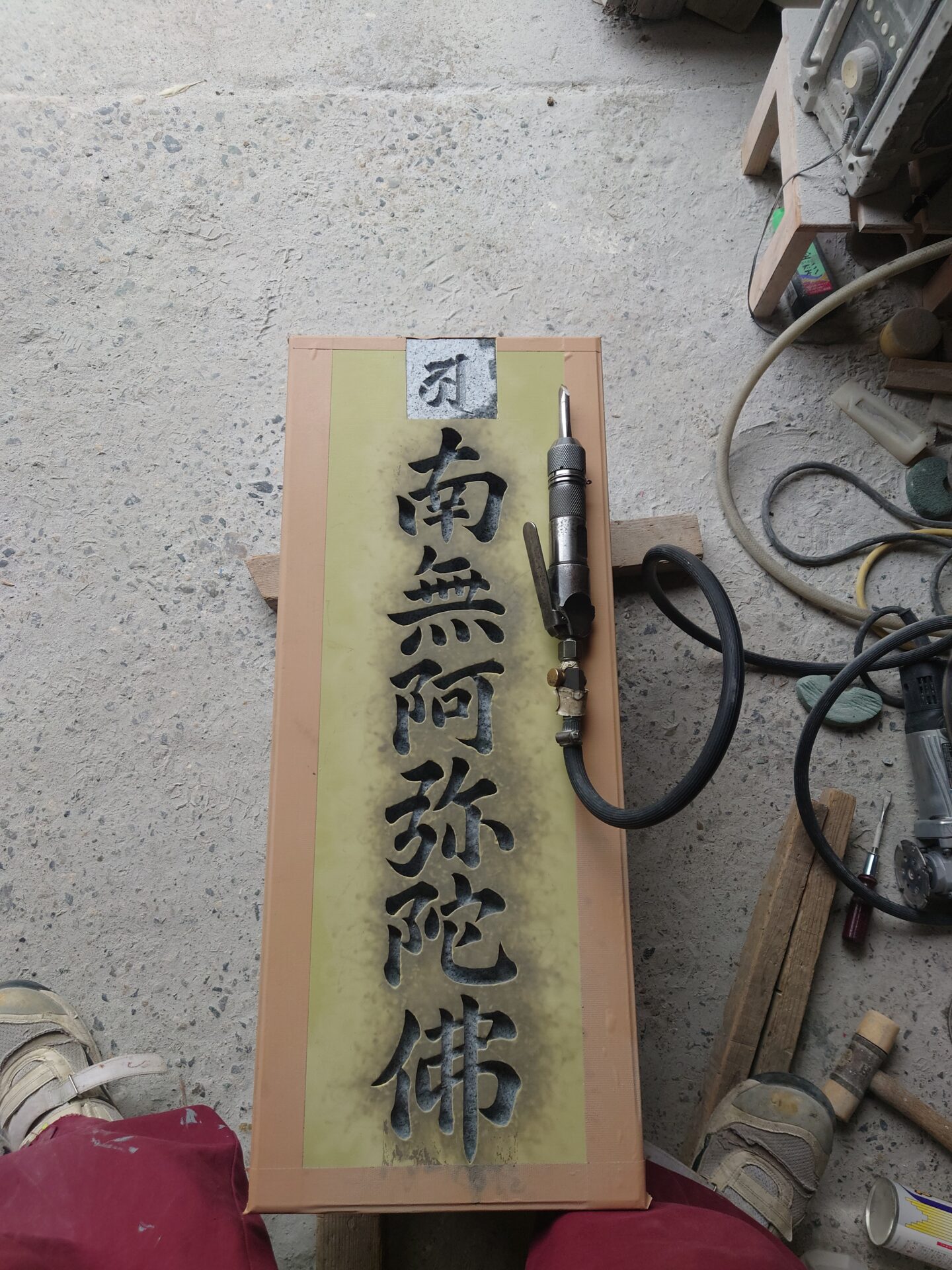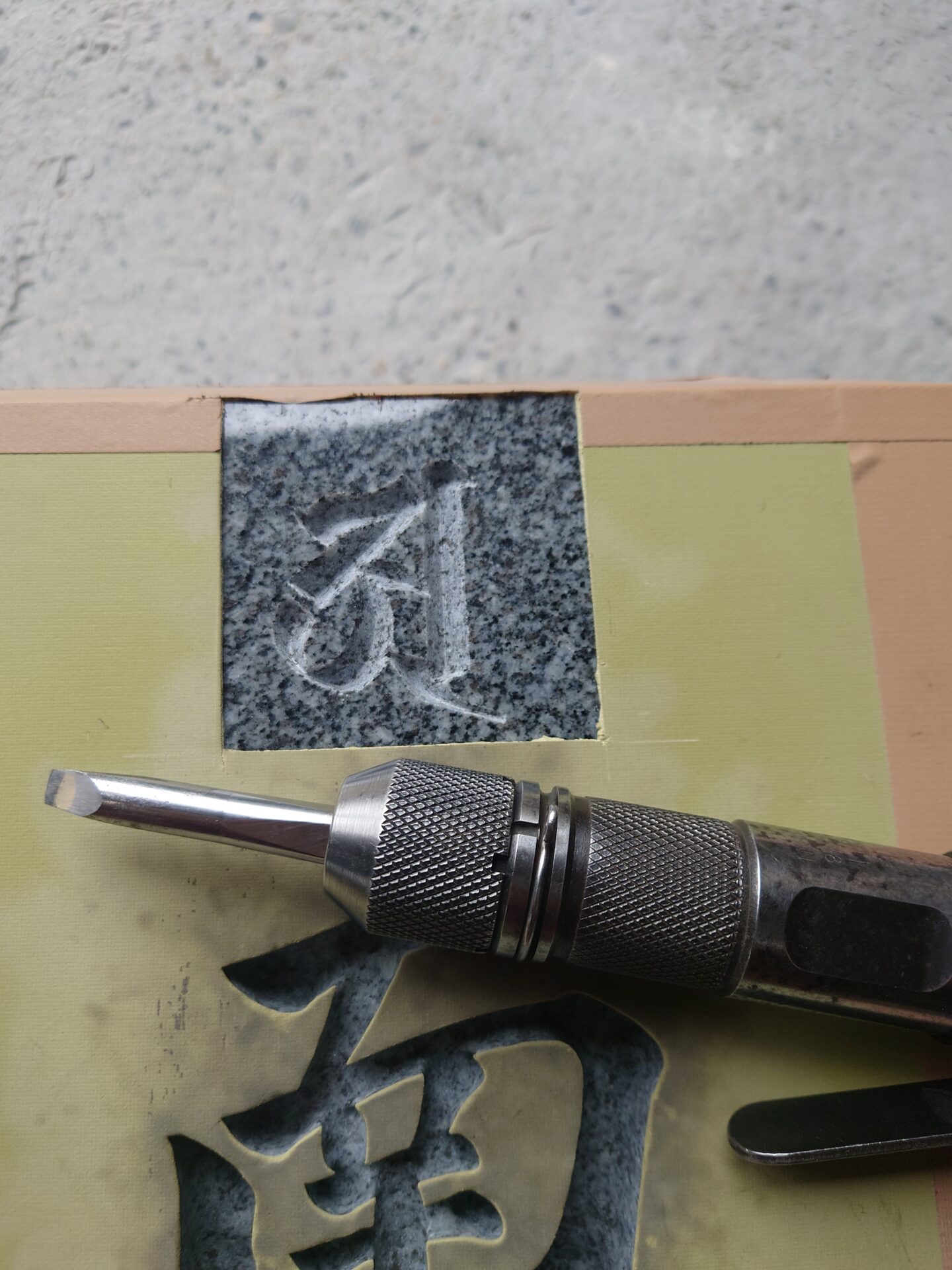 墓石が納品され検品をして OK ならば文字を彫っていきます。