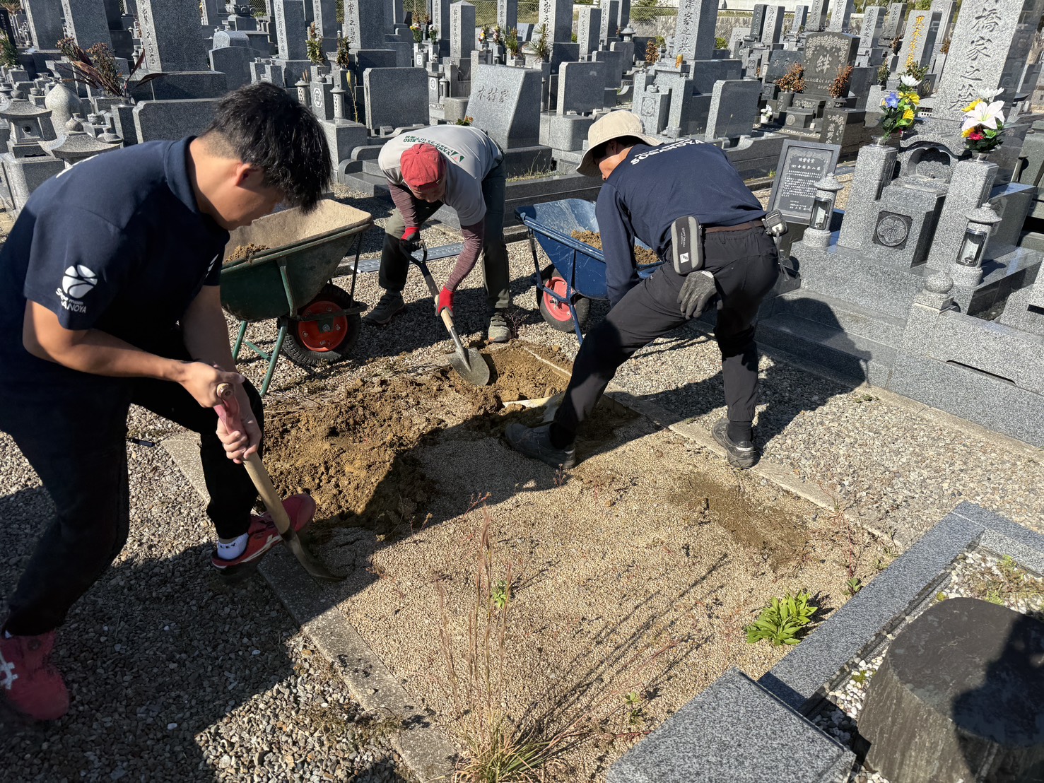 の長尾山霊園に囲いの石を据え付けに行って来ました。