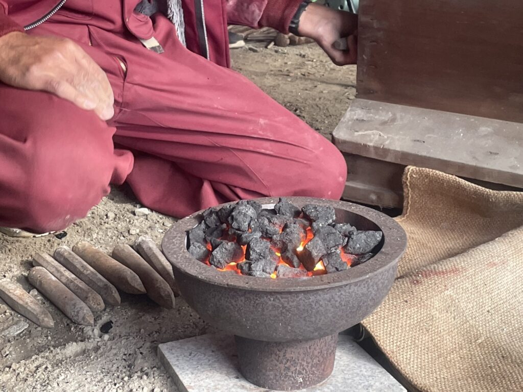 この日は「ふいご」を使って道具を焼くところを動画で撮る作業でした。