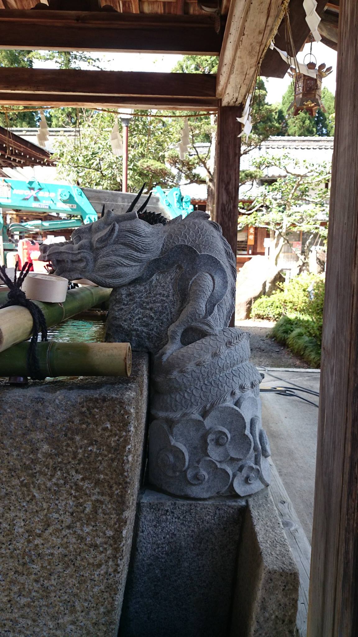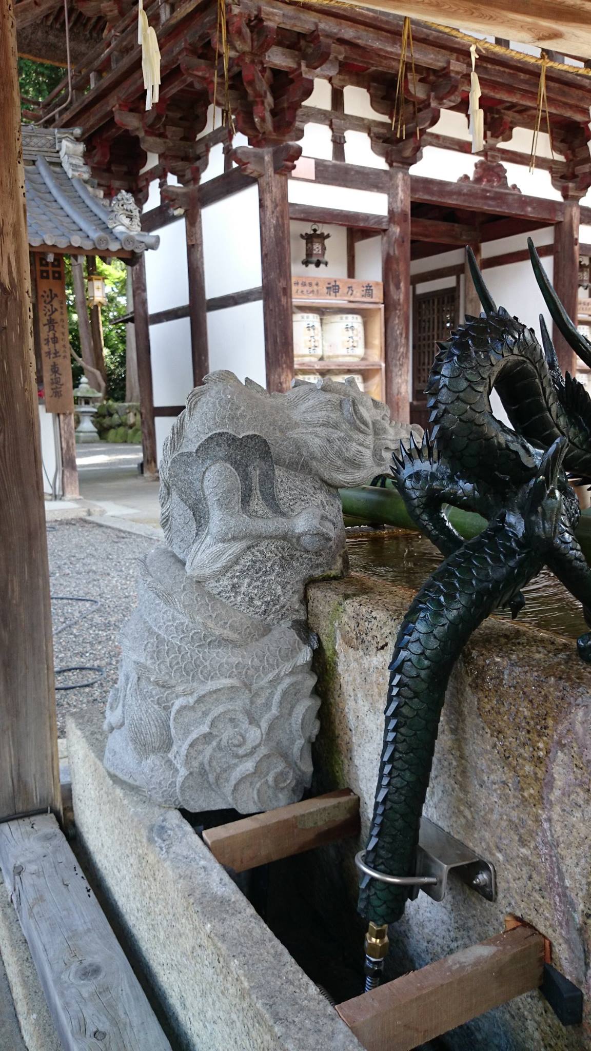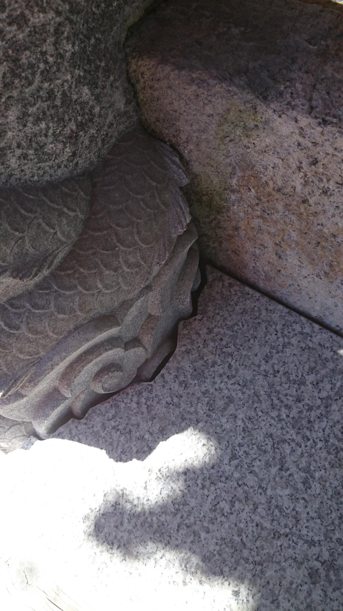 十年位前に氏神さんの沙沙貴神社に作らせてもらった龍の蛇口。新しく銅製の龍の蛇口を設置され、水の配管が見えるので蓋をしてほしいと言う依頼。どうしよう?