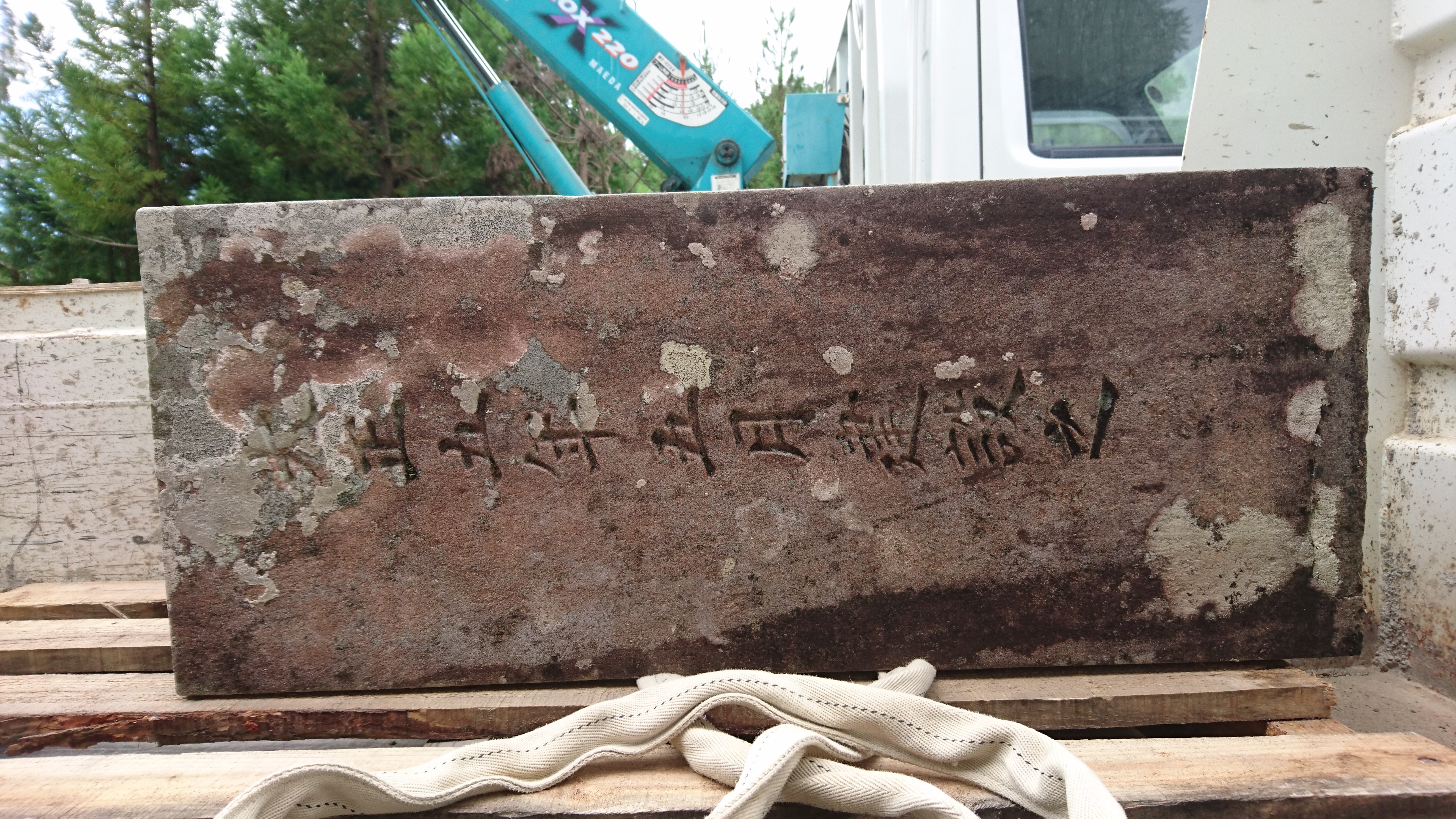 施主様がこの古い墓石を使って何か残したいと現場まで行く車の中で言っておられたので