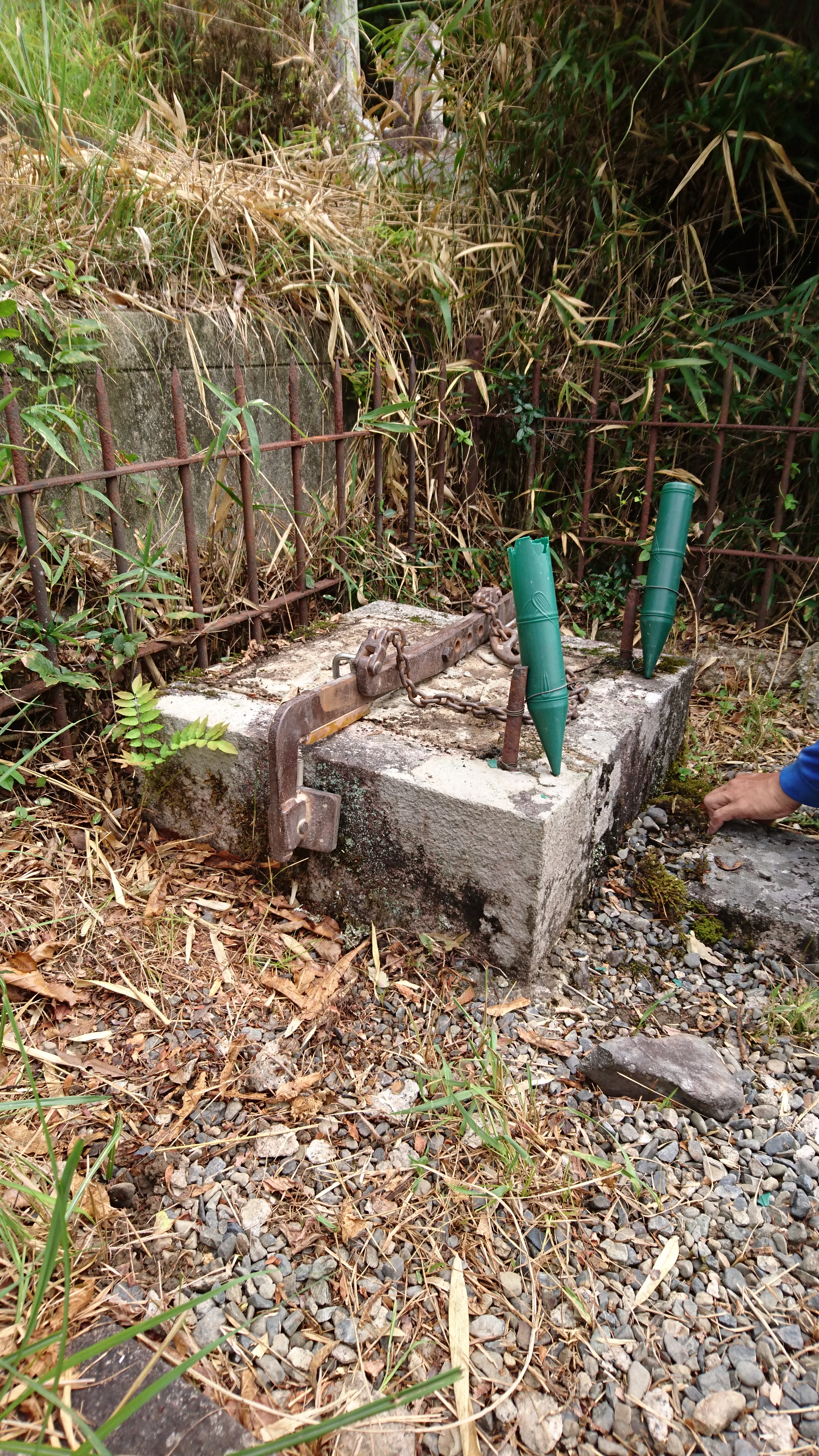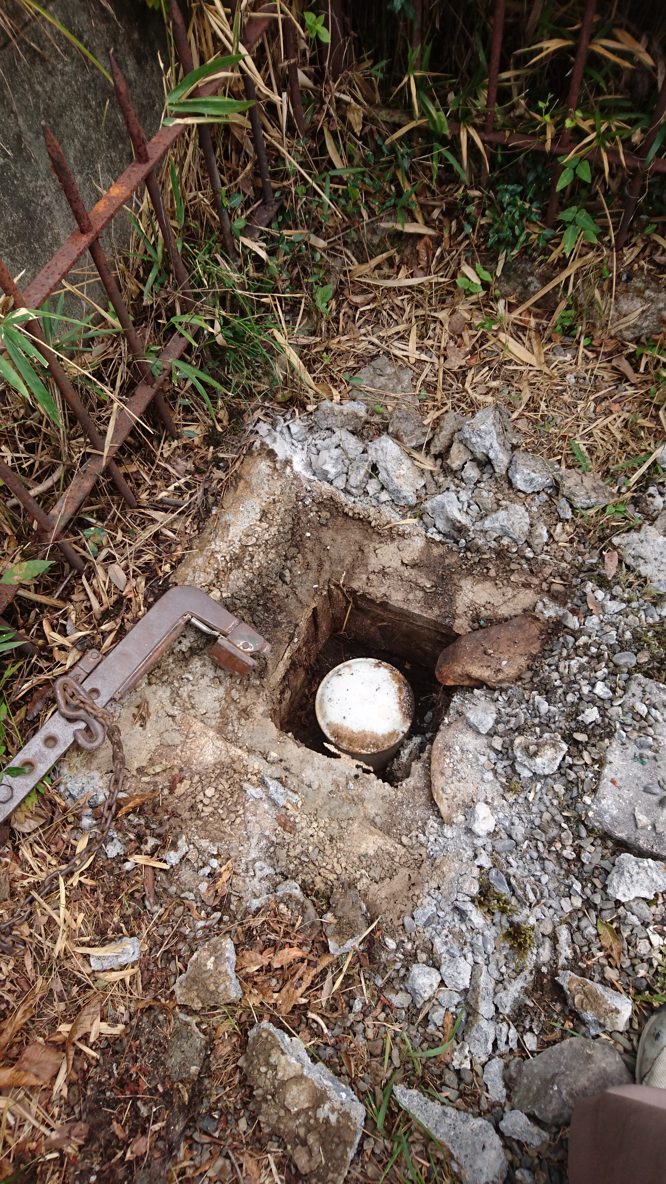 コンクリートを取って埋め戻し、まわりの鉄の柵を切って終了です。