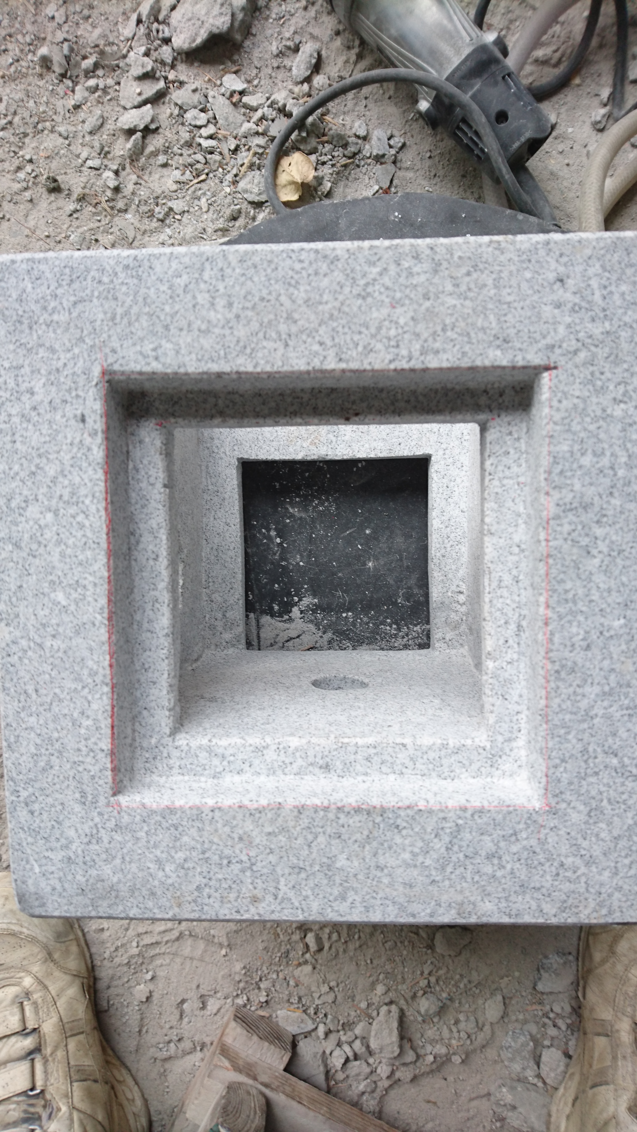 中国製品は下の写真のように建具と石の合わせ目がまっすぐに出来ていないので石をまっすぐに加工しなおさなければなりません。