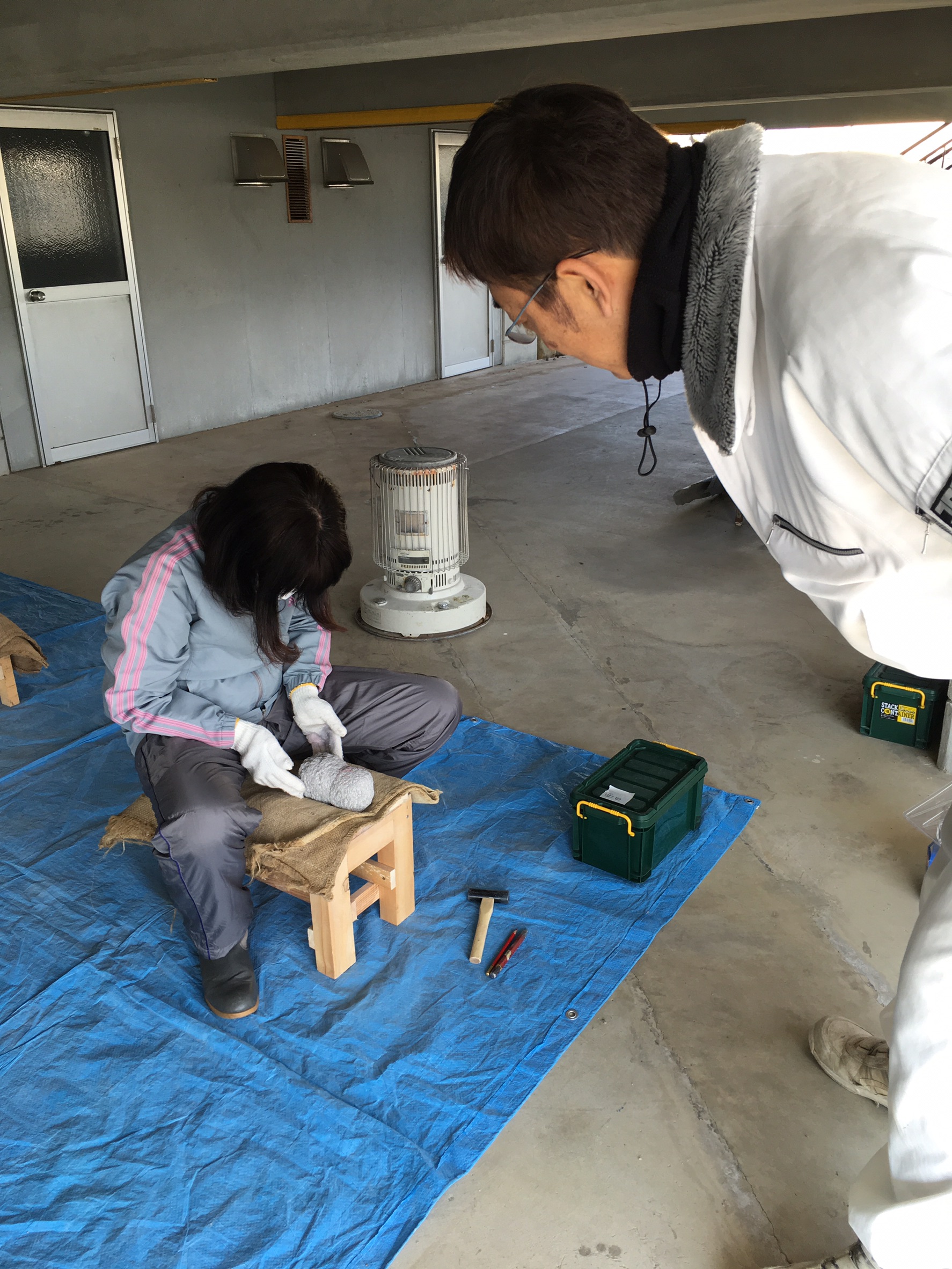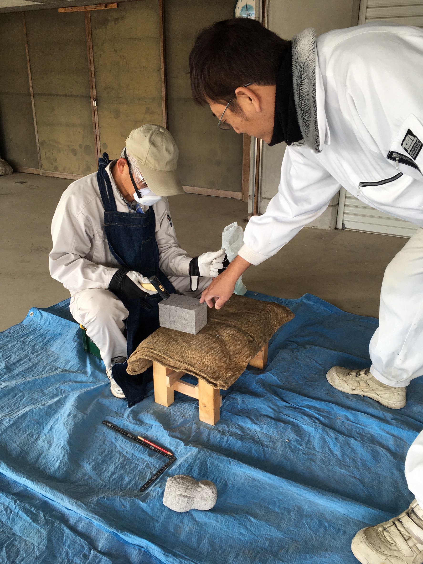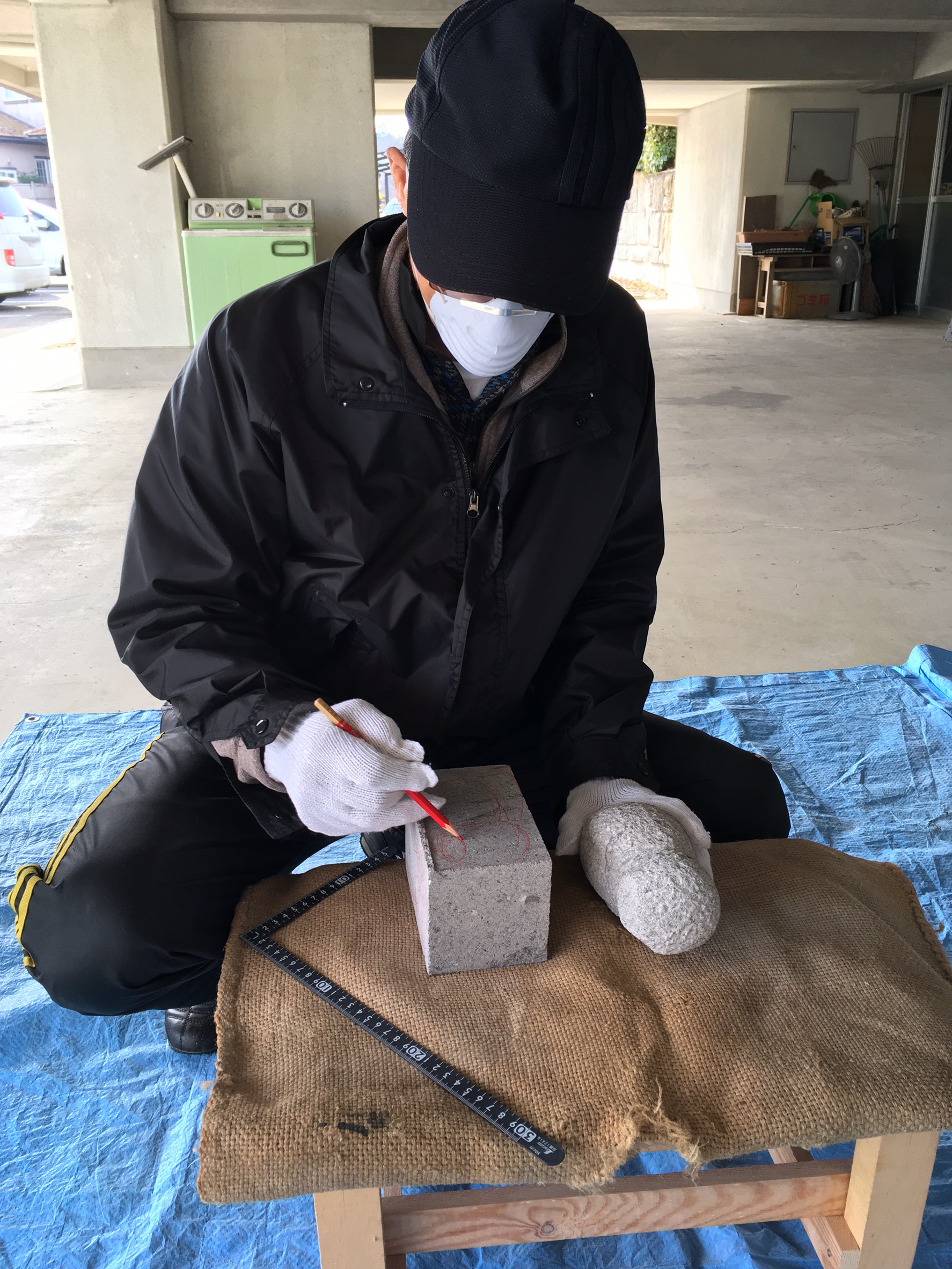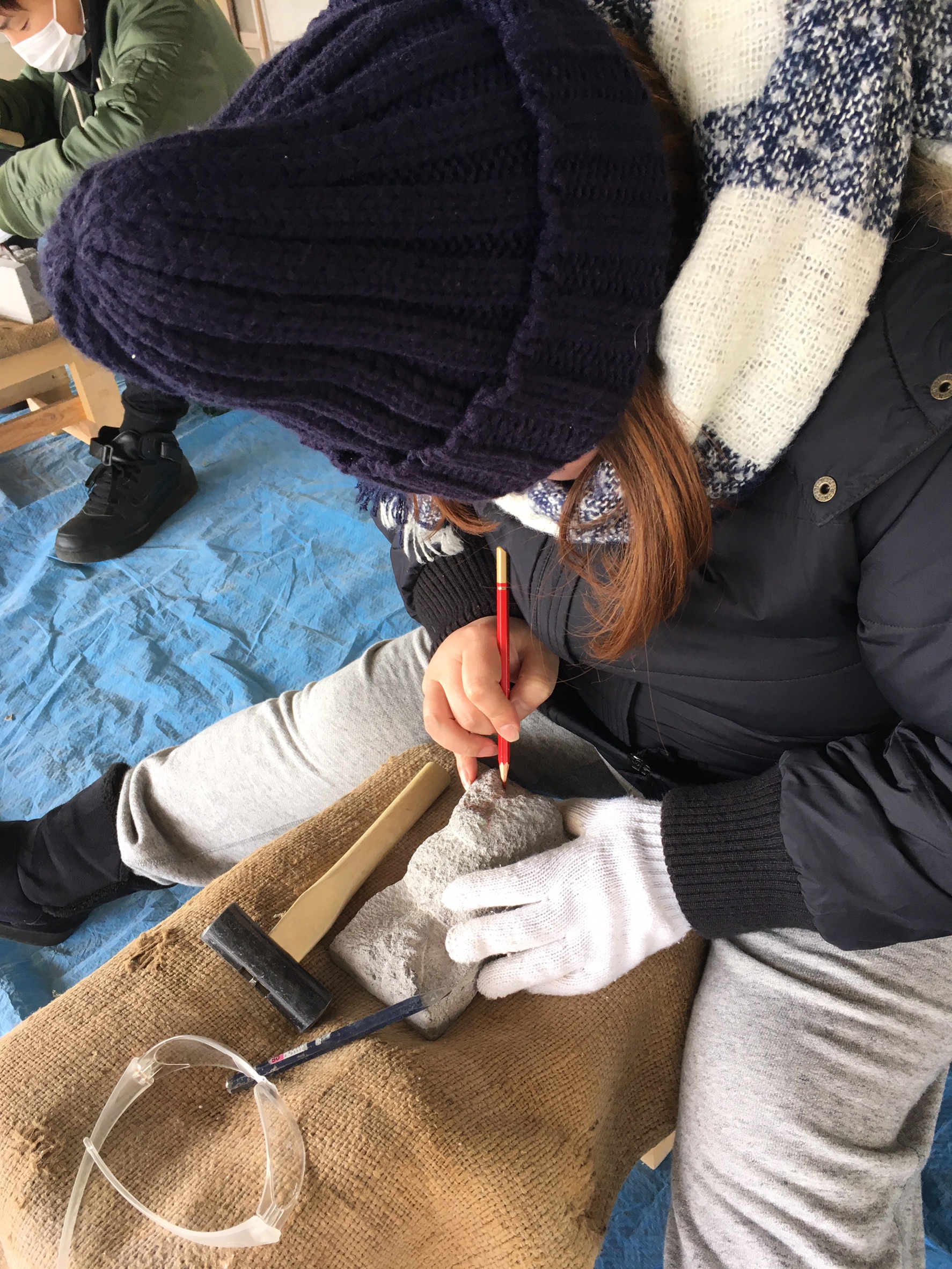 久しぶりの教室は天気にも恵まれこの冬にしては絶好の石彫り日和でした。