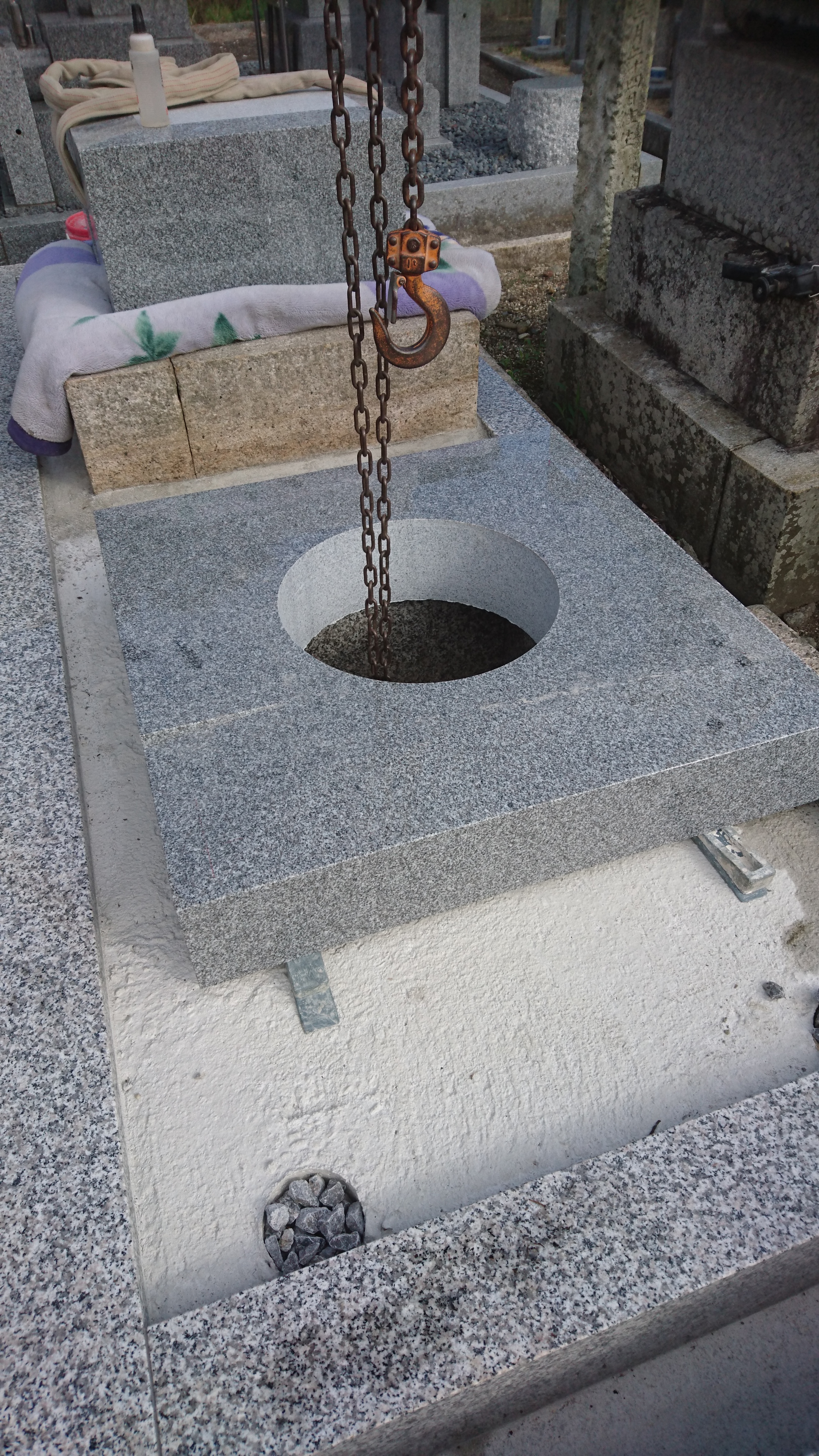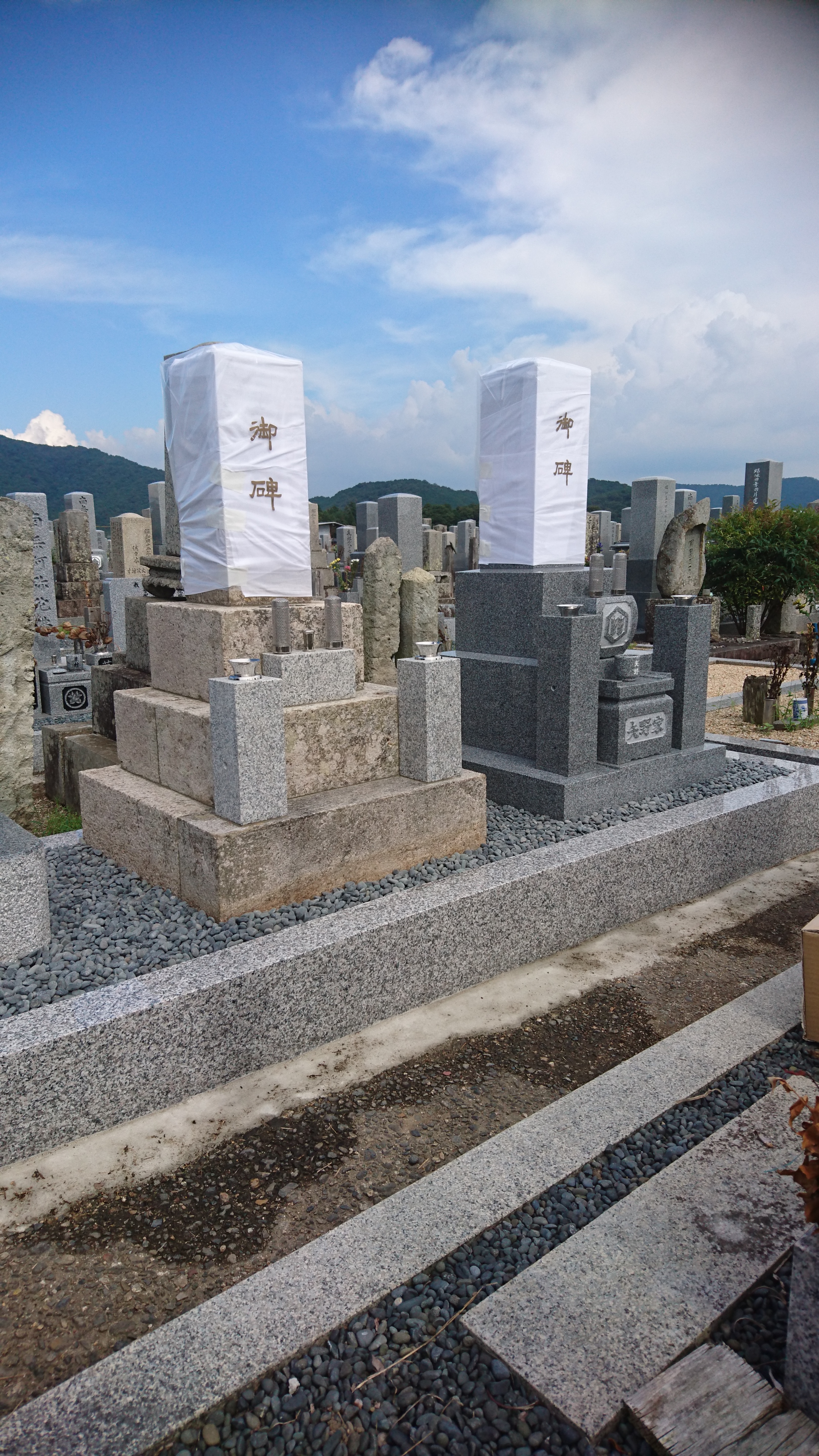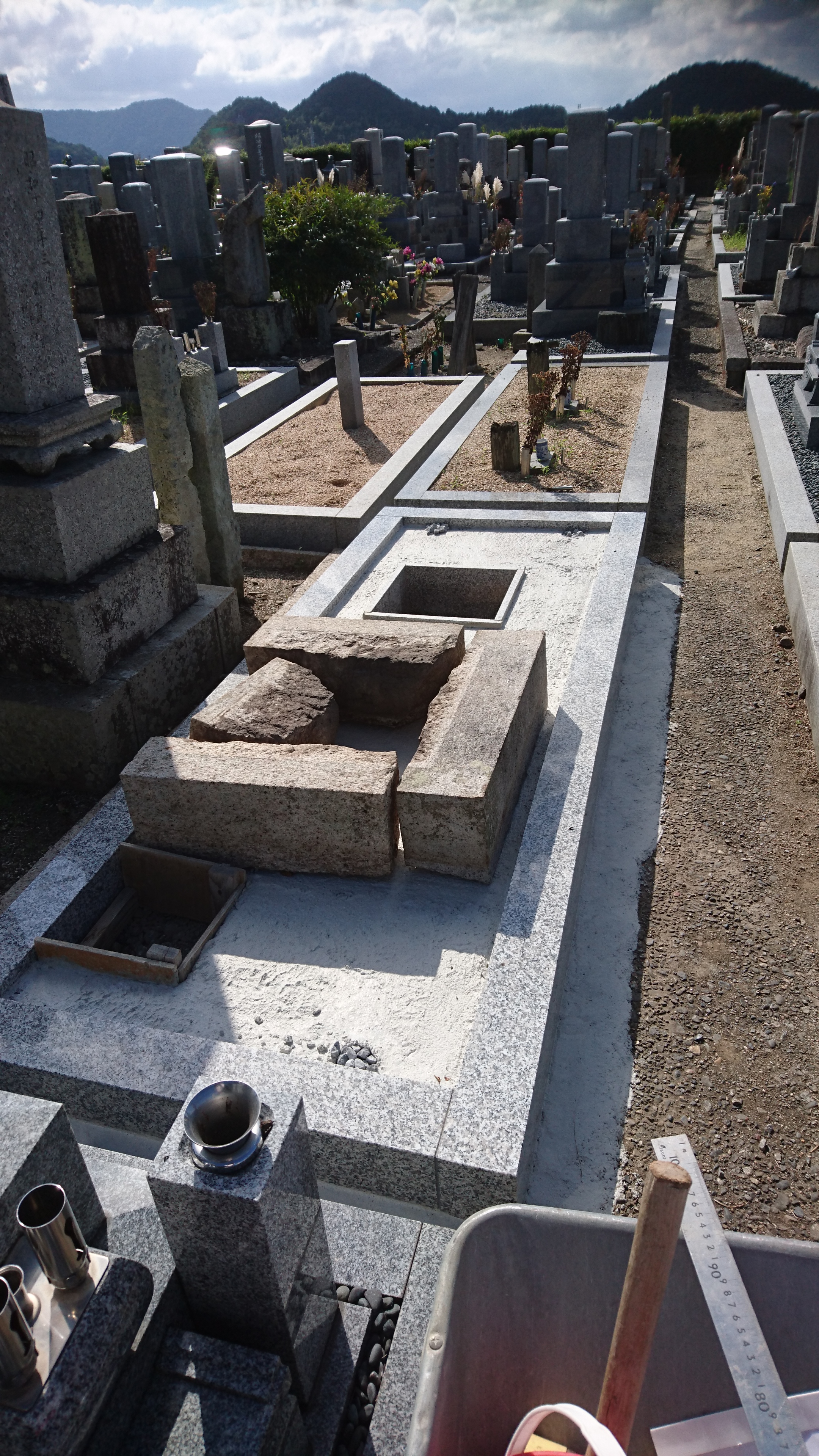 よく見ると奥の古い墓までも据え終わってます(笑)