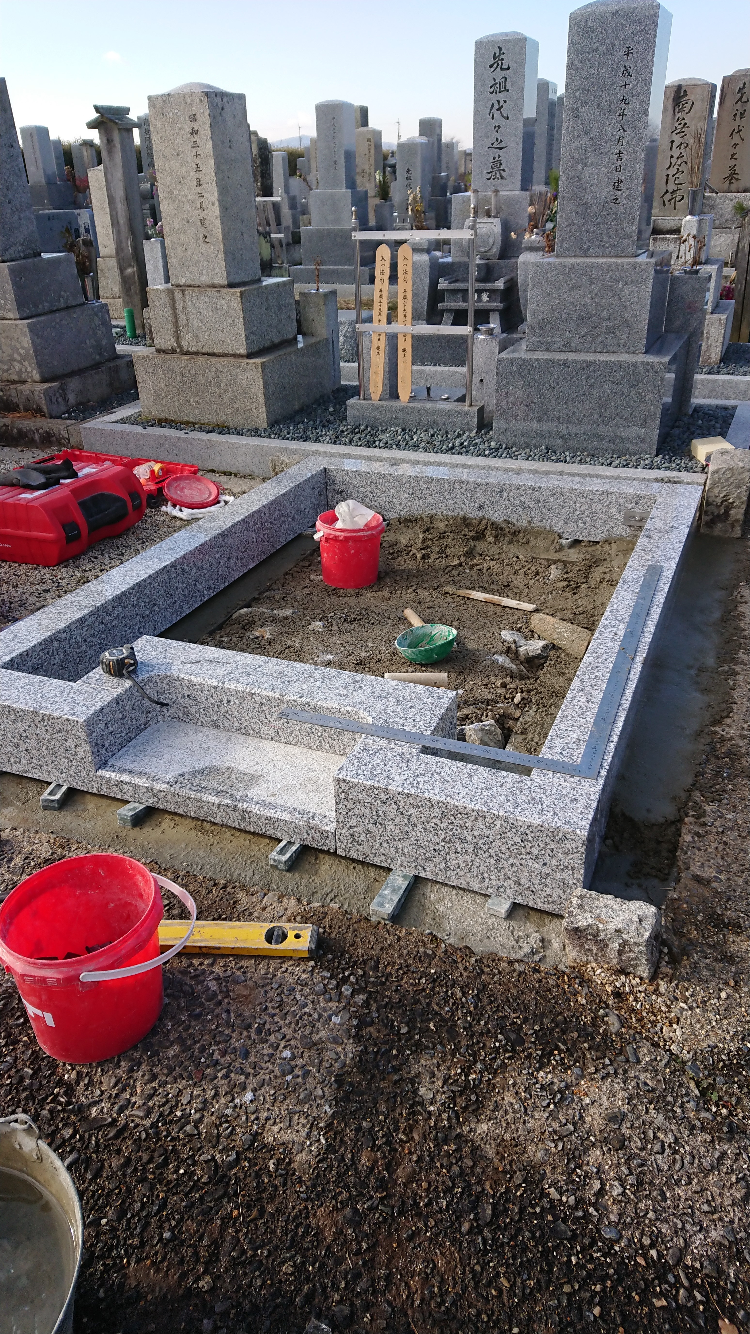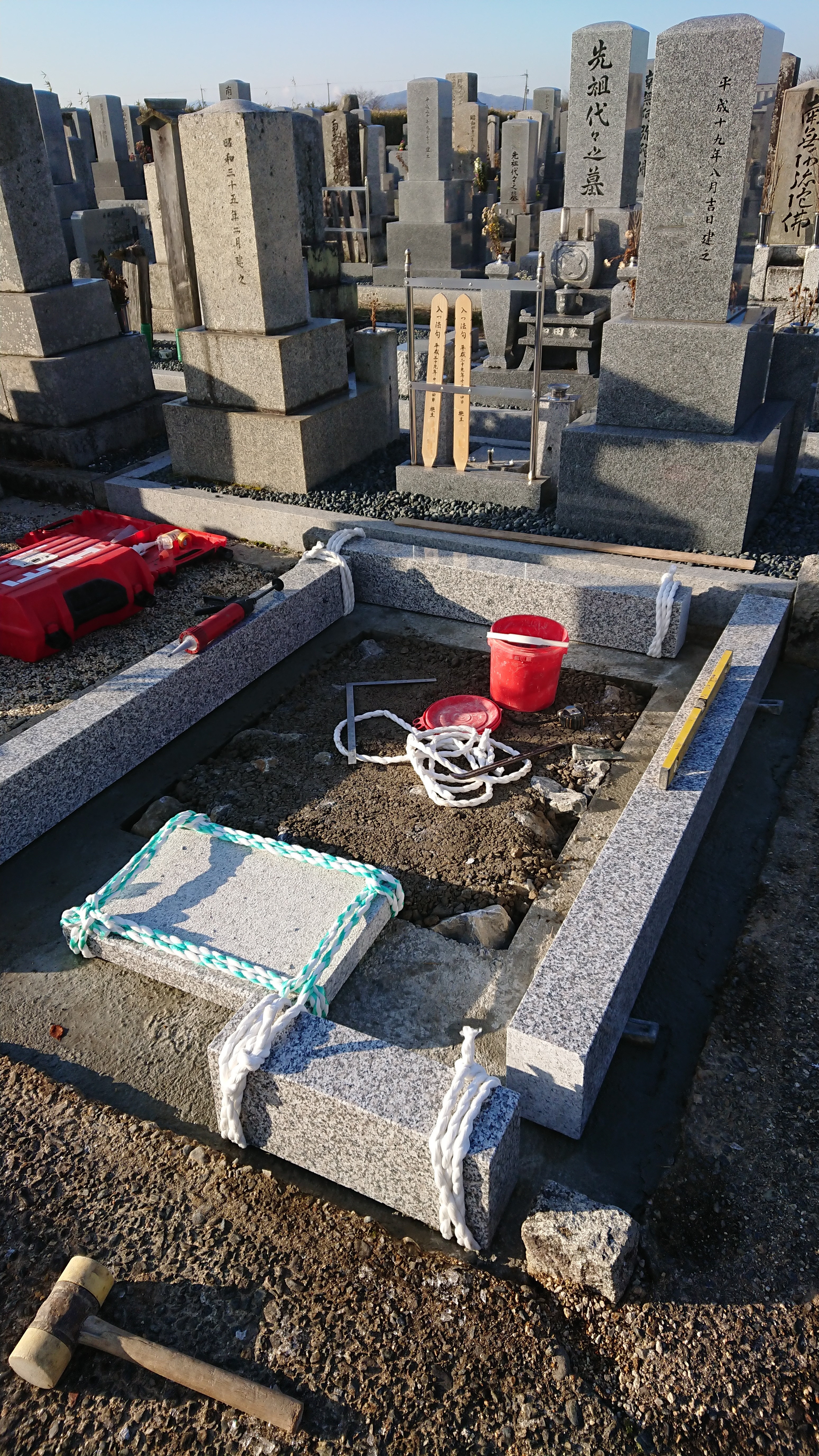 墓石の組み立てです。