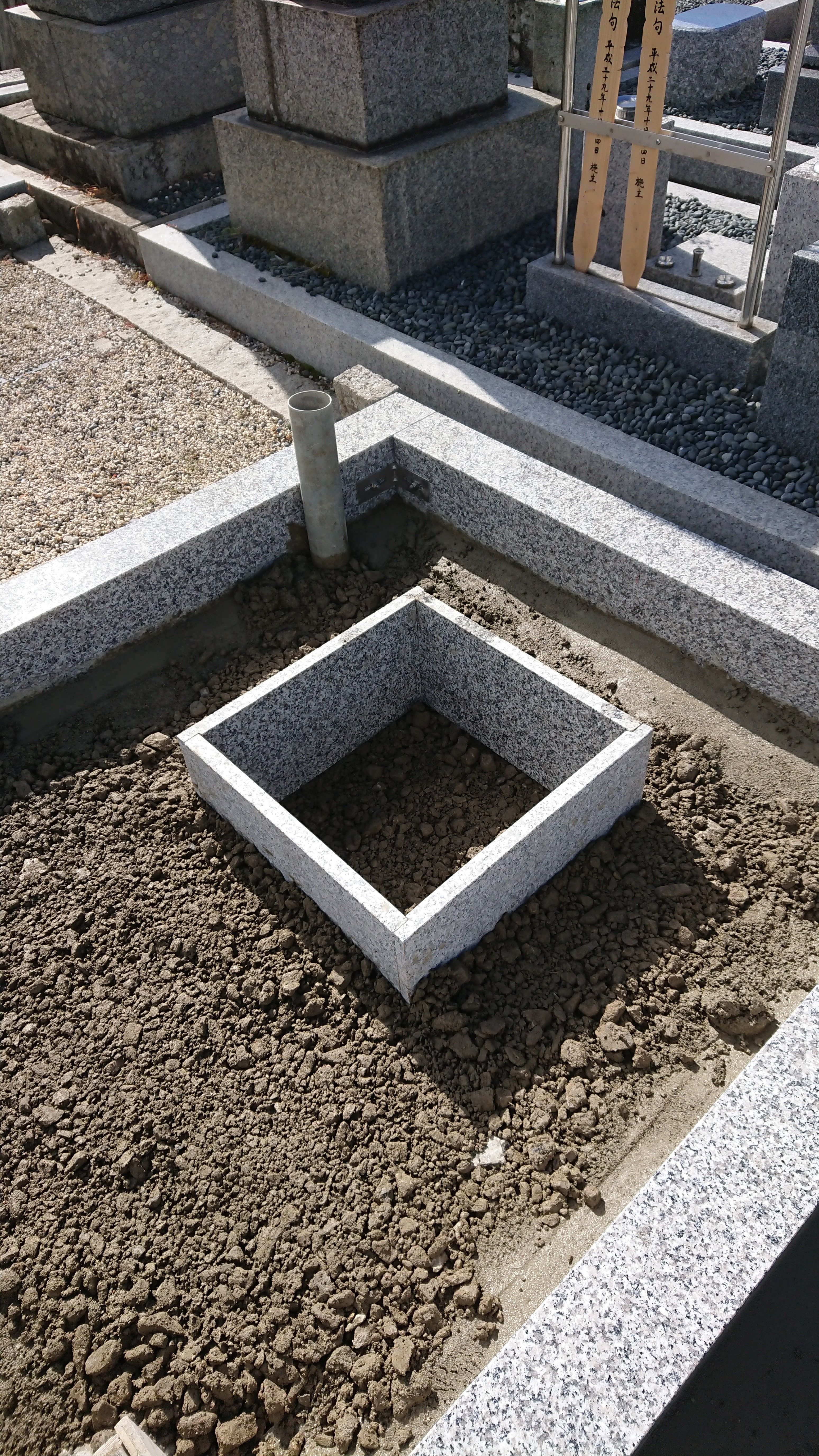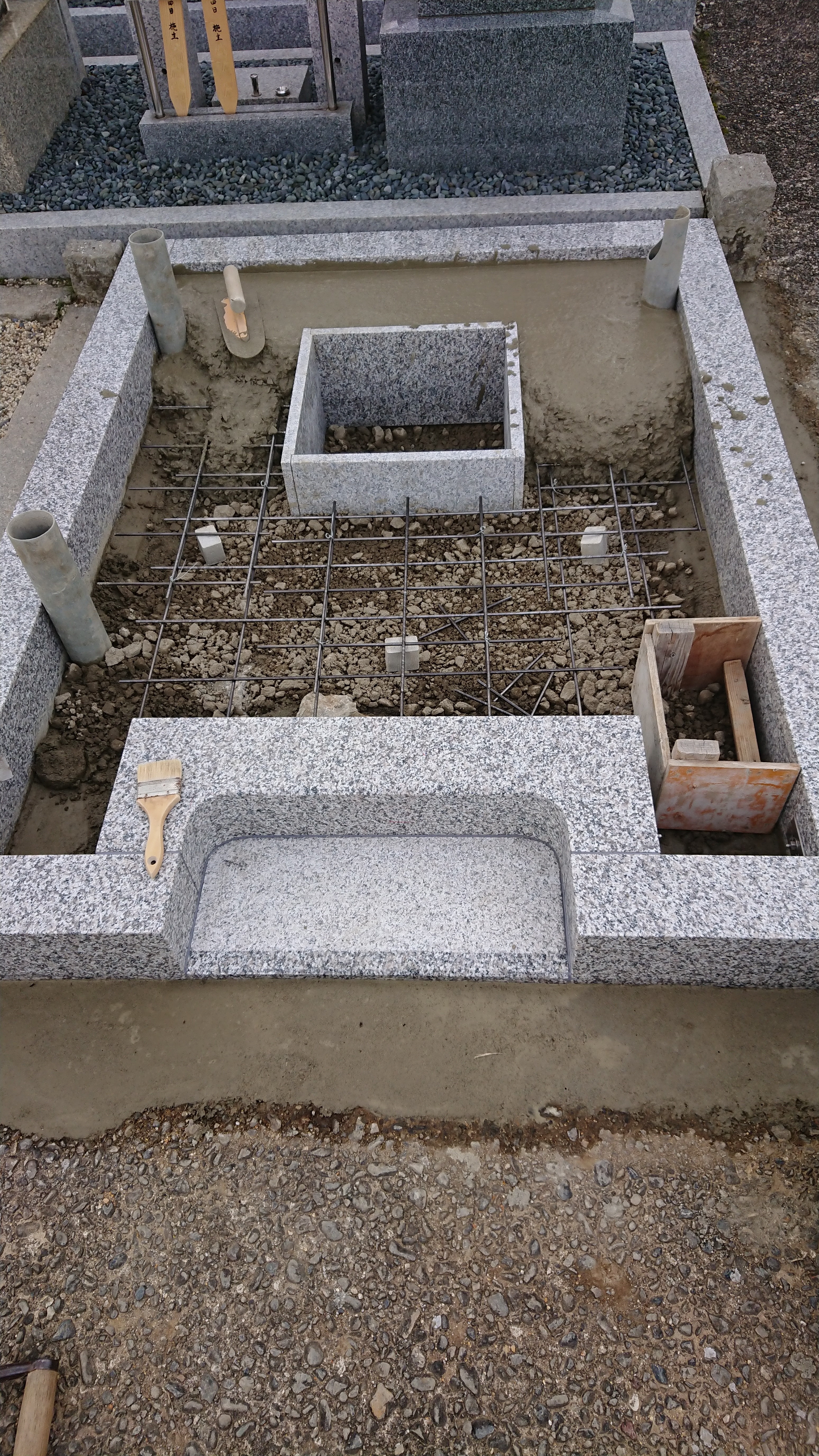 詰め終わったら納骨室を据え付けます。