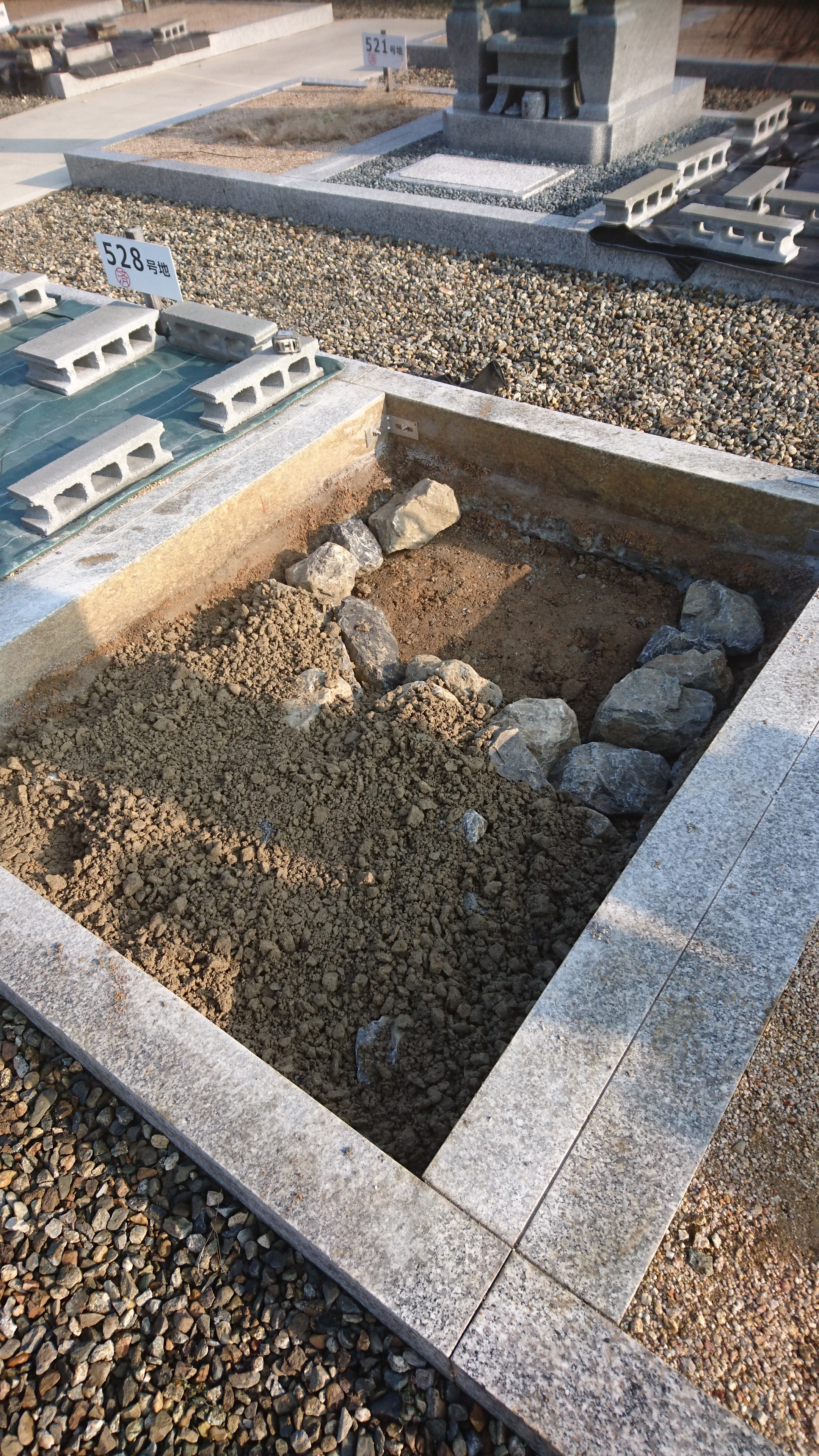 巻き石がしてあるので穴を掘っていきます。