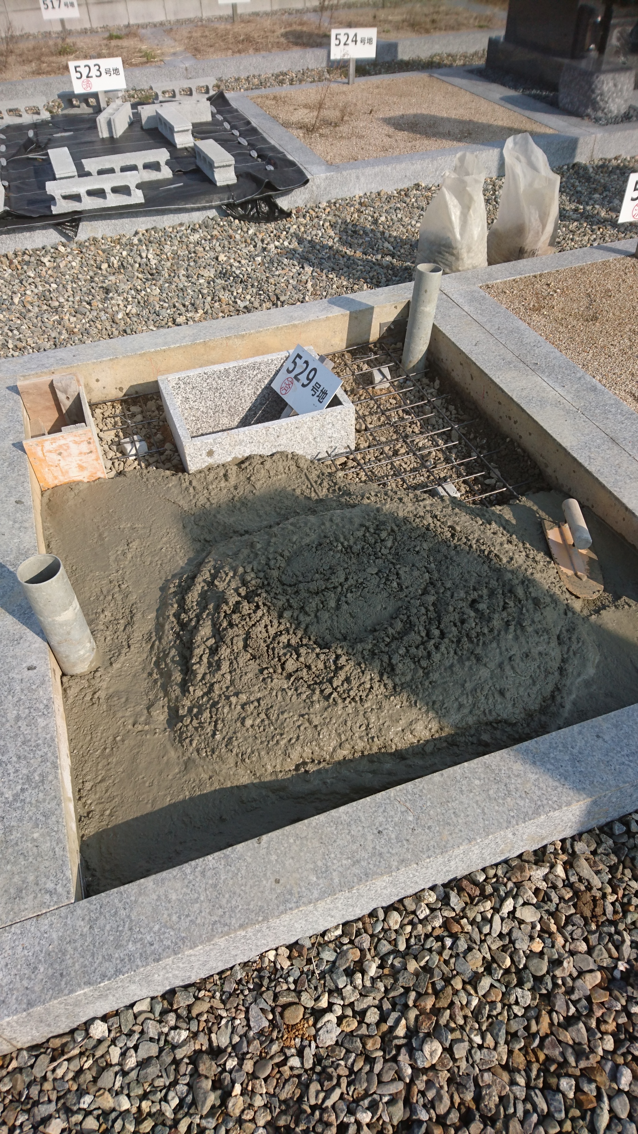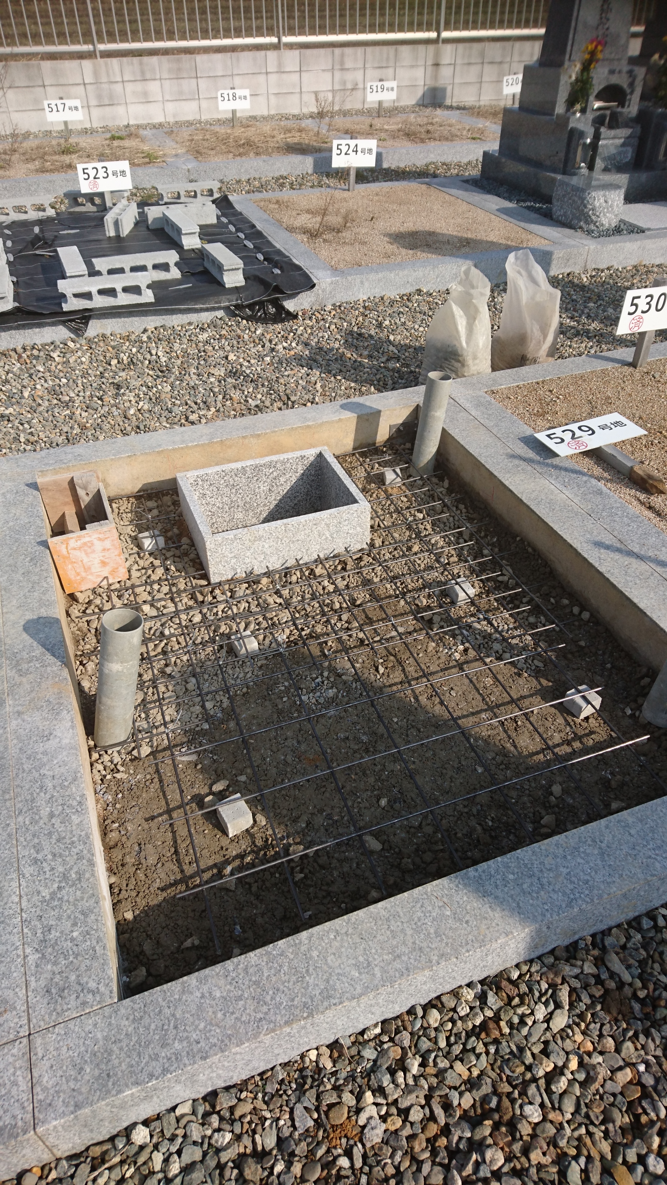 納骨室を据え付メッシュをひいてコンクリートを打つ準備をします。
