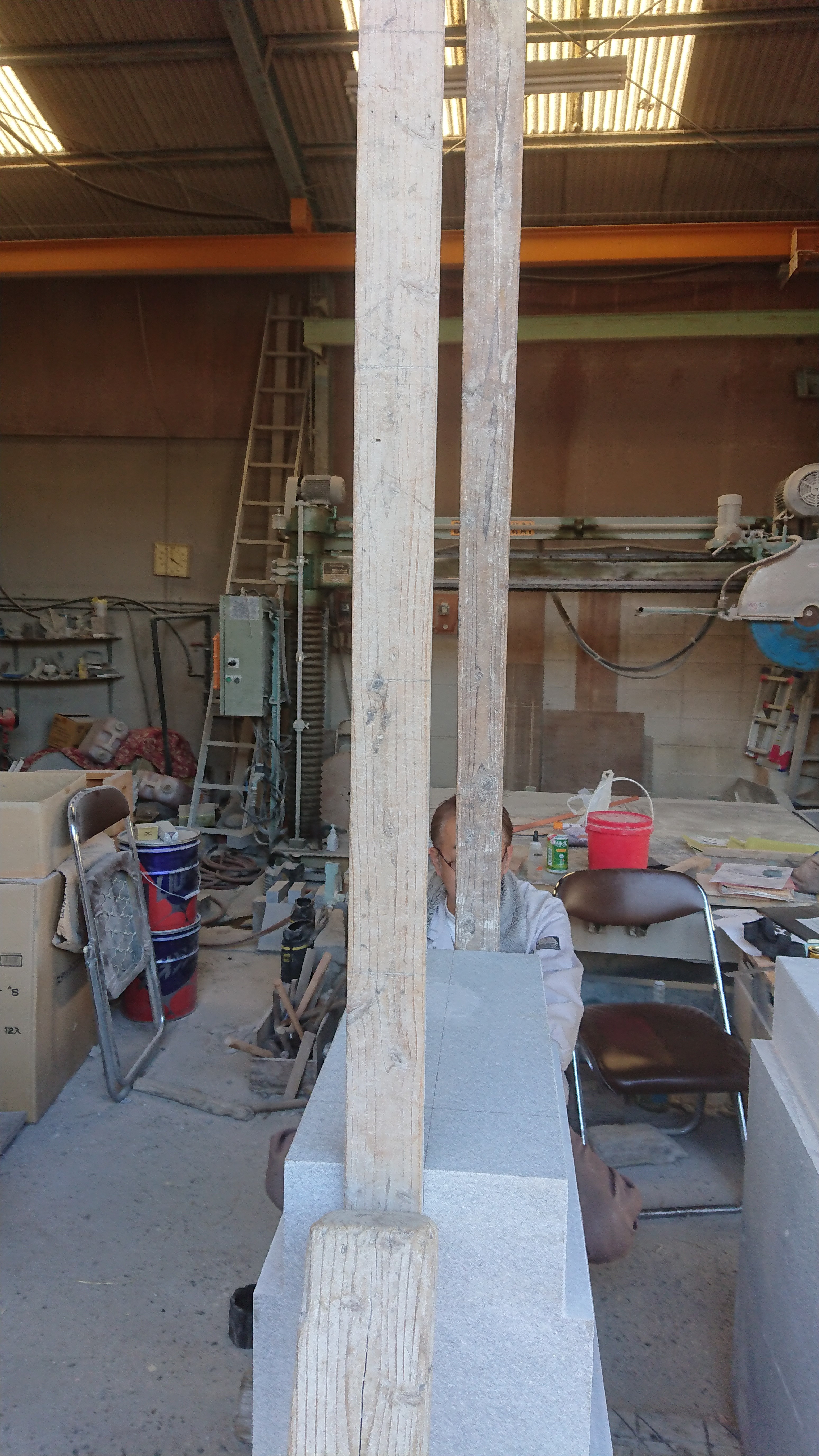 うちの工場では切れないので組合で仲良くさせてもらってる石屋さんの所で切らせてもらいました。