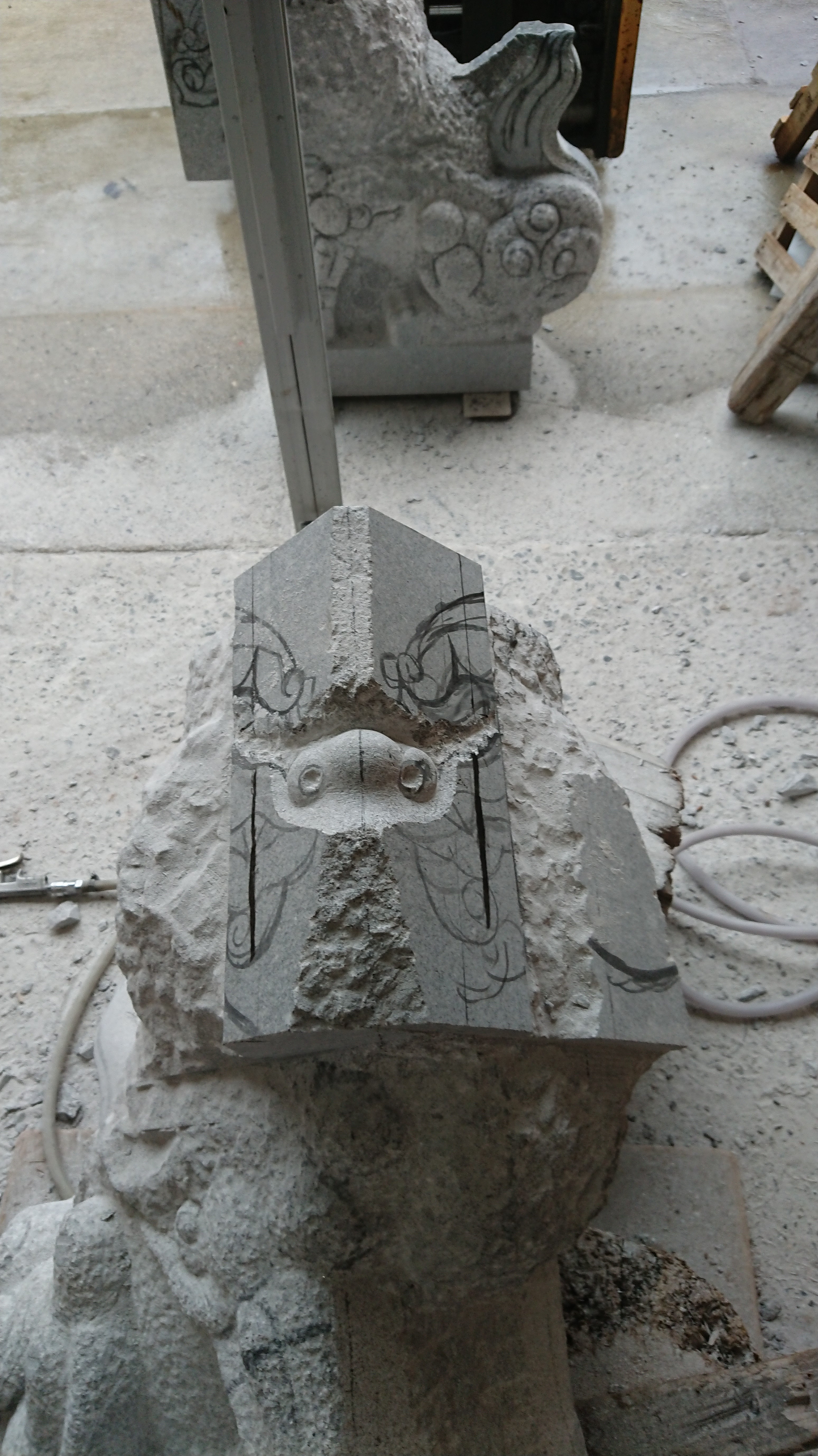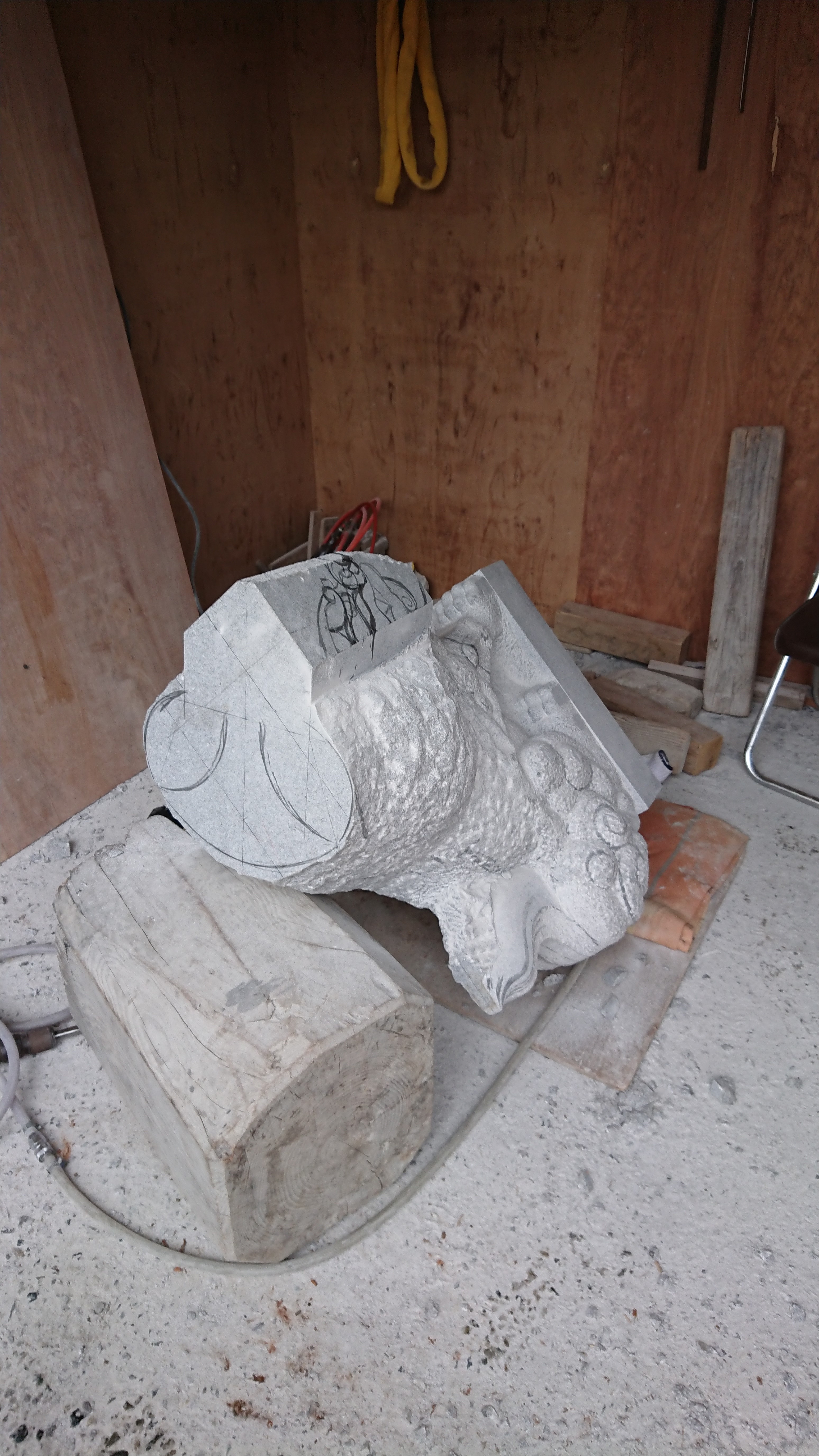 前回までで狛犬の下半分がムシリ上がった所で終わってました。