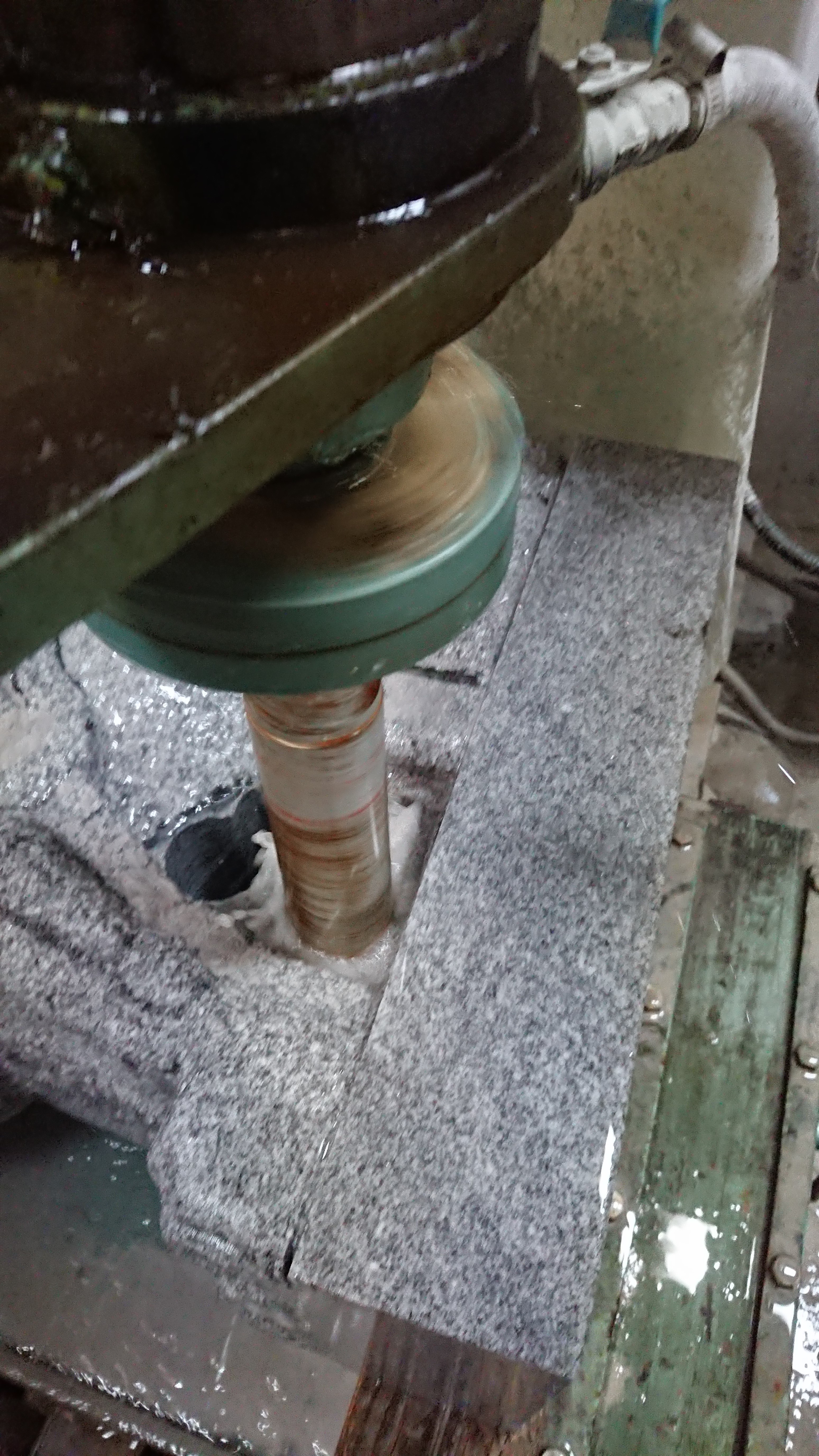 穴をあける作業が石屋として難しい作業の一つなんでボウリングでそこそこあけられるんは