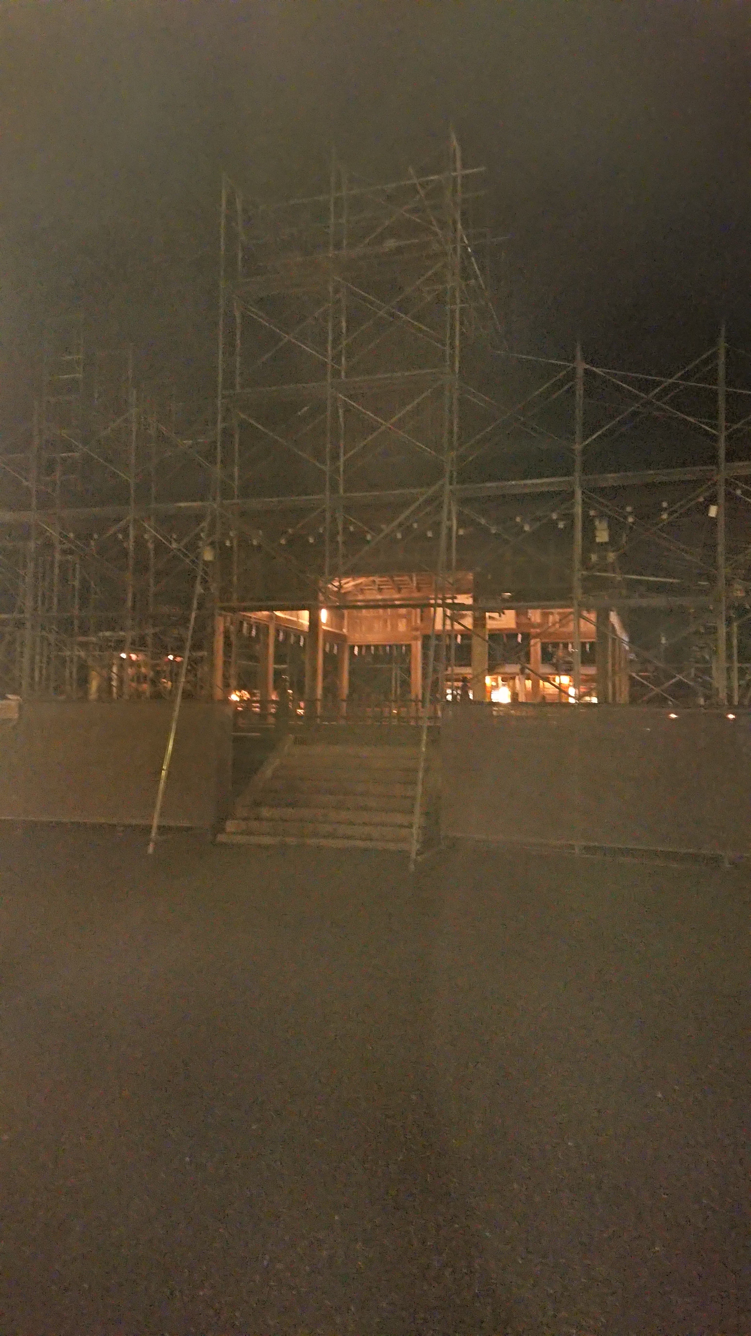 楼門をくぐるとただいま工事中の拝殿です。