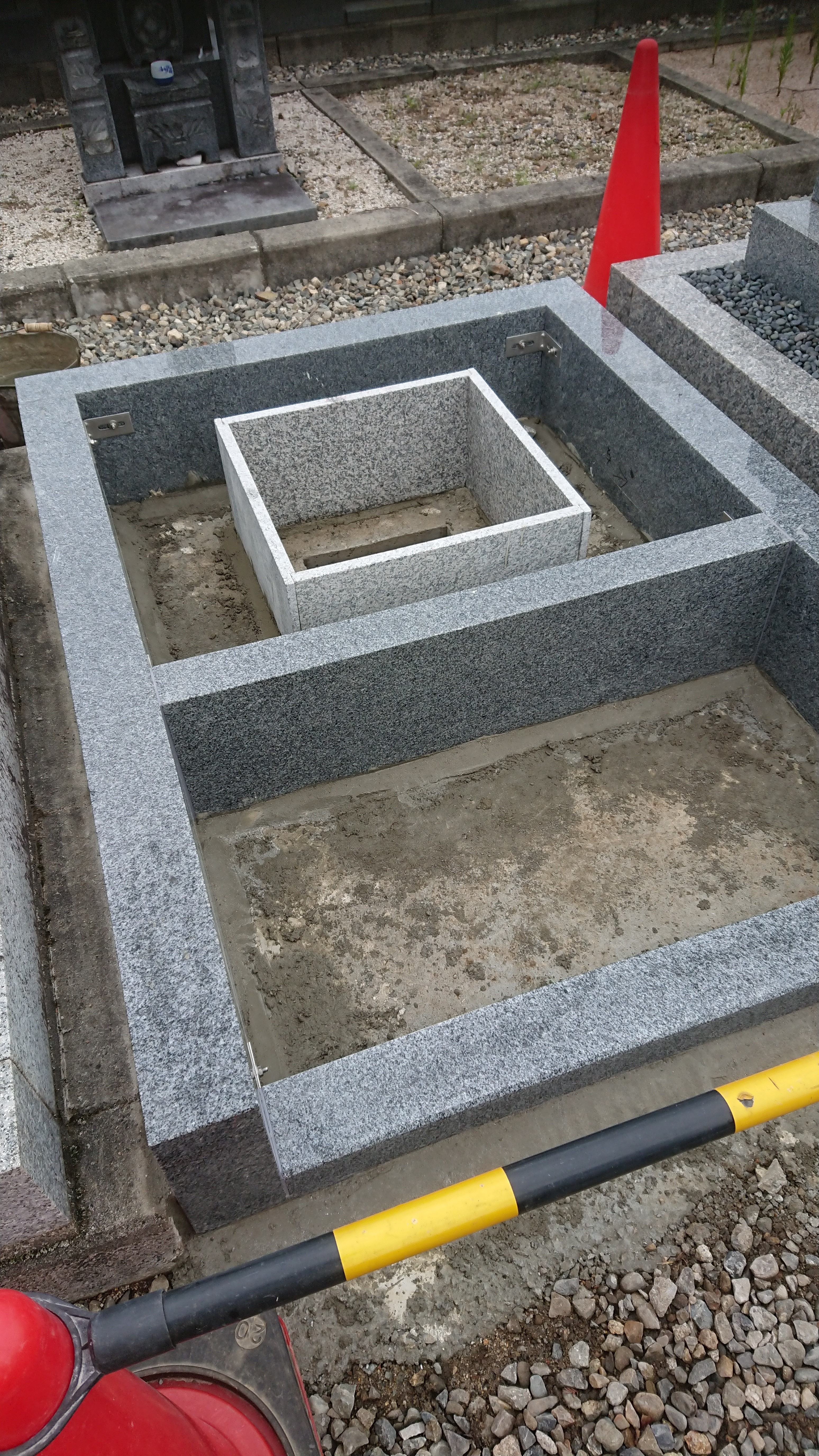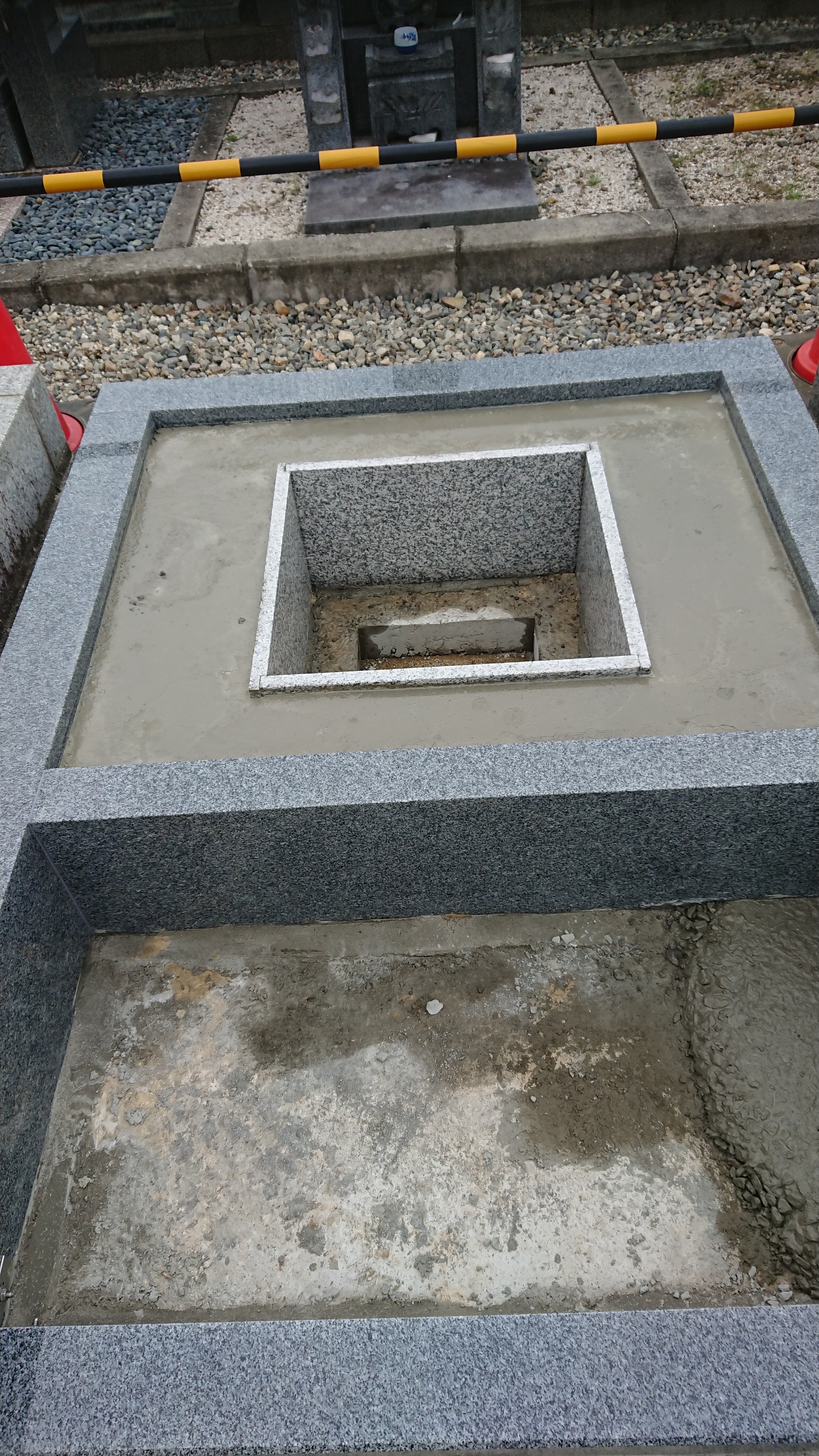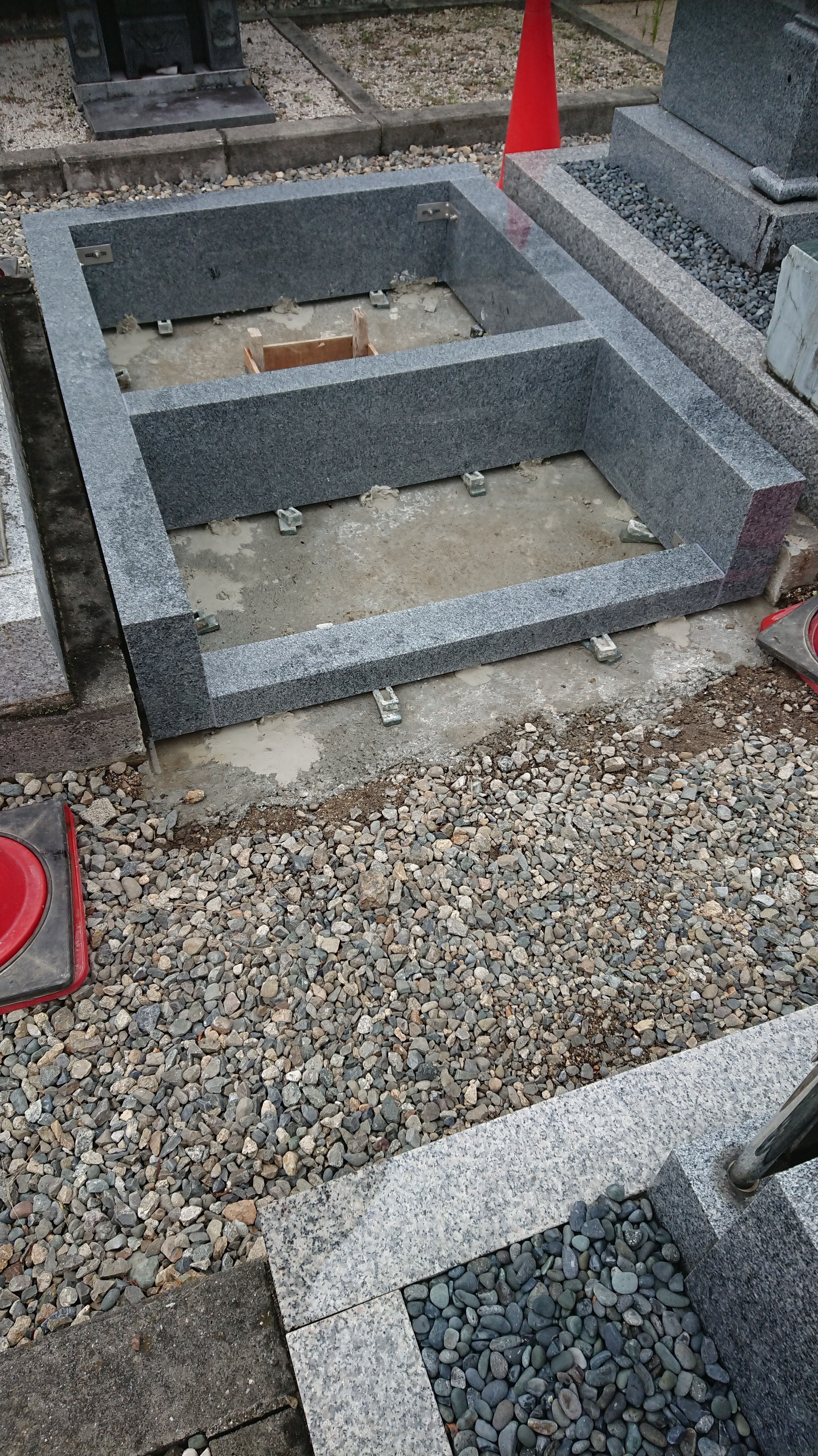 生コンが固まってからまずはお墓の四ツ石(下台)を据えていきます。
