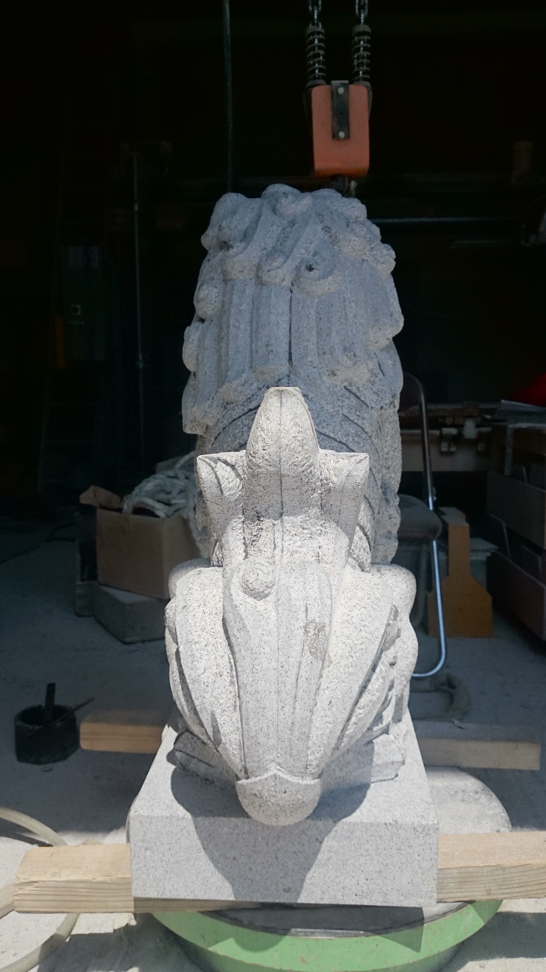 仕上げの前に吽型の形を阿型に合わせながら作っていきます。