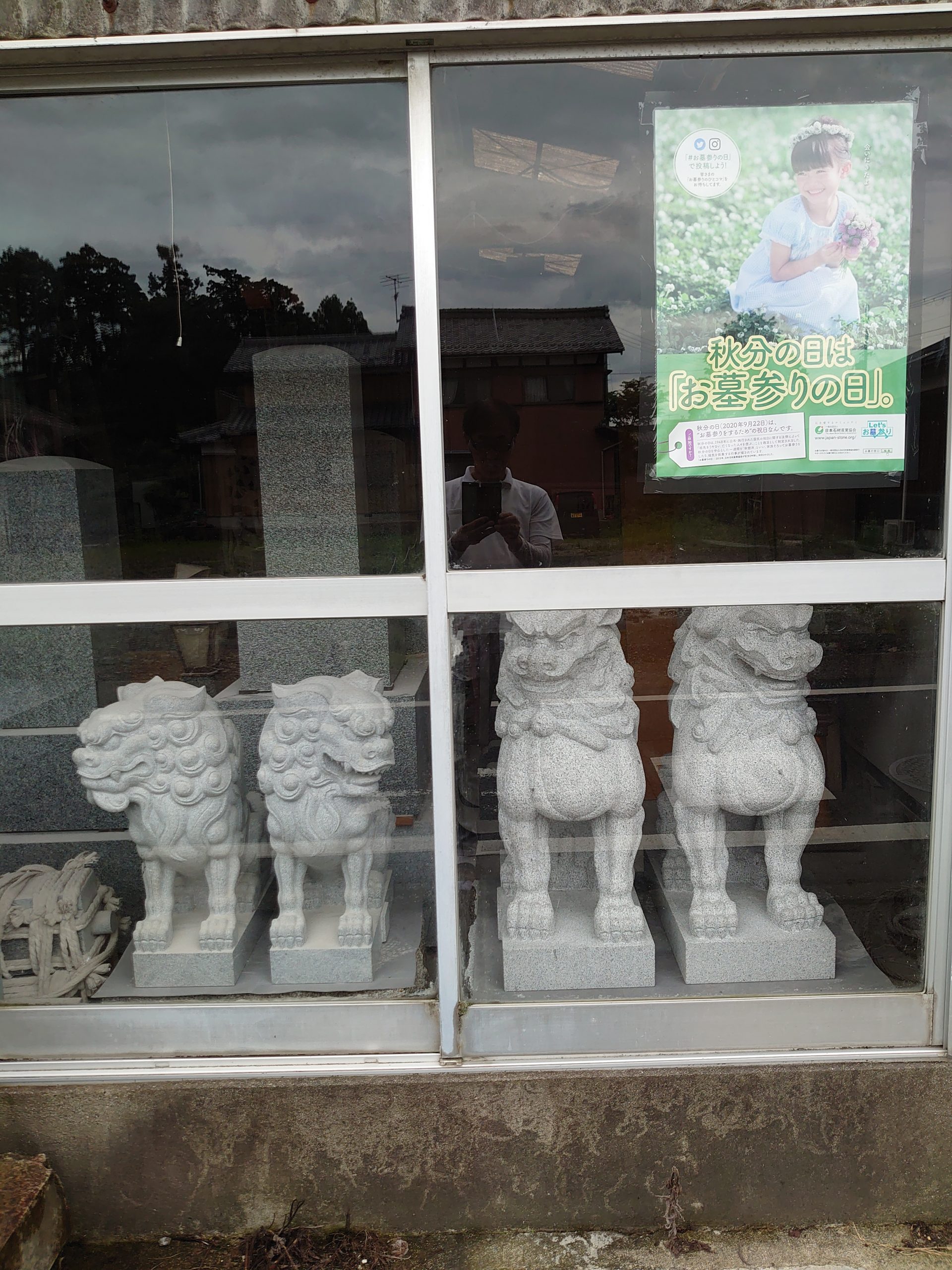 2尺の狛犬と一緒に道を通っている人や車を見ています(笑)