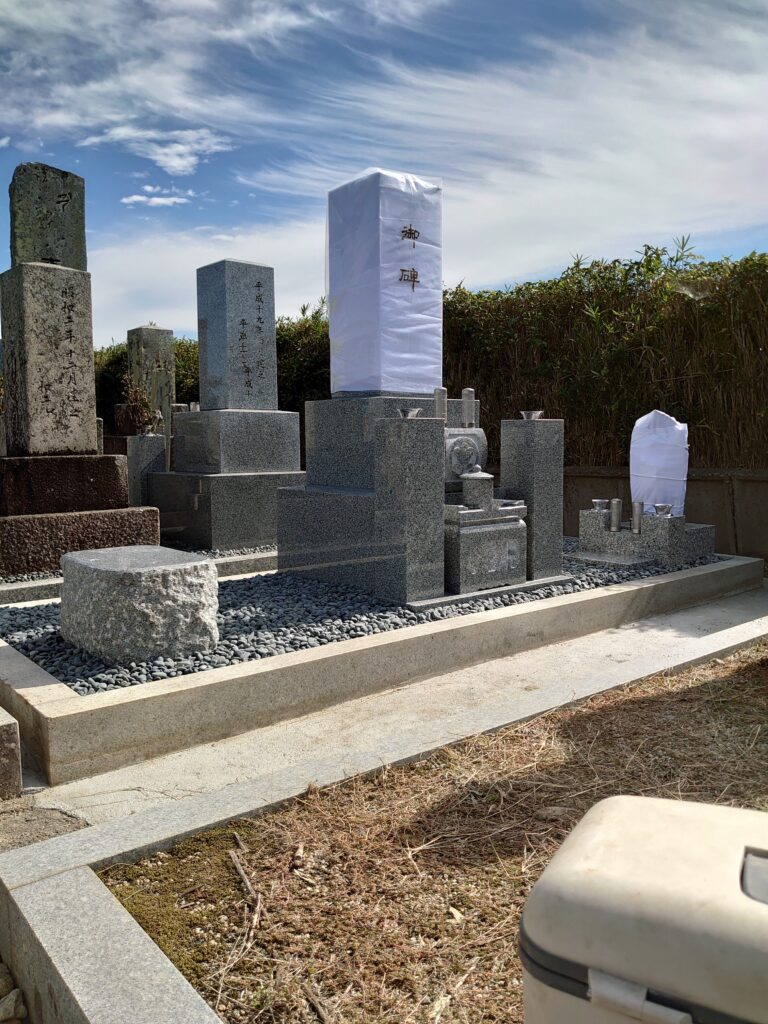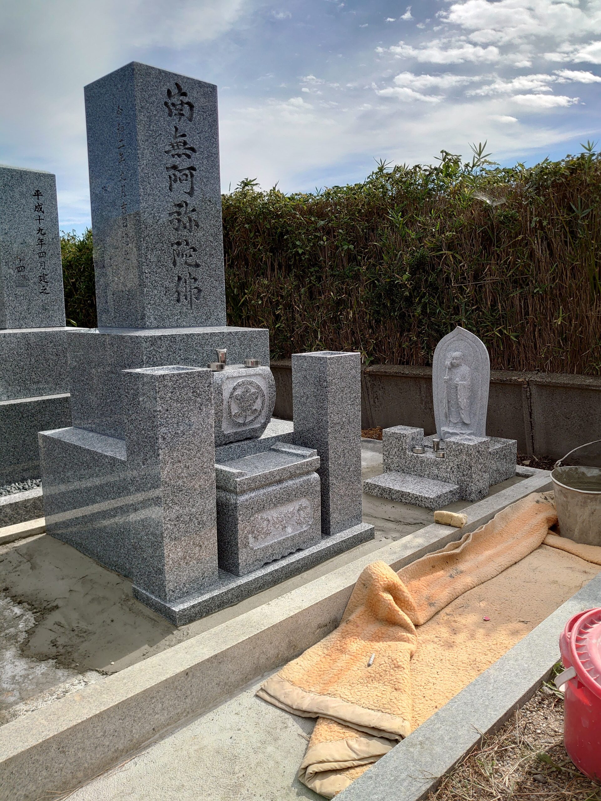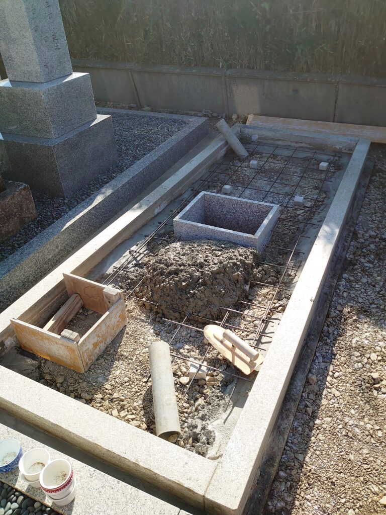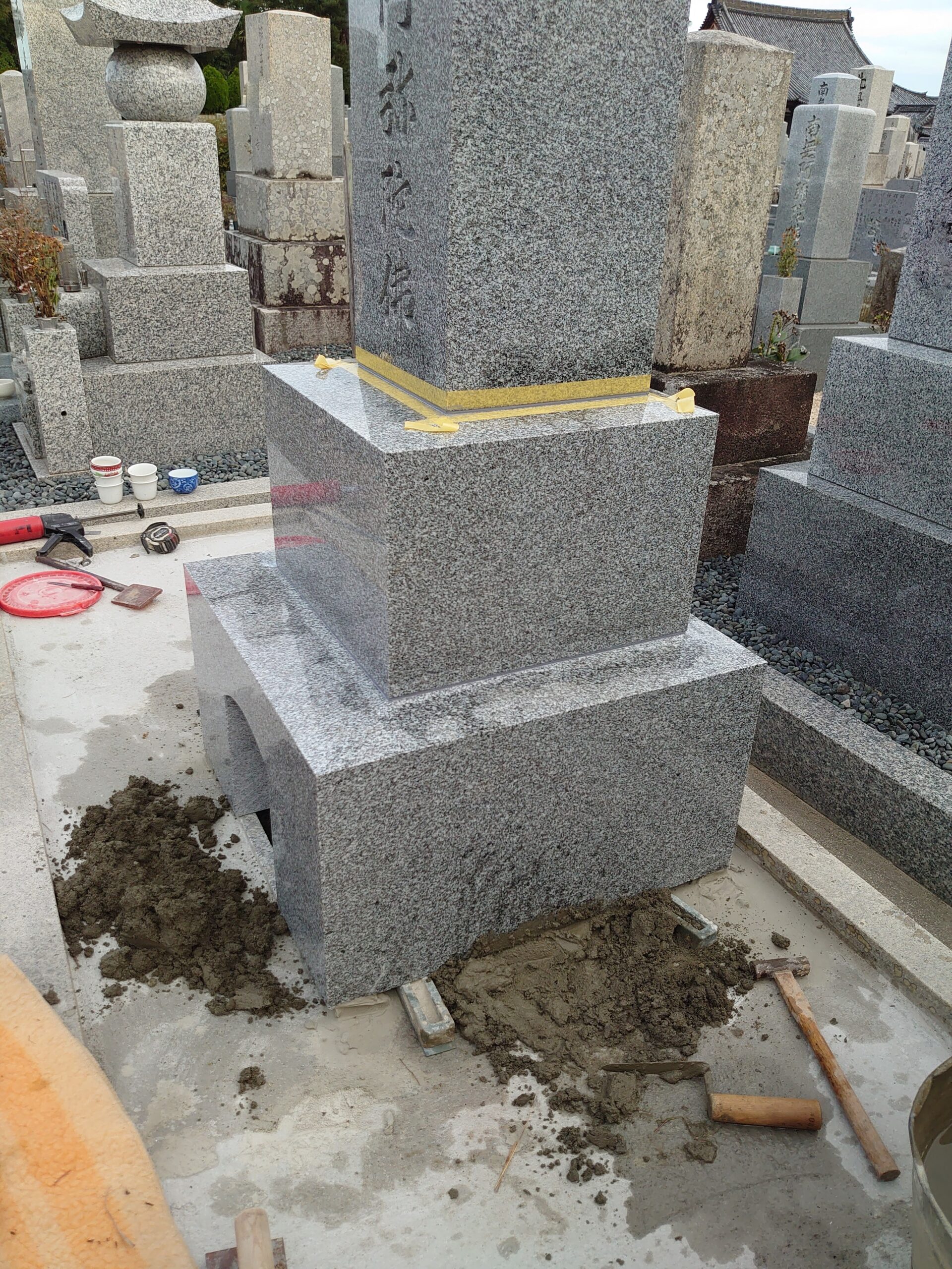 モルタルを詰めて納骨室の石を据え付け砕石を入れます。