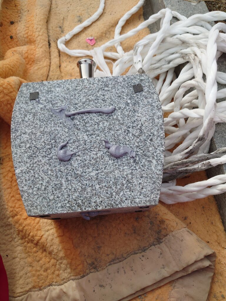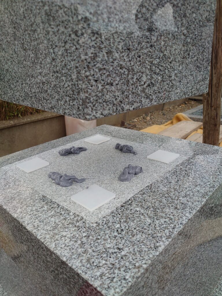 一番下の台も巻石同様クサビで水平を出し止水セメントで止めてモルタルを詰めていきます。