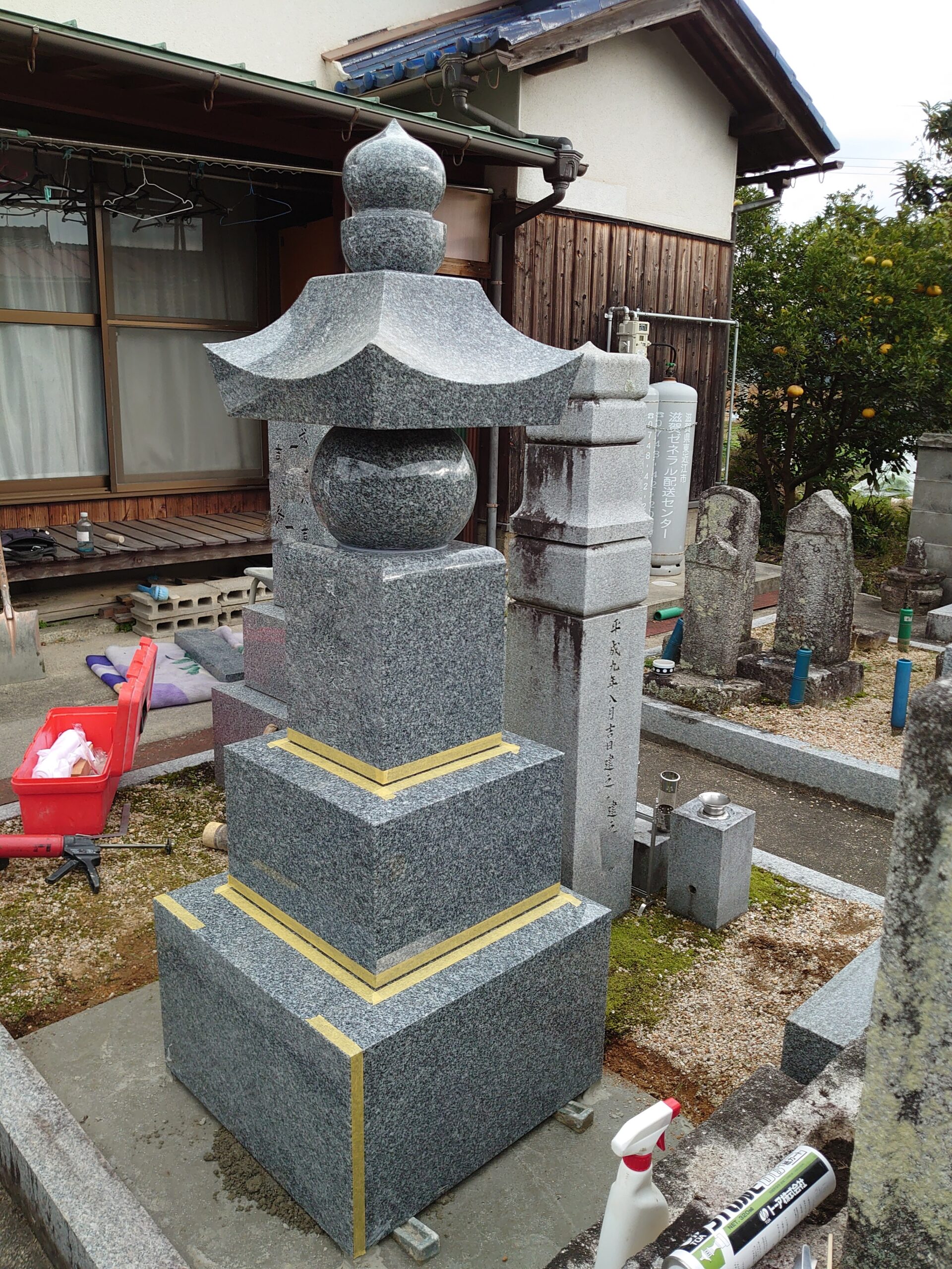 コーキング目地をして香炉や花立などをボンドで取り付けました。