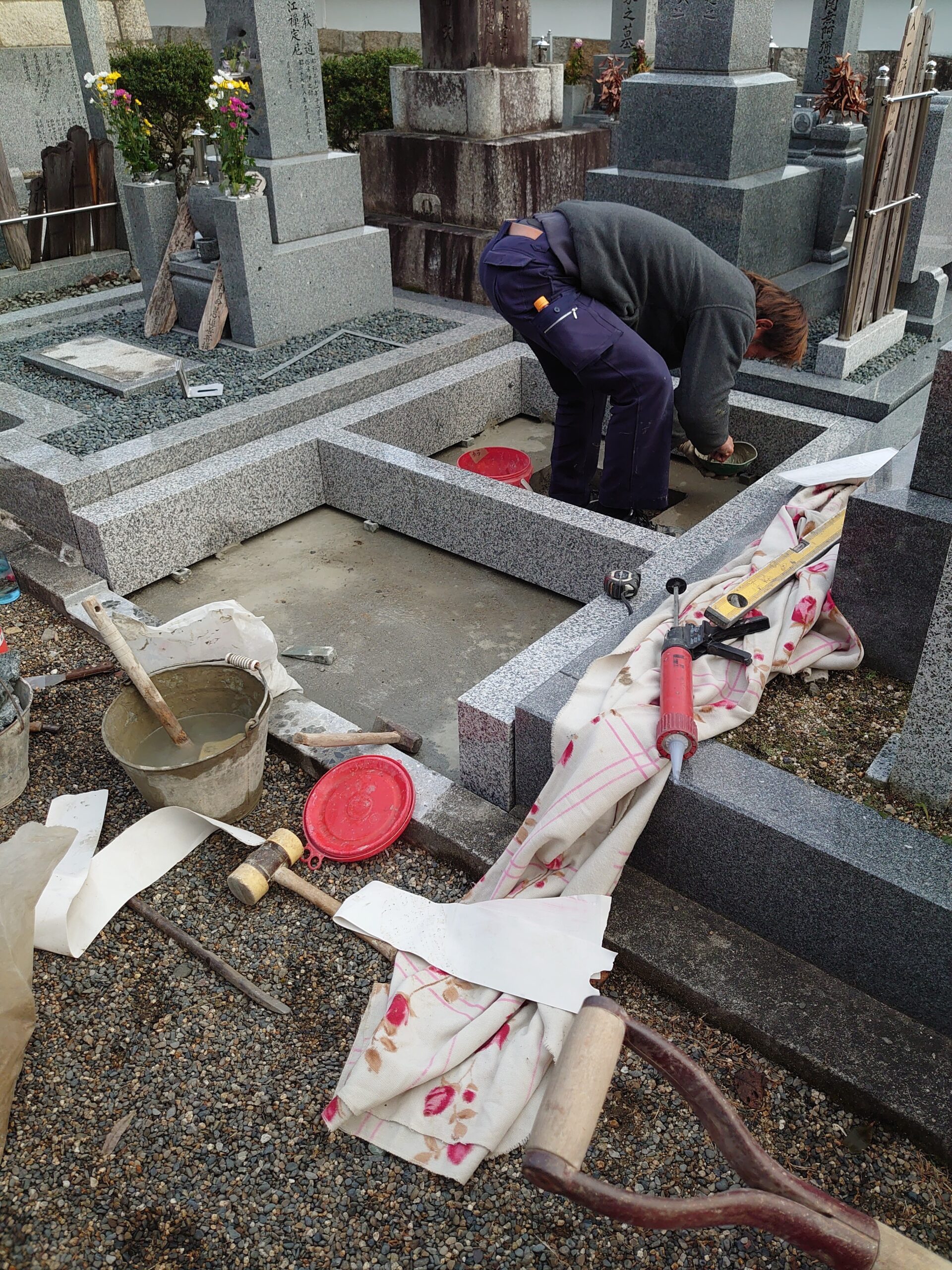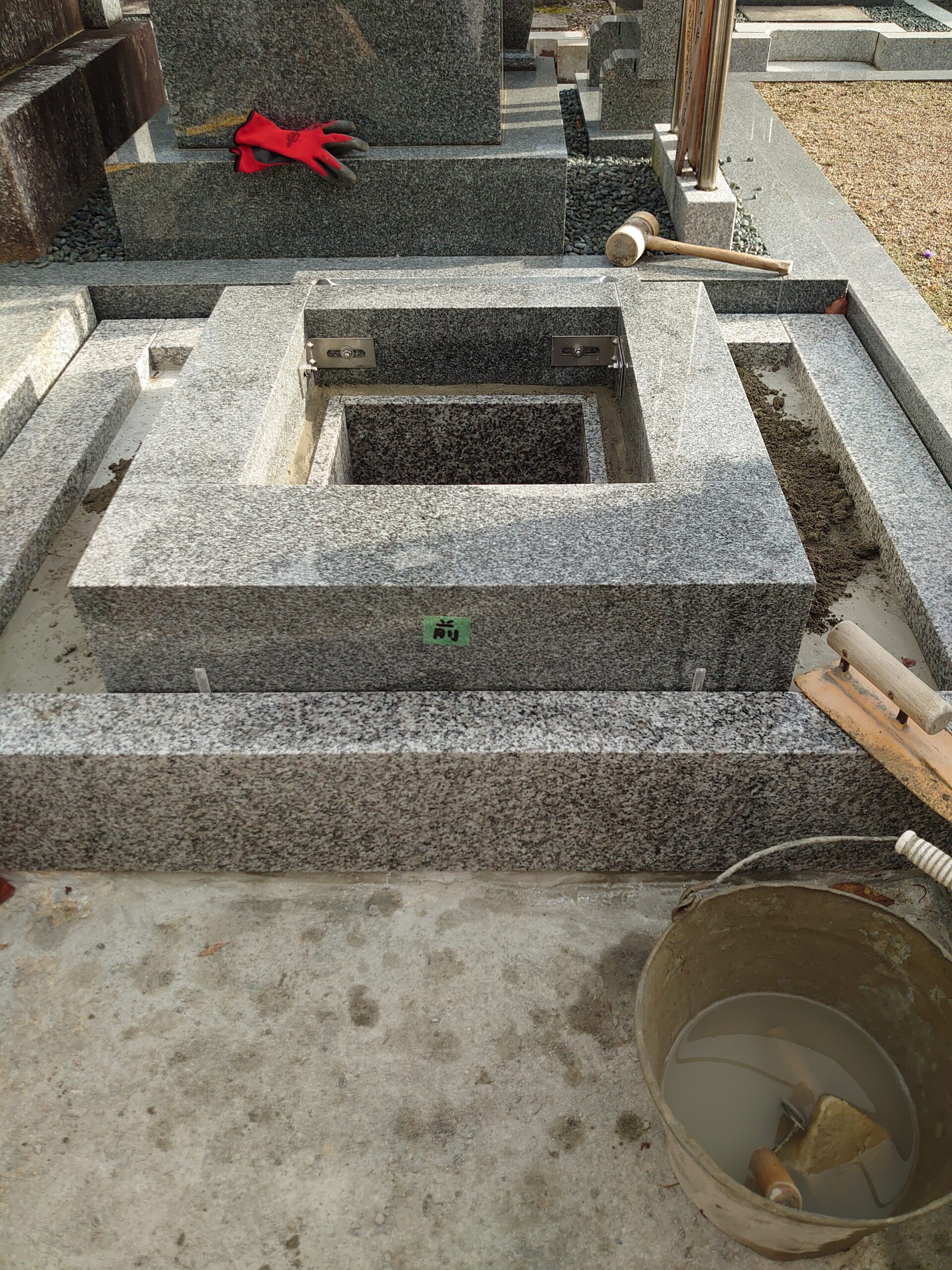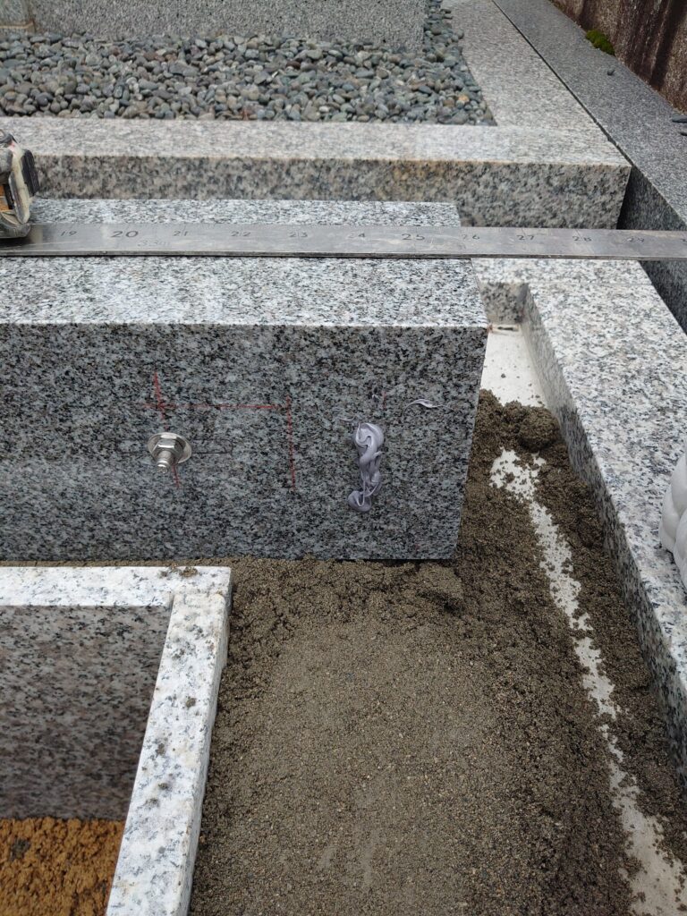 今日の墓石工事は。
