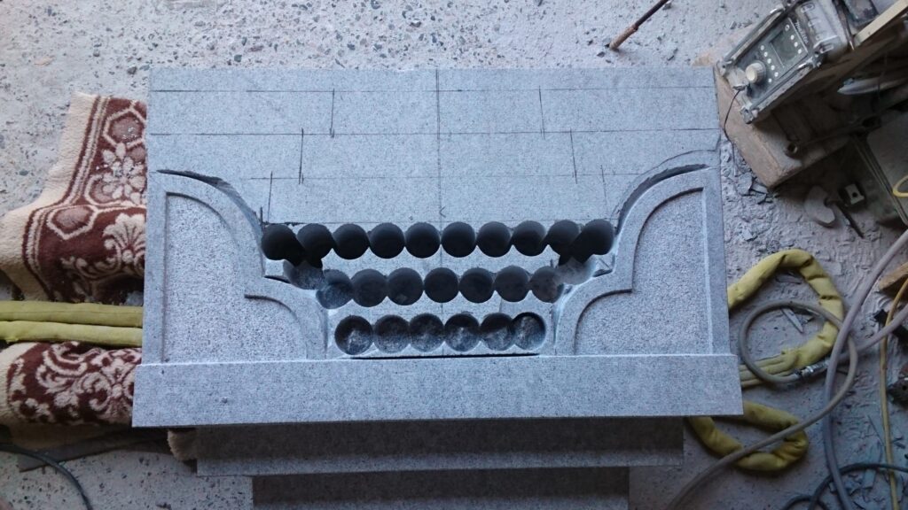 周りの縁取りをしている所は小たたき仕上げで、一段沈んでいる部分はビシャン仕上げです。