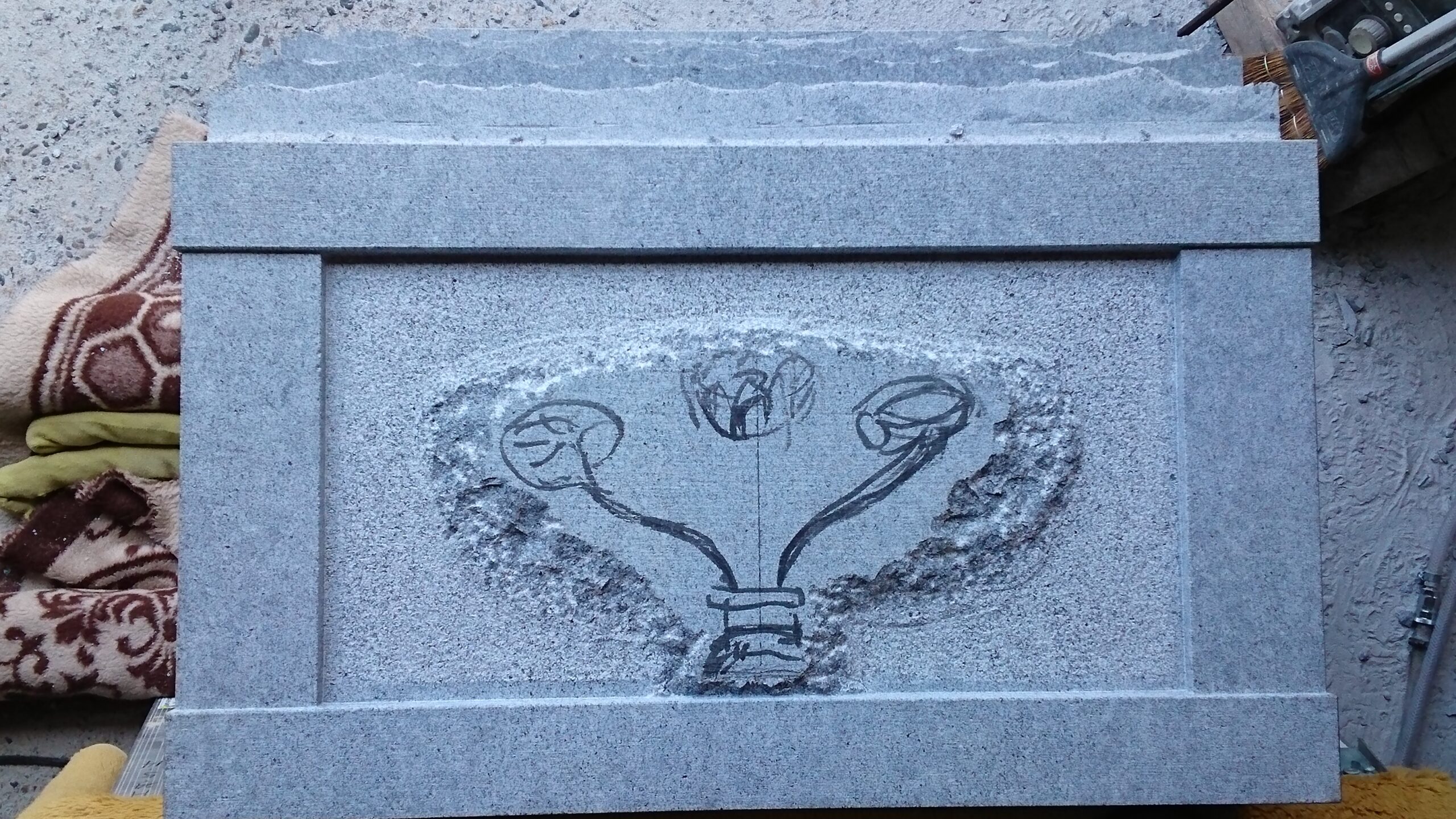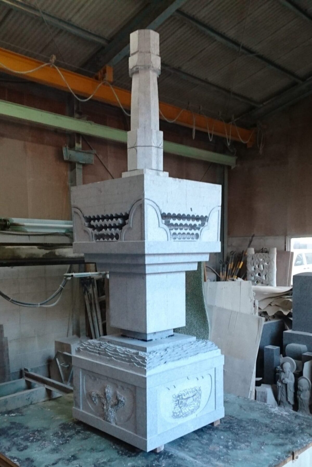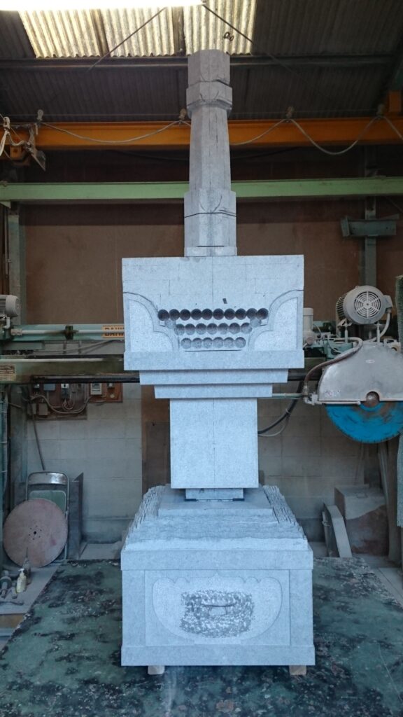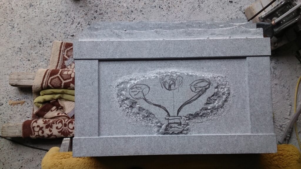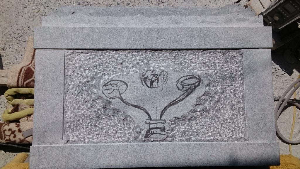 宝篋印塔( 供養塔 )の基礎の四方に格狭間を加工していきます。