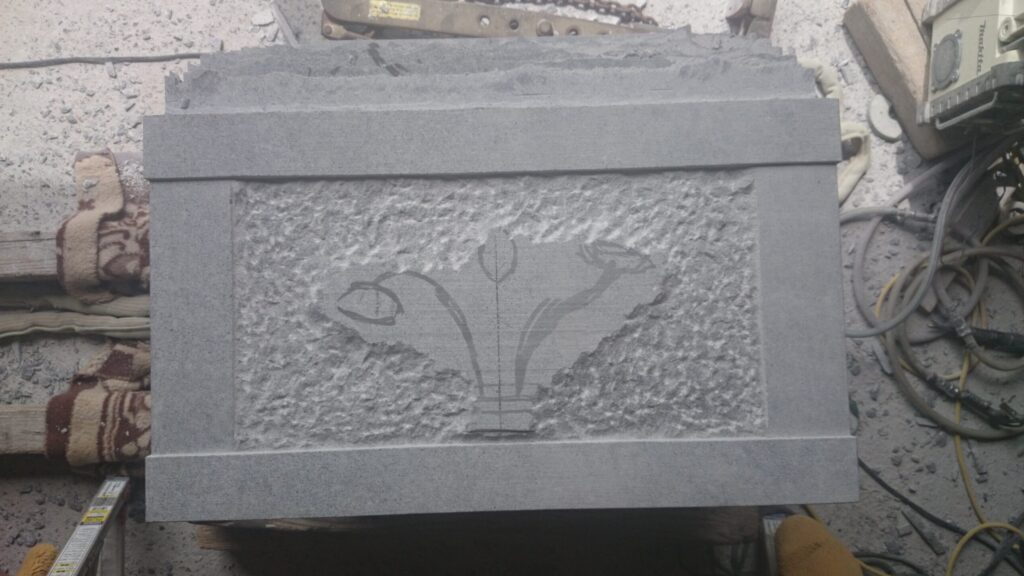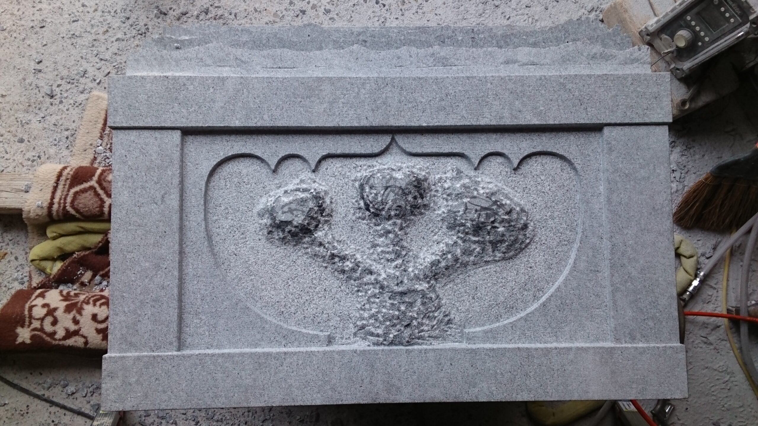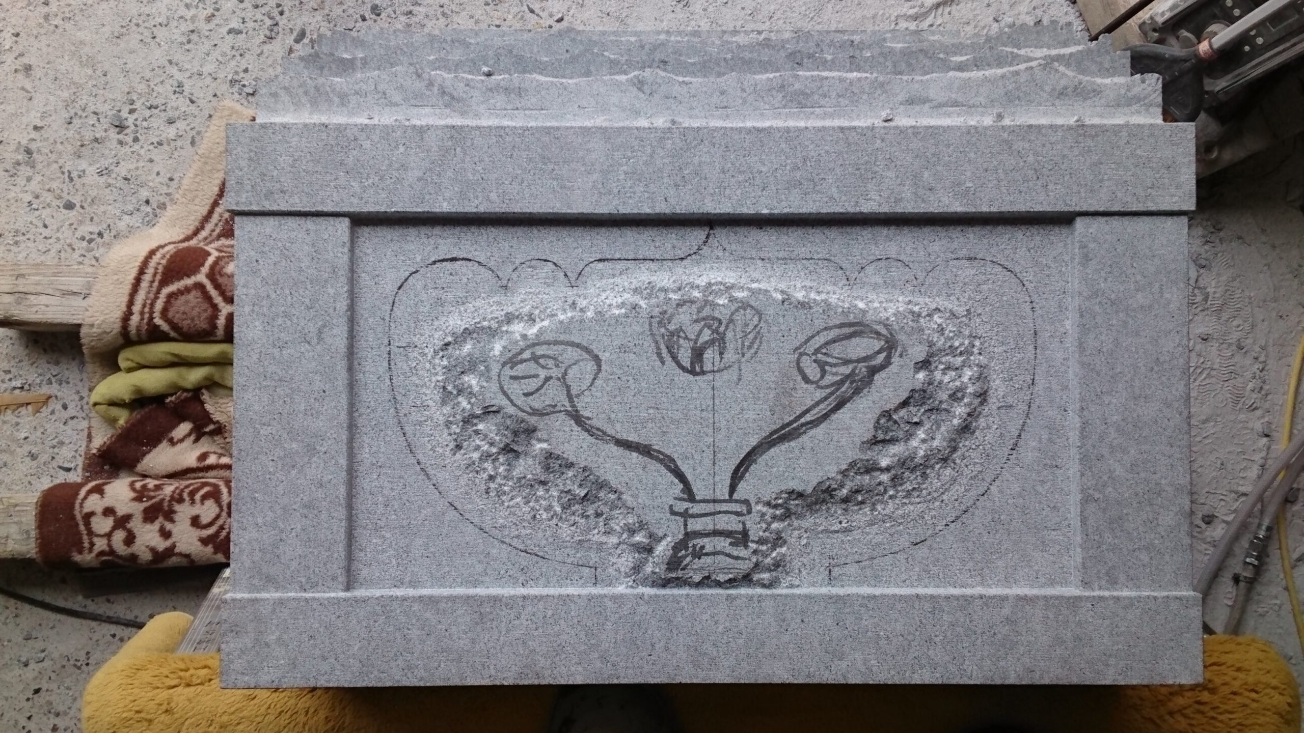 宝篋印塔( 供養塔 )の基礎の四方に格狭間を加工していきます。