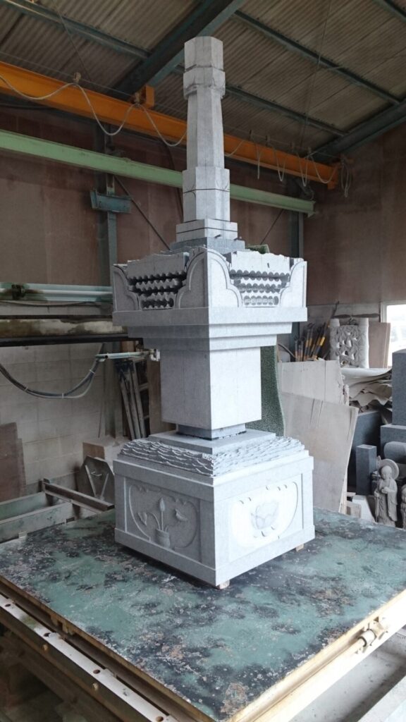 宝篋印塔(供養塔)、最後の工場での組み立て!