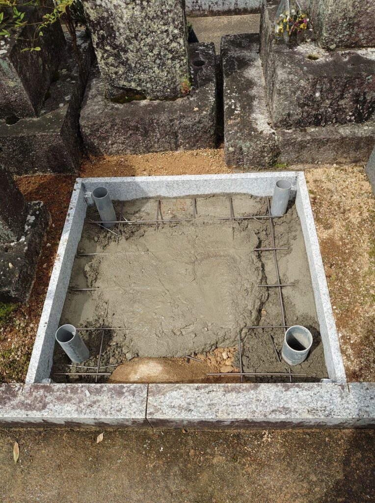 以前にあったお墓をどけて穴を掘っていきます。