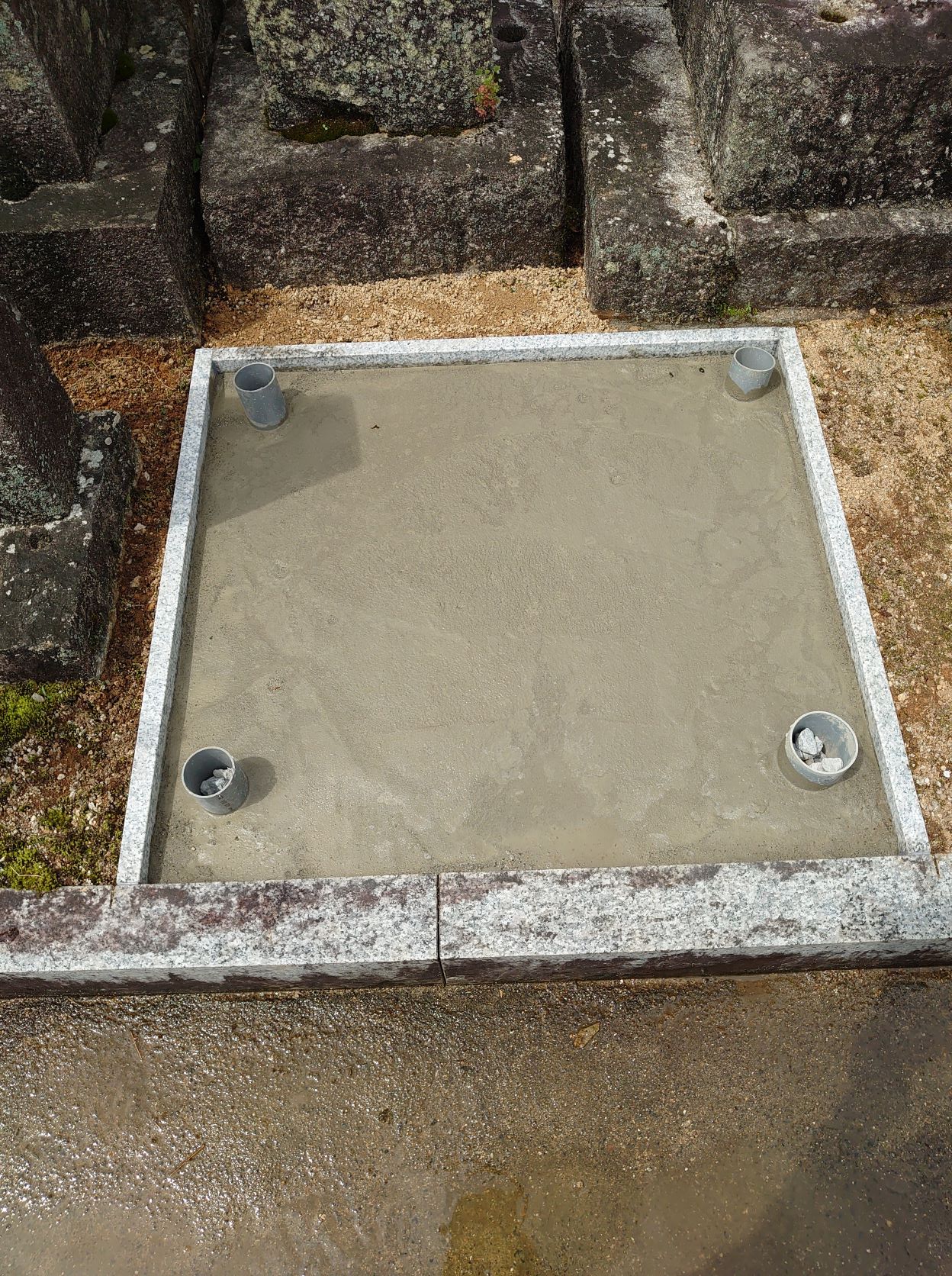 花立の台と供物台を据えます。