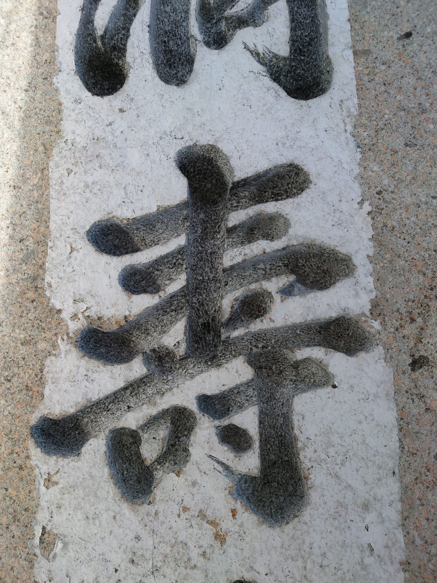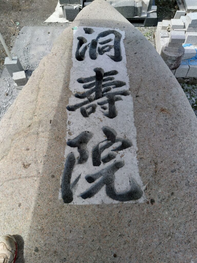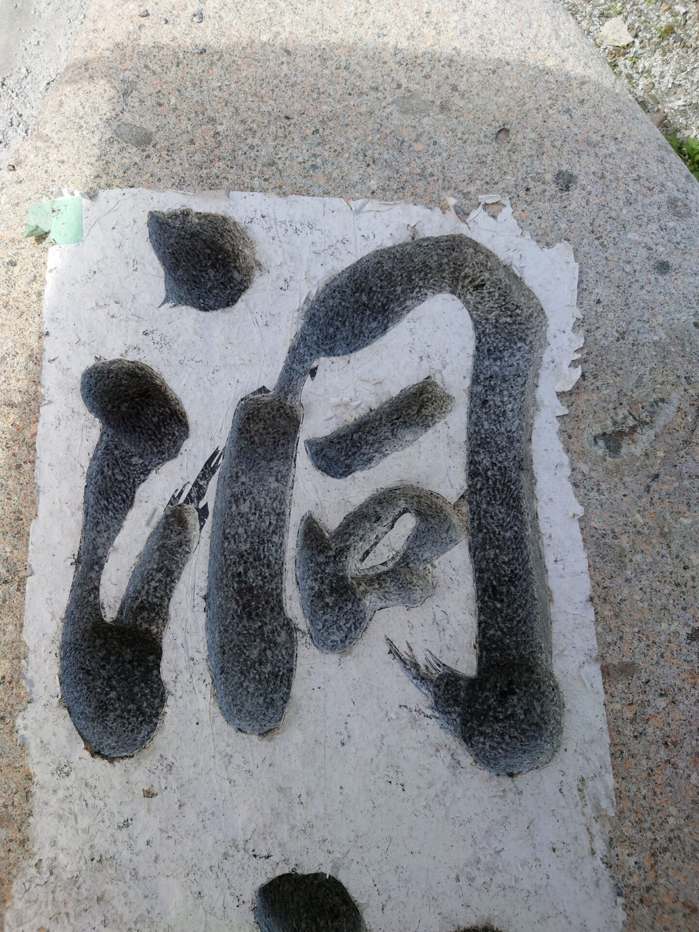 現代風手彫りとは・・・ 本当の手彫りは字彫りノミやコベラと言う道具をセットウ(かなずち)で叩いて文字を掘っていく技法です。 なんちゃっては電動工具(サンダーの薄刃)やエアーハンマー、ドリルなどの近代工具を使い姑息にも手彫りの様に仕上げていく技法です(笑)