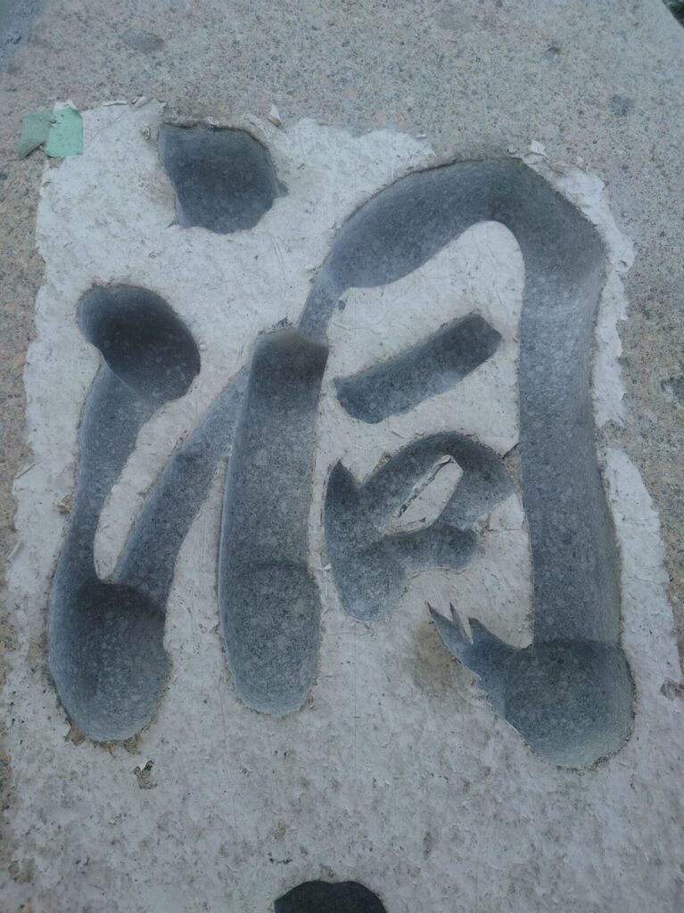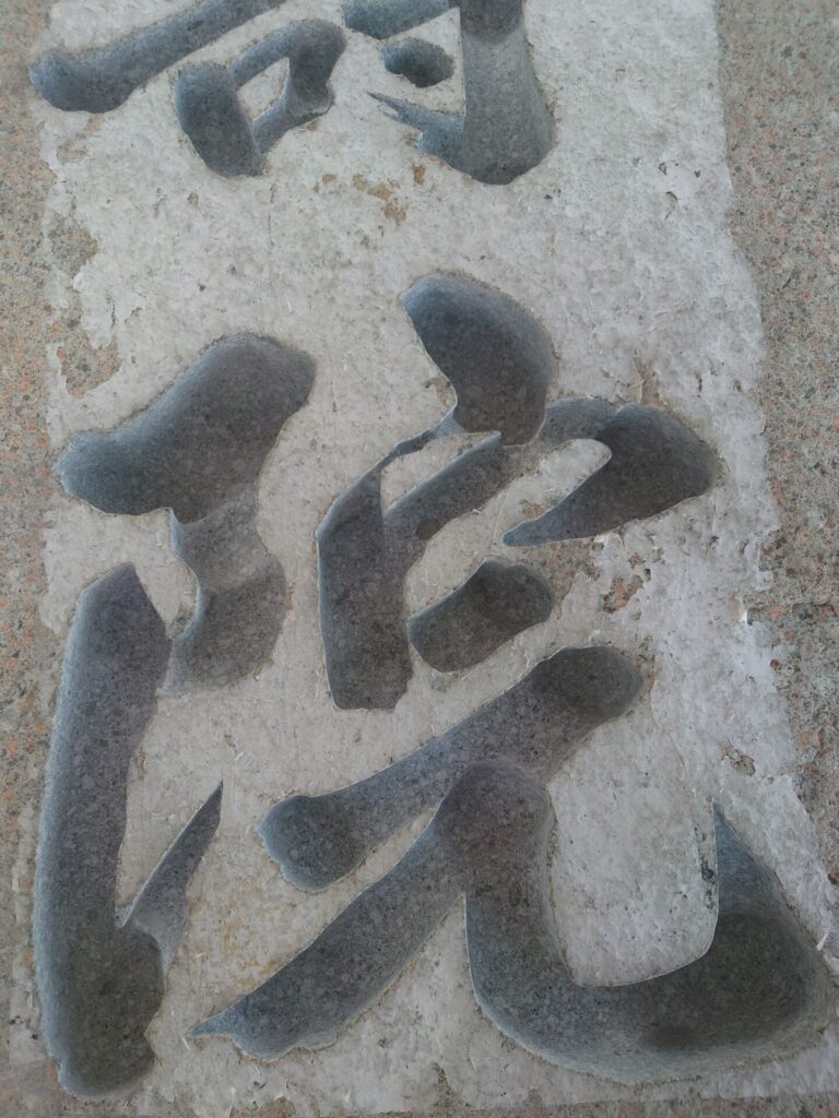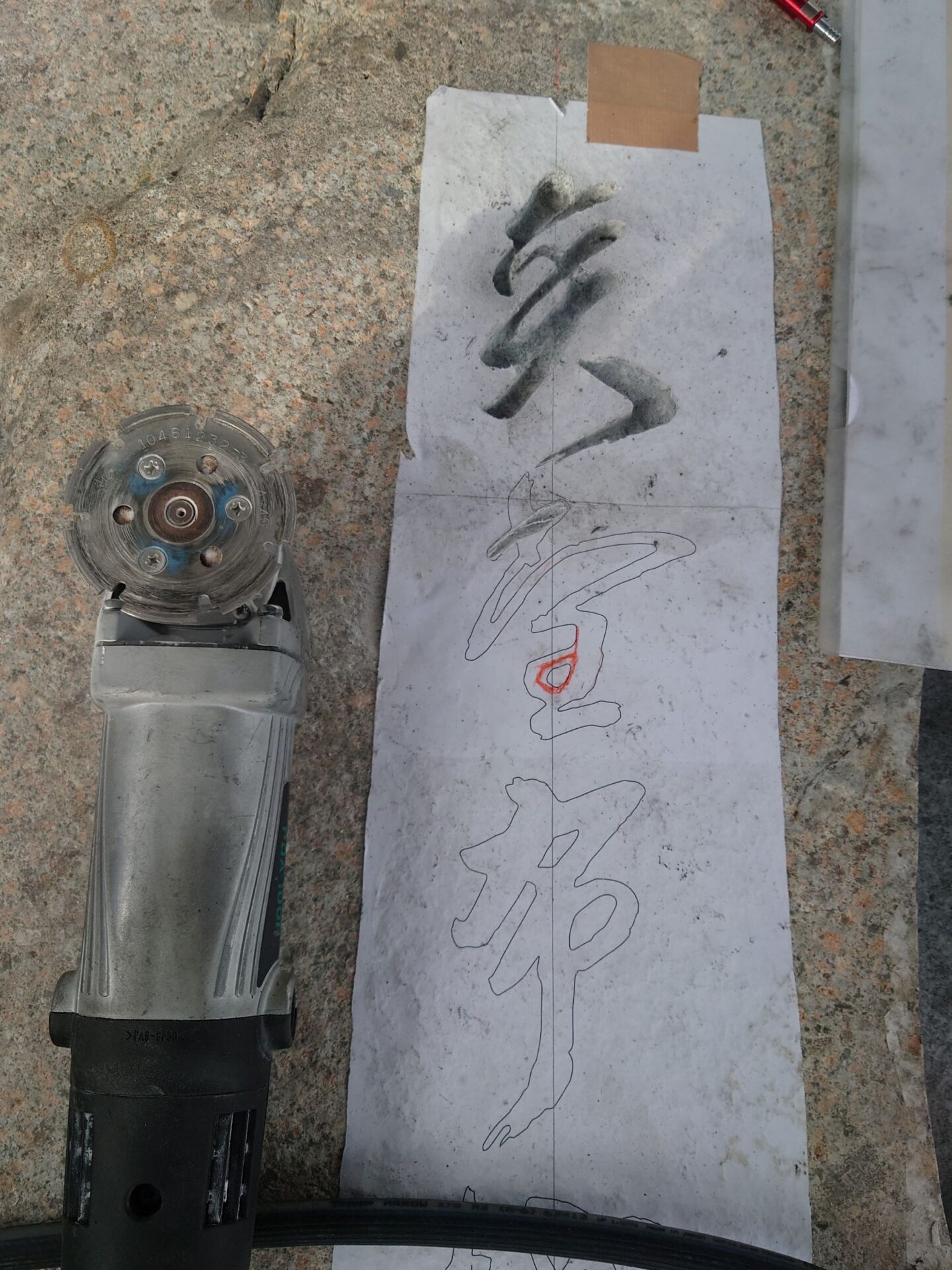 現代風手彫りとは・・・ 本当の手彫りは字彫りノミやコベラと言う道具をセットウ(かなずち)で叩いて文字を掘っていく技法です。 なんちゃっては電動工具(サンダーの薄刃)やエアーハンマー、ドリルなどの近代工具を使い姑息にも手彫りの様に仕上げていく技法です(笑)