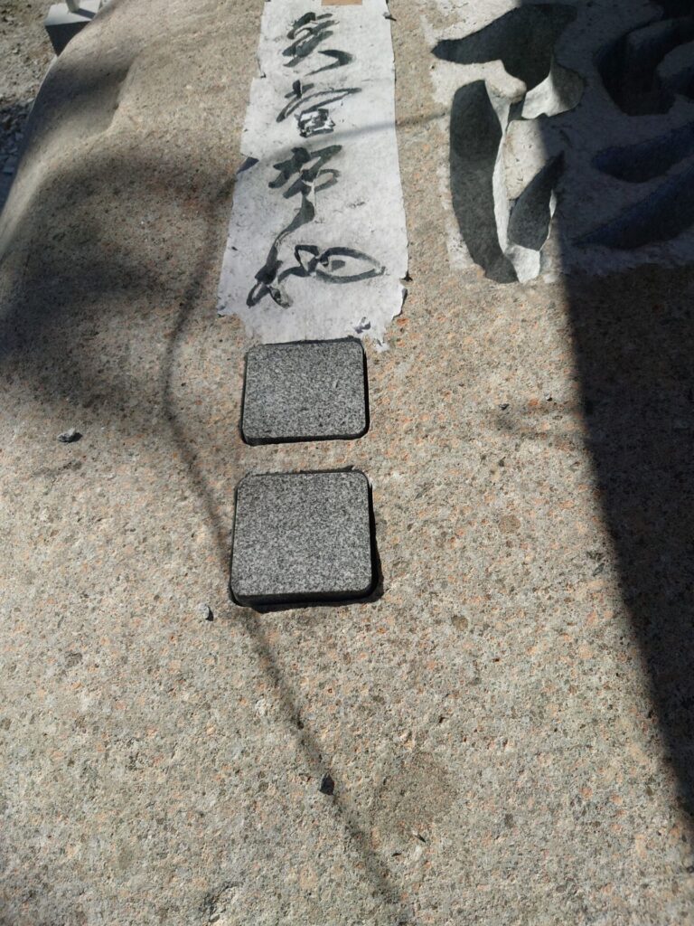 落款の形に石を加工してそこに落款を彫って埋め込もうという事になりました。