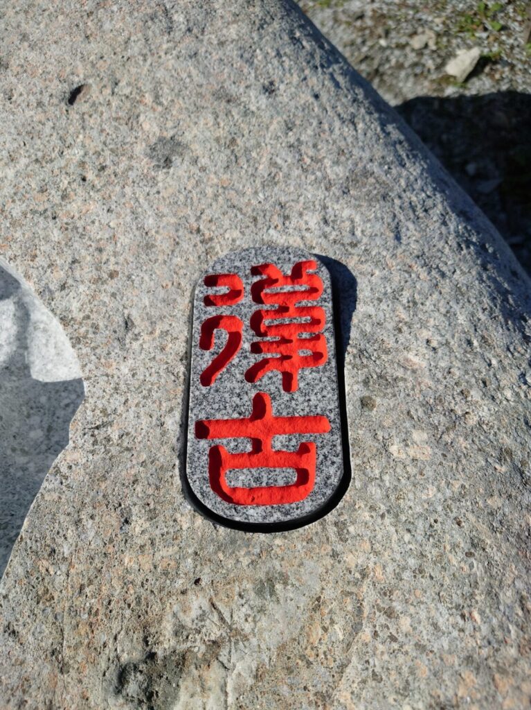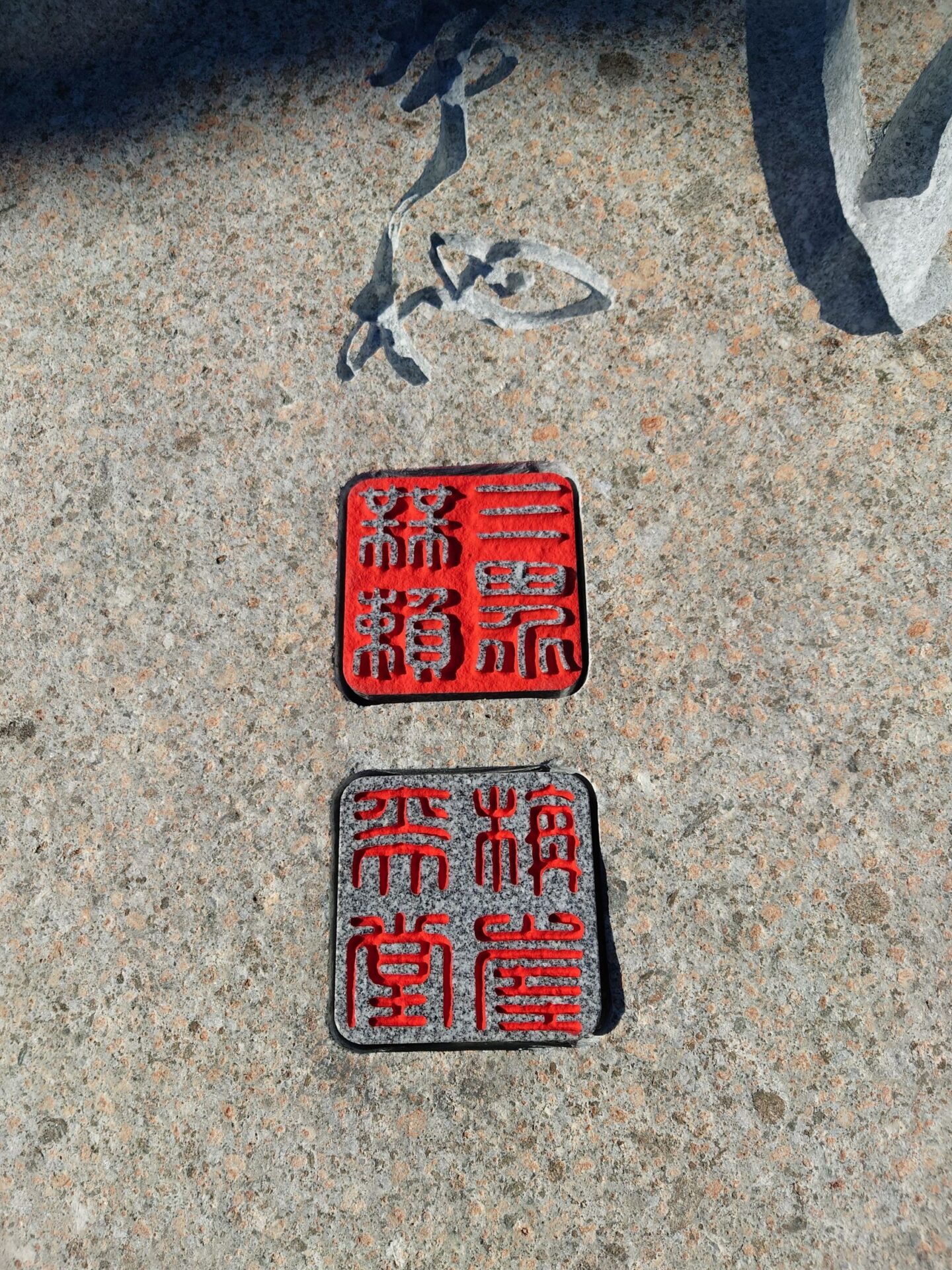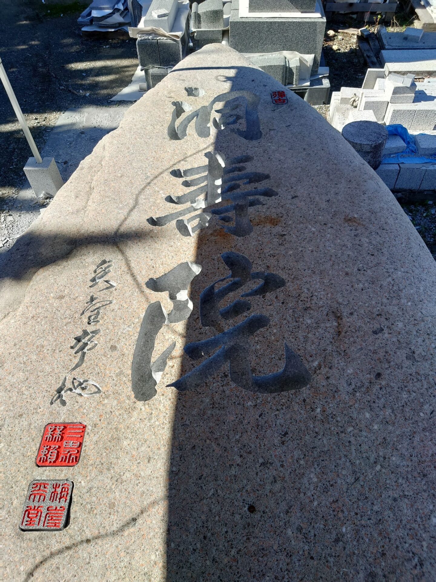 庵治石製の落款を彫って本物のハンコの様に赤色を入れます。