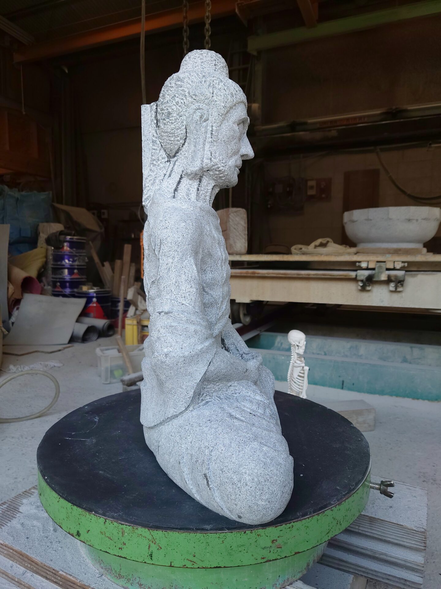 写真の苦行像の横に骸骨の見本がありますが、Amazonで買いました(笑)