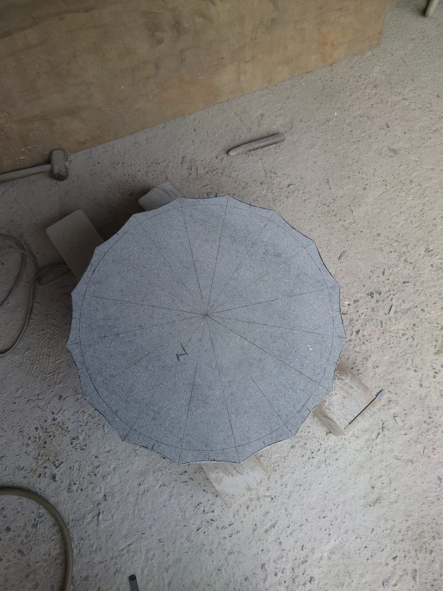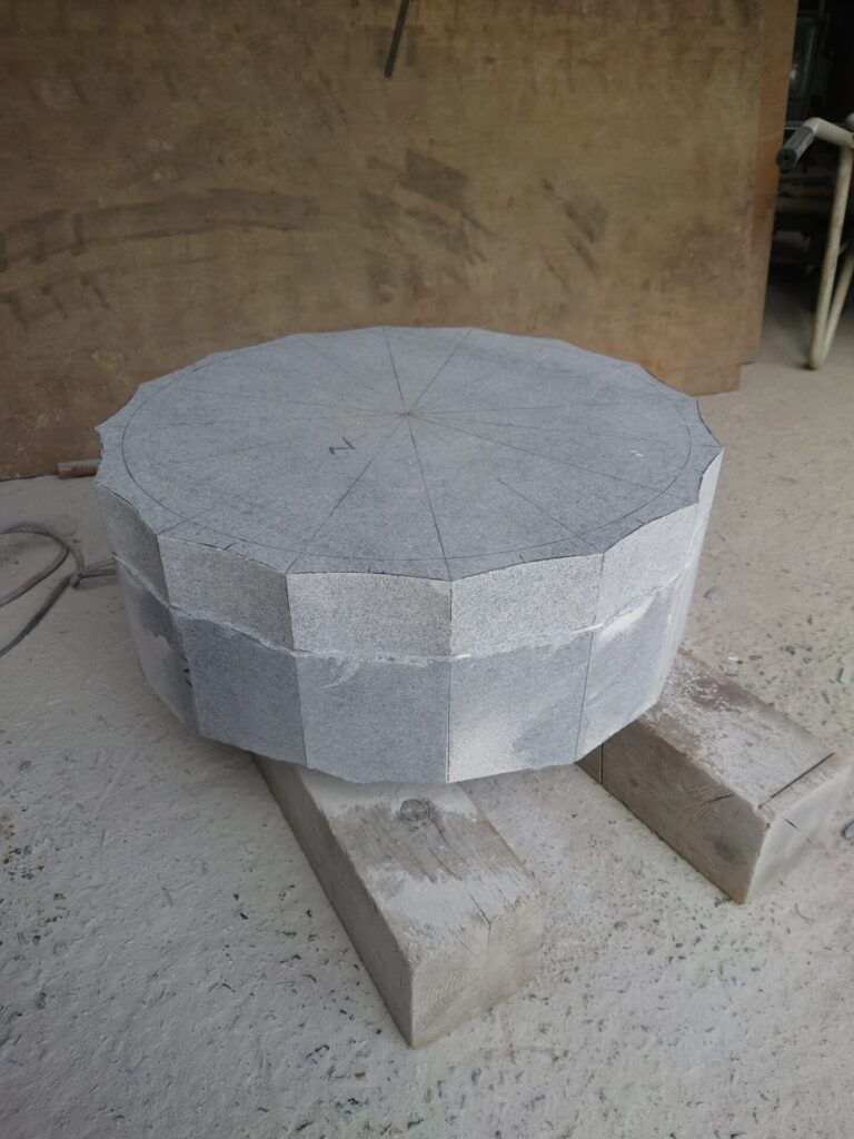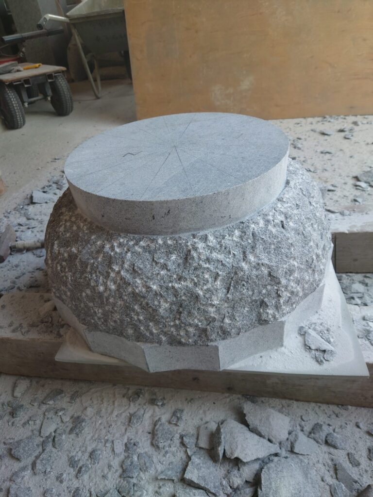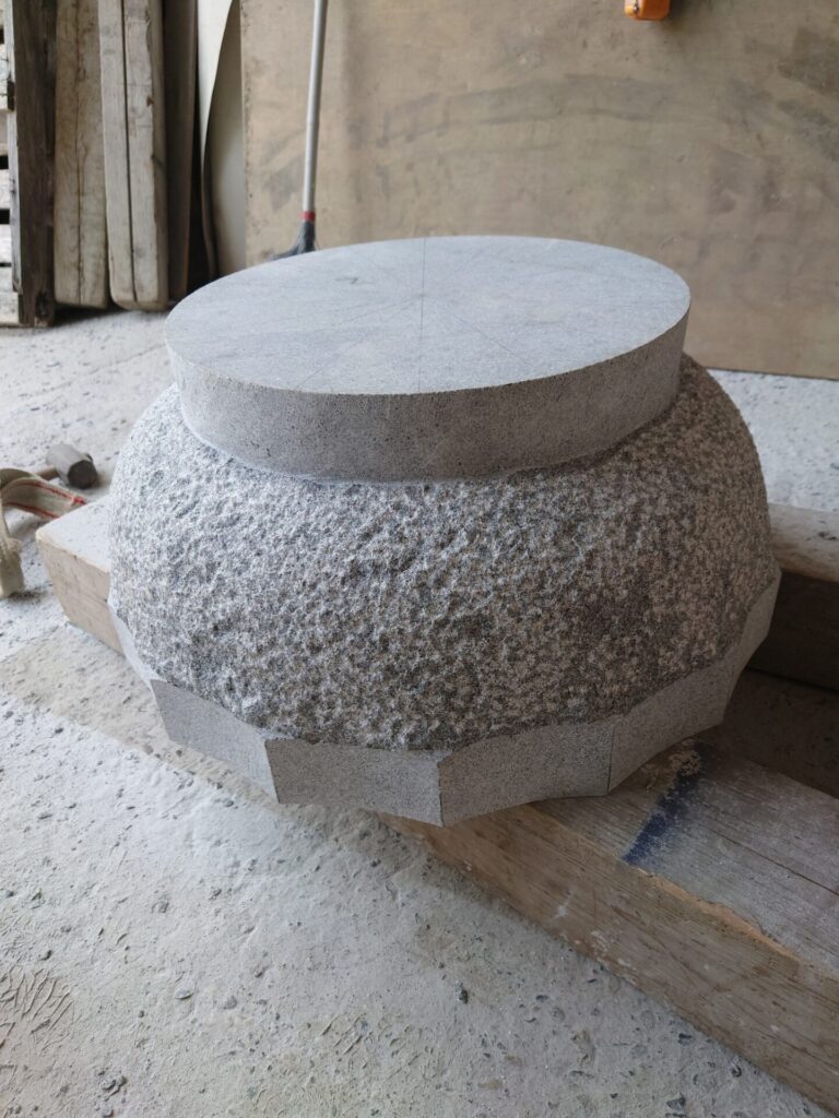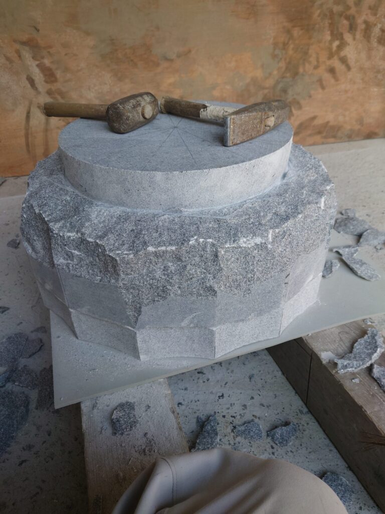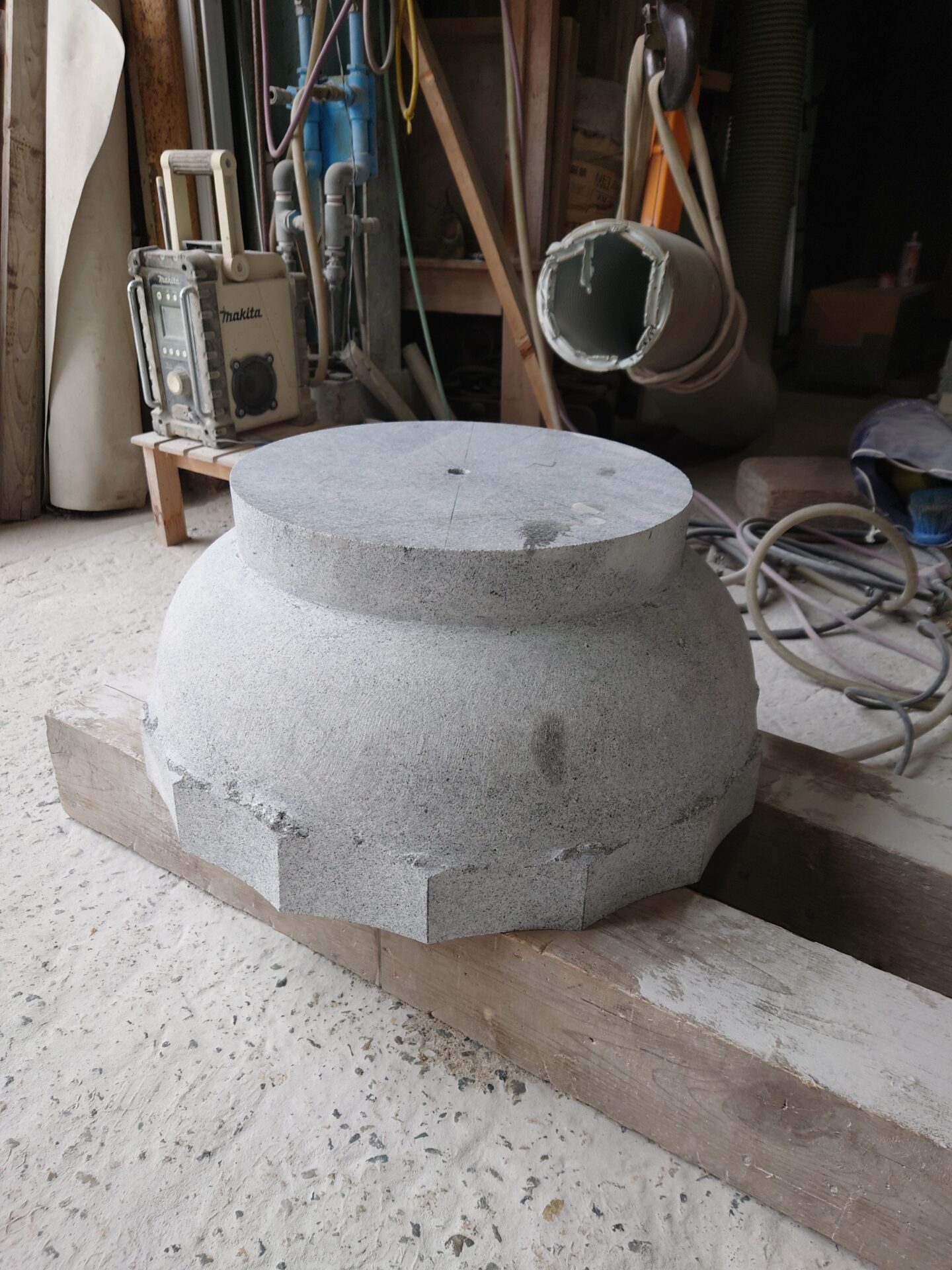 久しぶりの庵治石なんで恐る恐るはつっています。