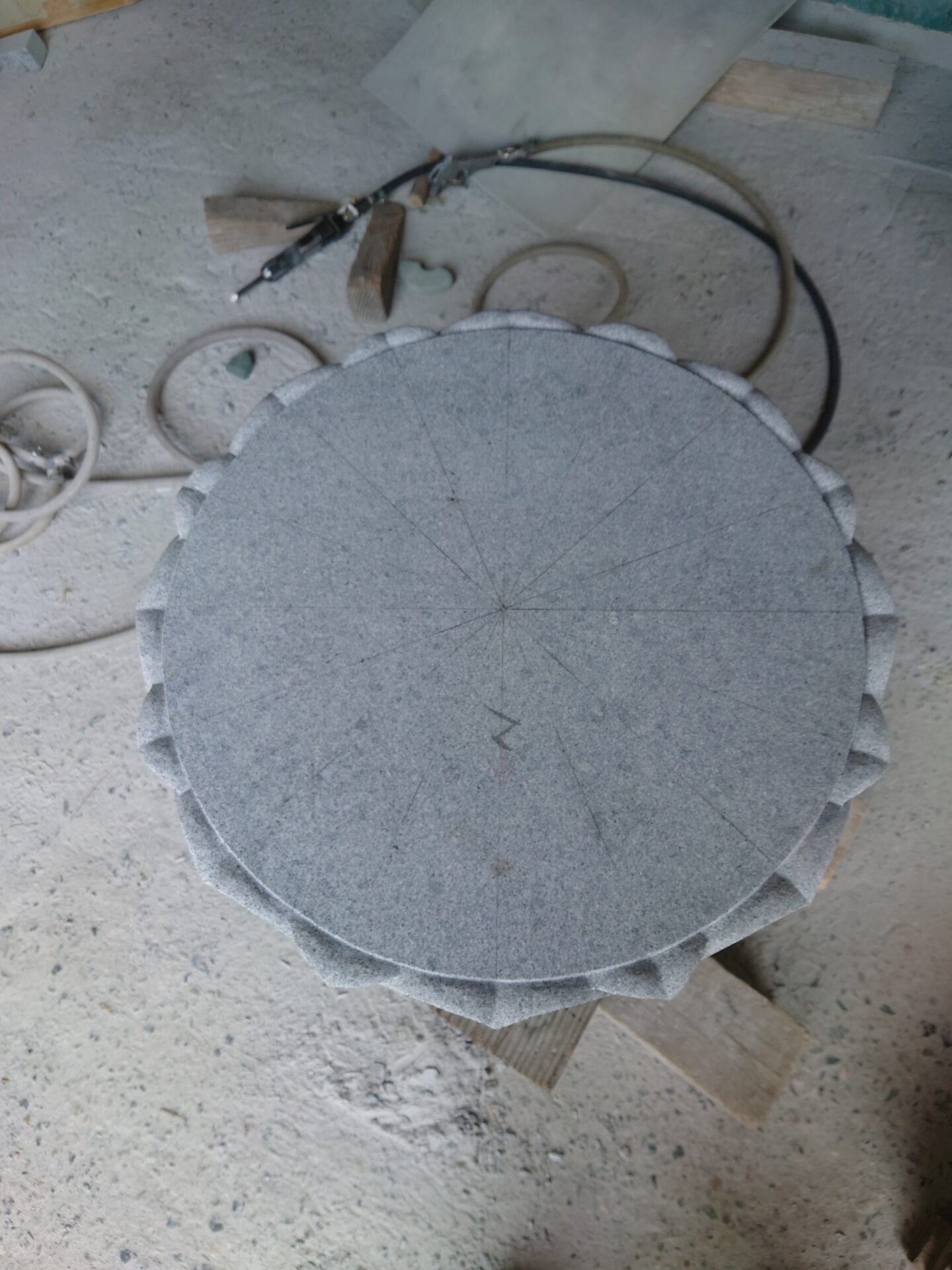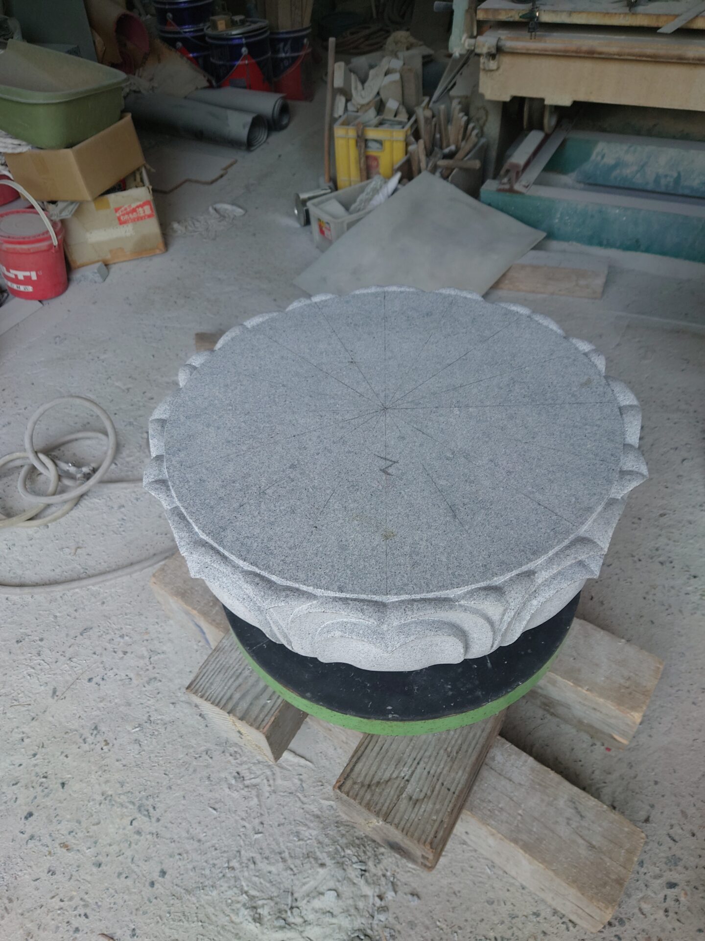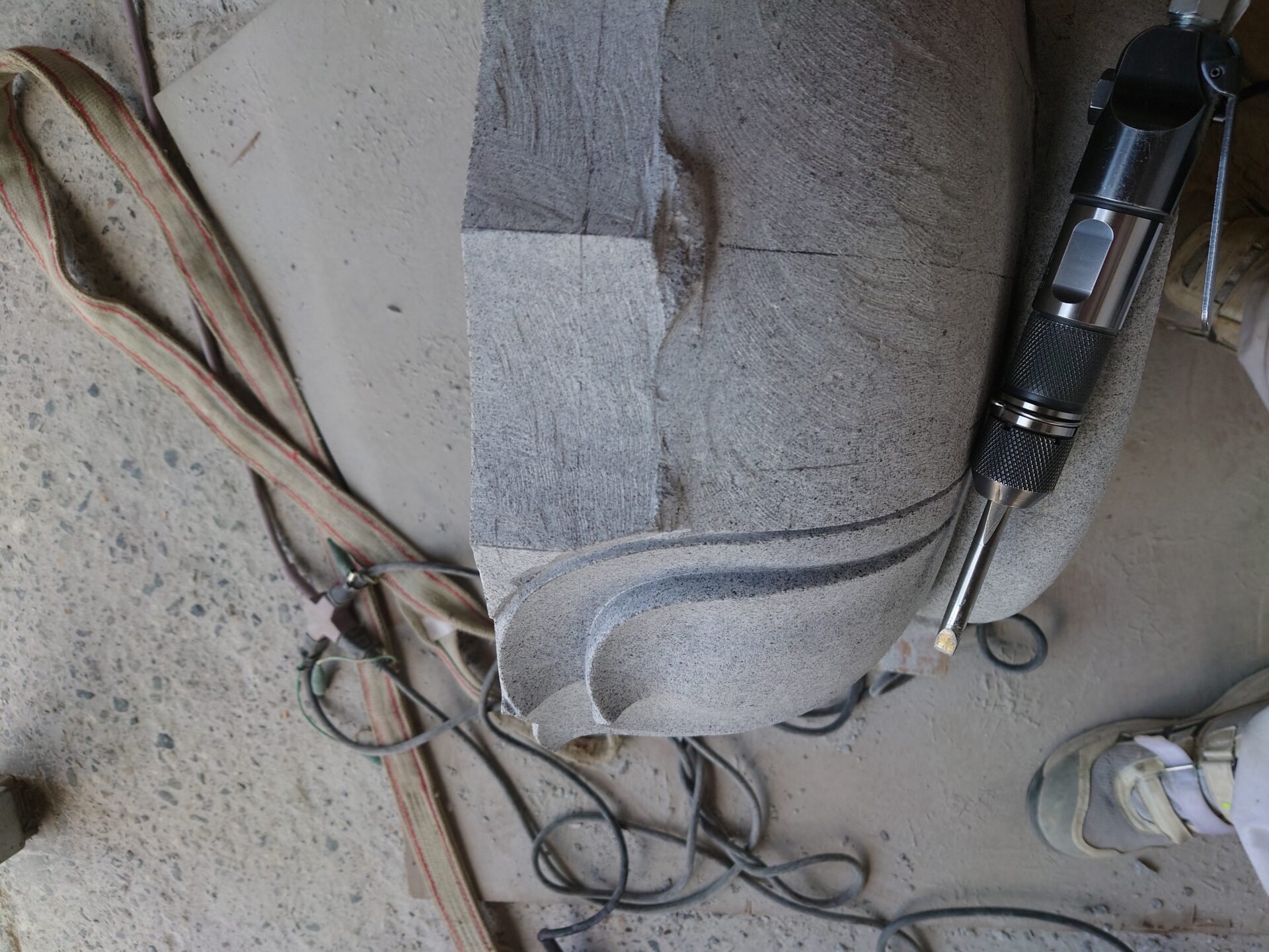 01Sep「 JR安土駅前に釈迦苦行像作らせて頂きました! 8/11 」ブログ 蓮華の花びらを作っていきます。 まずはサンダーの薄刃で花弁の外側を切ります。 エアーハンマーのノミで花弁の形を作ります。 動画です。(1.5倍速) サンダーのカップでこすって形を綺麗に仕上げていきます。 エアーハンマーのコベラで底を突いたりサンダーの薄刃で切れない所を加工していきます。 最後にエアーハンマーのコベラとサンダーの薄刃で天場を加工したら完成です。 こんな感じに仕上がりました。 いよいよ苦行像の完成です。 お楽しみに! 次回の記事はコチラ 「 JR安土駅前に釈迦苦行像作らせて頂きました! 9/11 」 | 【石大 兼子石材店】滋賀県近江八幡市の石彫刻のできる墓石店ここまで出来てくると出来上がりの感じが大分見えてくる。 最後の仕上げです。 目の周りもこんな感じに仕上げました 前回の記事はコチラ 「 JR安土駅前に釈迦苦行像作らせて頂きました! 7/11 」 | 【石大 兼子石材店】滋賀県近江八幡市の石彫刻のできる墓石店粗切りが終わった蓮華の天場から加工していきます。 角をややアールを付けて取っていきます。 2枚の写真でどういう 関連する記事: 「 JR安土駅前に釈迦苦行像作らせて頂きました! 9/11 」 「 JR安土駅前に釈迦苦行像作らせて頂きました! 7/11 」 「 JR安土駅前に釈迦苦行像作らせて頂きました! 5/11 」 「 JR安土駅前に釈迦苦行像作らせて頂きました! 6/11 」 「 JR安土駅前に釈迦苦行像作らせて頂きました! 2/11 」 「 JR安土駅前に釈迦苦行像作らせて頂きました! 3/11 」