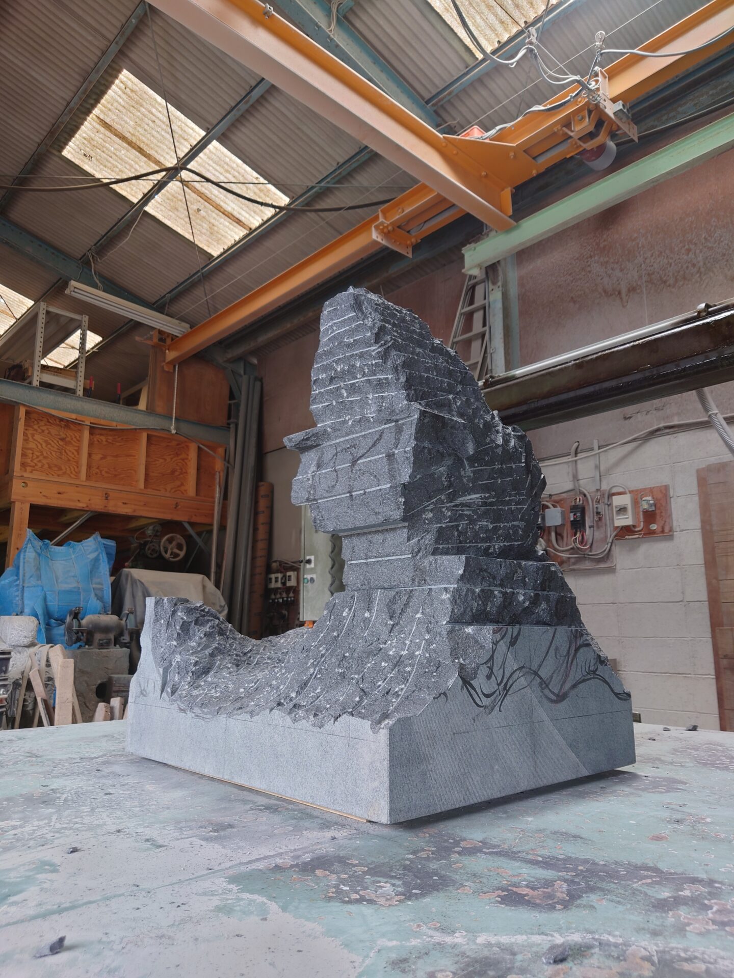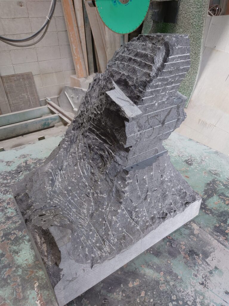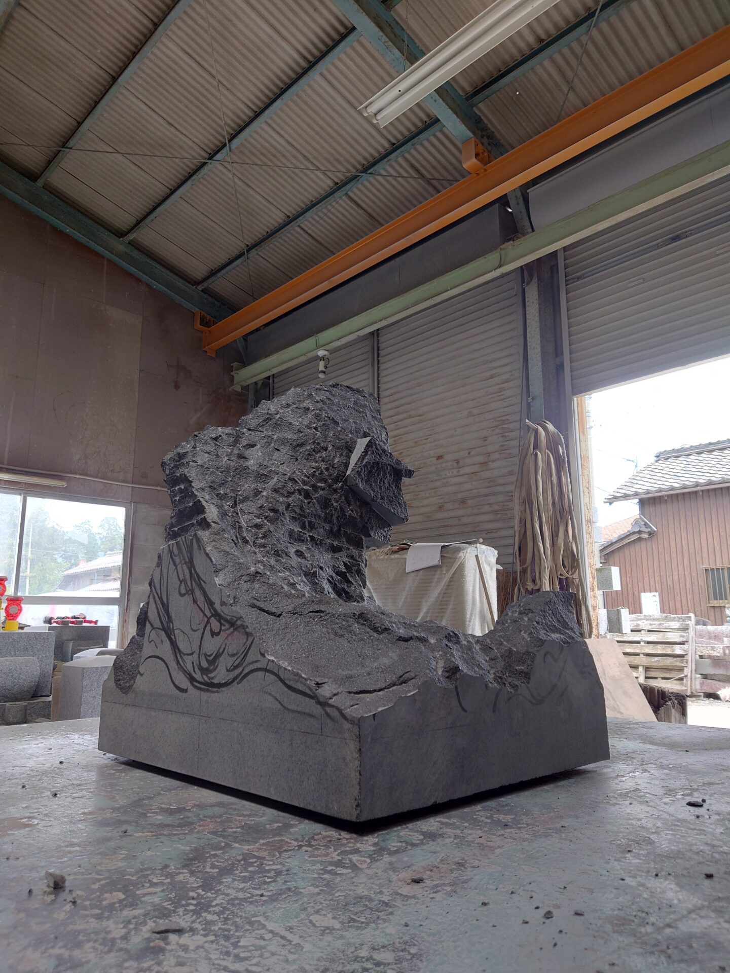 16Nov「お父様からの遺言!3人のご子息様から鯉の彫刻の依頼を受けました! 近江八幡市安土町浄厳院墓地 3/7 」ブログ ノミでハツって行きます。 と言っても黒石は御影石と比べるとめちゃめちゃ硬い。 たたくと金属のような音がします。 ノミでハツって行くと差し込み(取ろうと思っている所以上にキズが入る)が入る。 分かりにくいと思いますが。 なのでサンダーの薄刃で切り込みを入れて取っていきます。 切っては取り、切っては取りの連続です。 めちゃくちゃ時間がかかります。 これで粗取りは終了です。 次回からは段々形が出来ていきます。 前回の記事はコチラ 「お父様からの遺言!3人のご子息様から鯉の彫刻の依頼を受けました! 近江八幡市安土町浄厳院墓地 2/7 」 | 【石大 兼子石材店】滋賀県近江八幡市の石彫刻のできる墓石店鯉の加工が始まります。 なんせ石がデカイ! まずは絵を書いて粗切りをしていきます。 粗切り終了しました。 大分 次回の記事はコチラ 「お父様からの遺言!3人のご子息様から鯉の彫刻の依頼を受けました! 近江八幡市安土町浄厳院墓地 4/7 」 | 【石大 兼子石材店】滋賀県近江八幡市の石彫刻のできる墓石店粗取りが終わりこれから形を作っていきます。 形を作っていくのもサンダーの薄刃で切りながら作っていきます。 前回 関連する記事: 「お父様からの遺言!3人のご子息様から鯉の彫刻の依頼を受けました! 近江八幡市安土町浄厳院墓地 4/7 」 「お父様からの遺言!3人のご子息様から鯉の彫刻の依頼を受けました! 近江八幡市安土町浄厳院墓地 2/7 」 「お父様からの遺言!3人のご子息様から鯉の彫刻の依頼を受けました! 近江八幡市安土町浄厳院墓地 1/7 」 「 JR安土駅前に釈迦苦行像作らせて頂きました! 11/11 」 「宝篋印塔・日本石材工業新聞社が宝篋印塔の取材に来ちゃいました !! 滋賀県石材組合連合会40周年記念 32 」 「ワシの作ってる宝篋印塔の下台の石が来た~! 滋賀県石材組合連合会40周年記念 10 」
