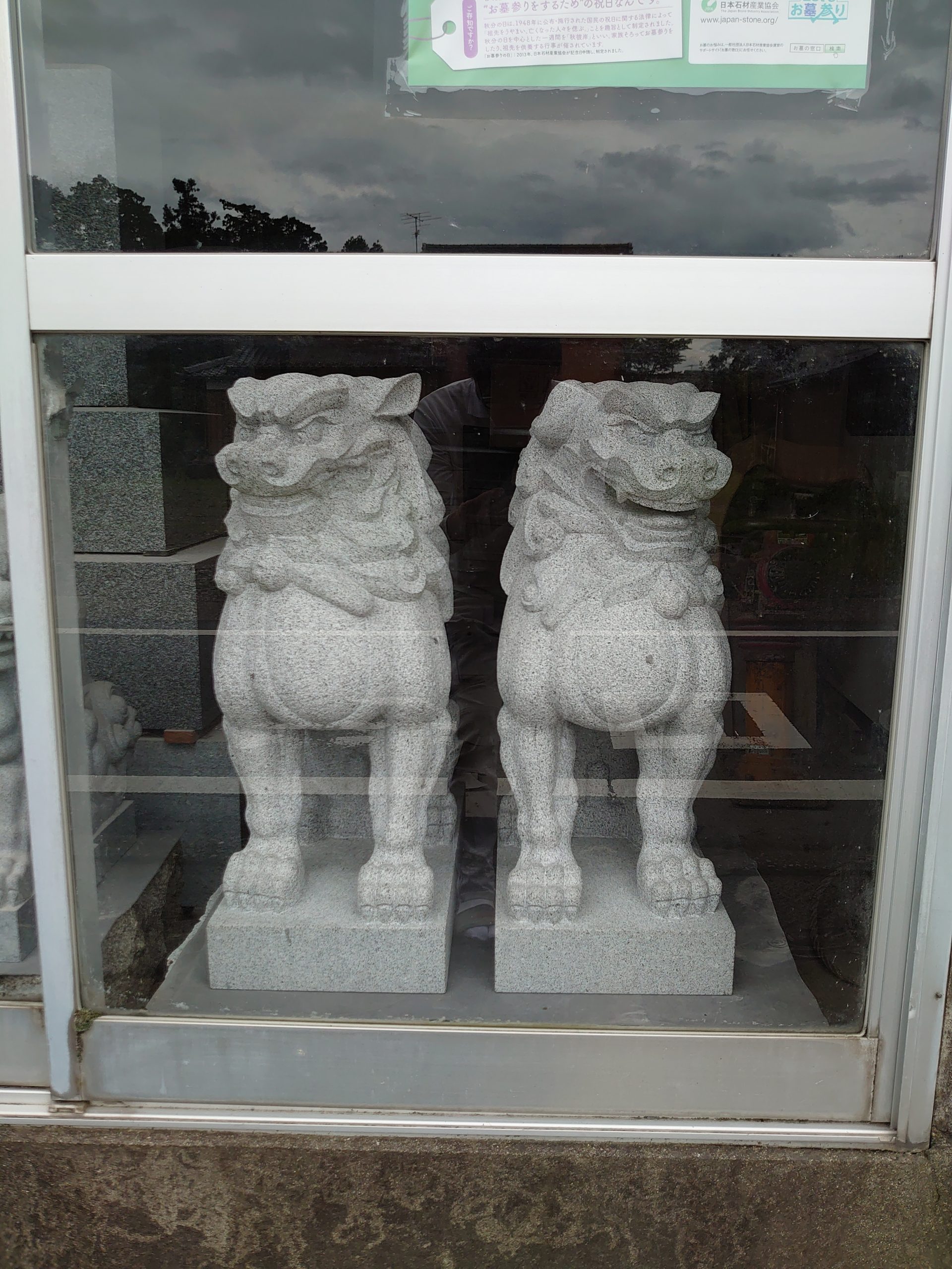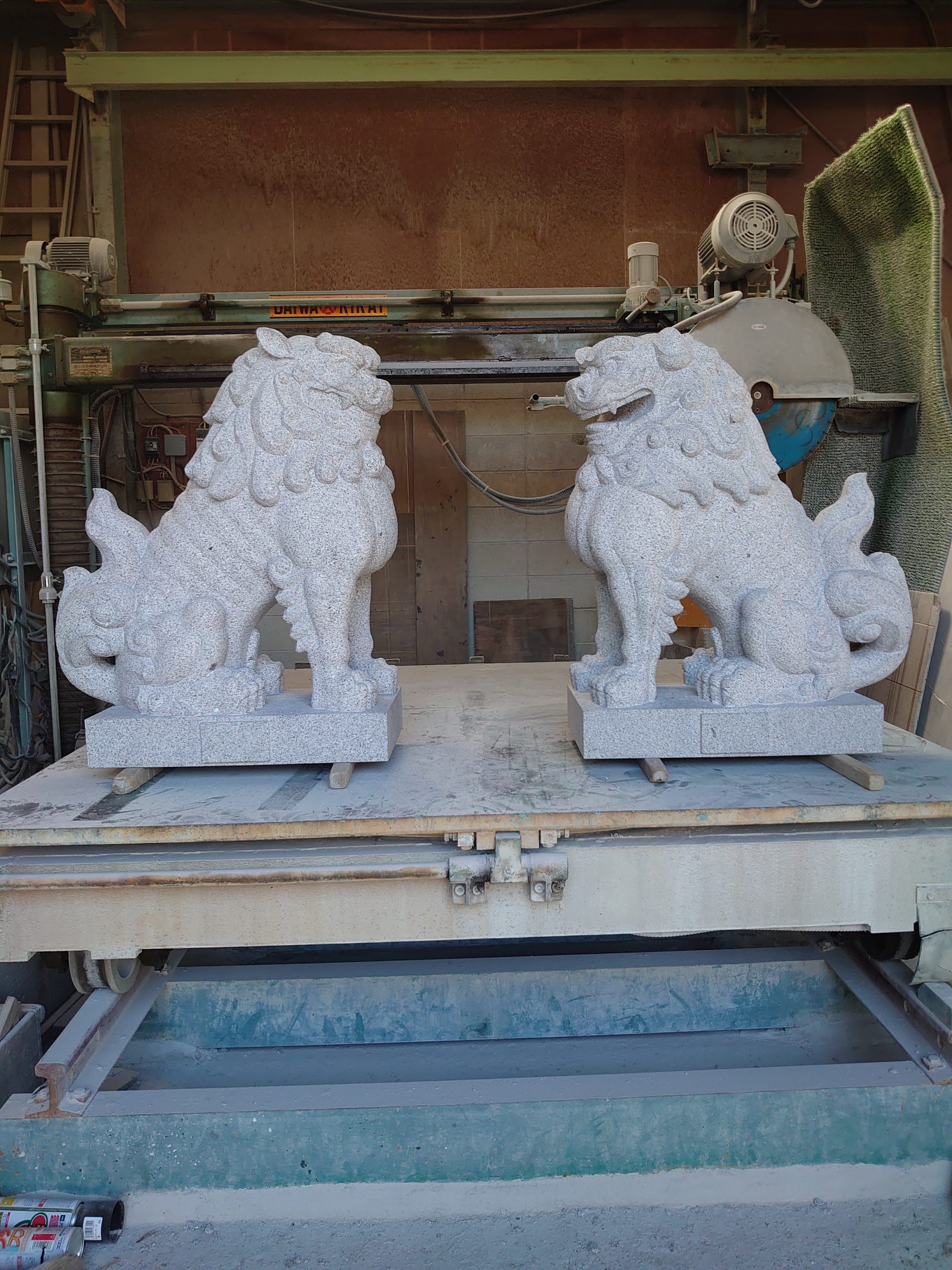 17Mar狛犬 17 古代型 展示品 展示用に古代型の狛犬を作りました。 大きさは、台の下から頭の上までで2尺5寸(約76㎝)です。 工場の中から外を見ています。 石種 額田中目石(愛知県) 古代型狛犬の制作ブログはコチラ 「やっと出来た2尺5寸古代型狛犬(展示用(涙))!!」 | 【石大 兼子石材店】滋賀県近江八幡市の石彫刻のできる墓石店暇に任せて作り出した狛犬。 まだブログではなくFacebookページでの投稿をしていた時。 いつ頃作り始めたか 兼子石材店 工場はコチラ