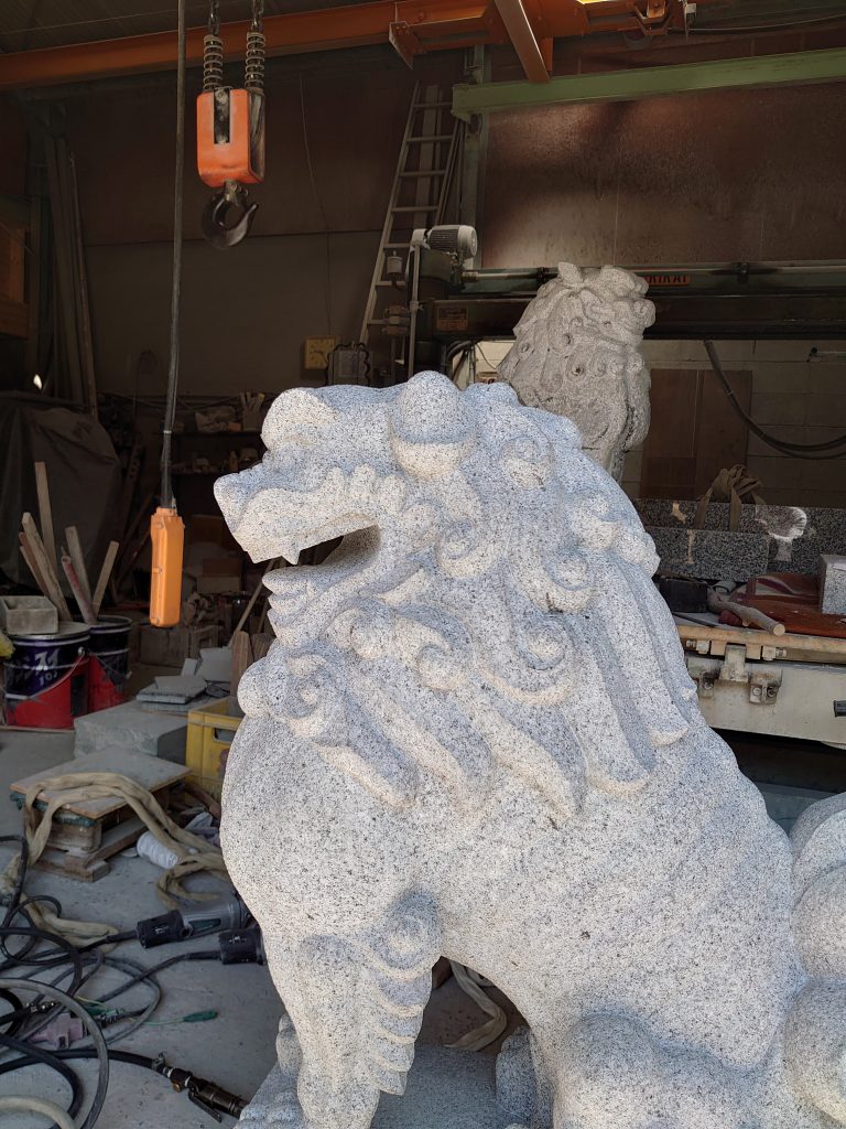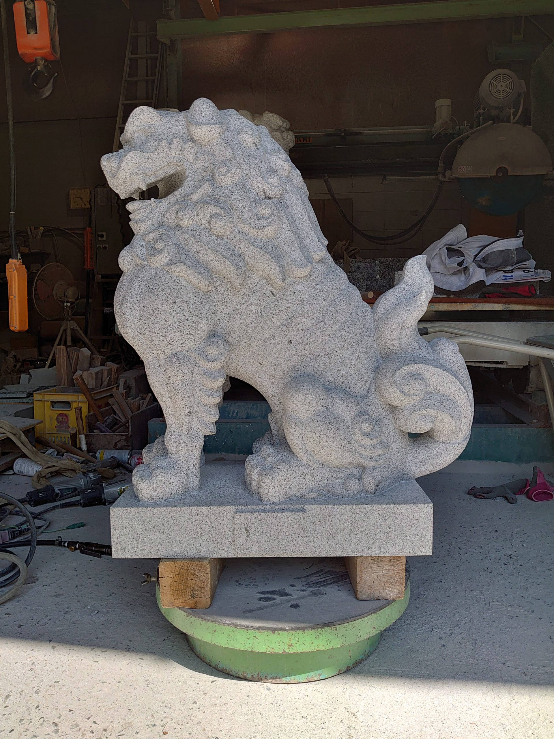 17Mar狛犬 18 古代型・阿型 展示品 展示用に古代型の狛犬を作りました。 大きさは、台の下から頭の上までで2尺5寸(約76㎝)です。 石種 額田中目石(愛知県) 古代型狛犬の制作ブログはコチラ 「やっと出来た2尺5寸古代型狛犬(展示用(涙))!!」 | 【石大 兼子石材店】滋賀県近江八幡市の石彫刻のできる墓石店暇に任せて作り出した狛犬。 まだブログではなくFacebookページでの投稿をしていた時。 いつ頃作り始めたか 兼子石材店 工場はコチラ