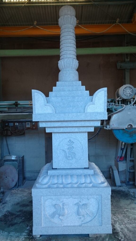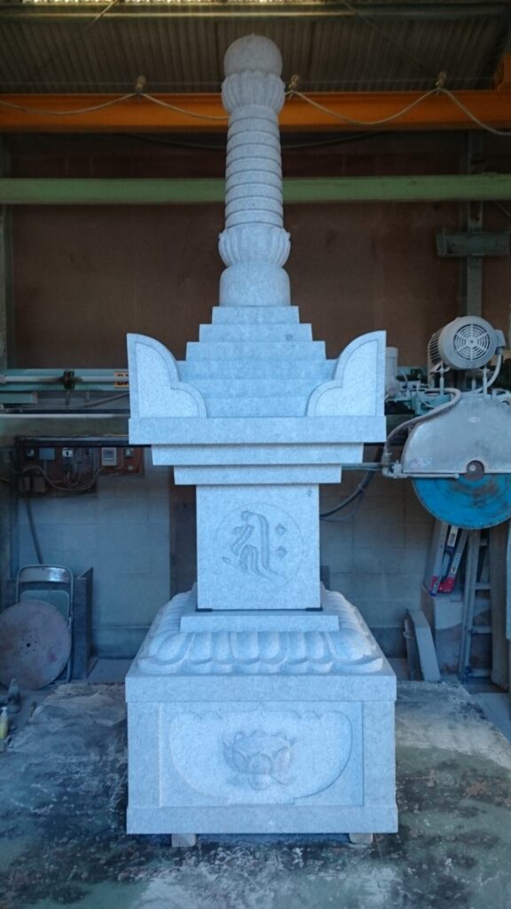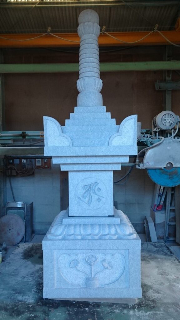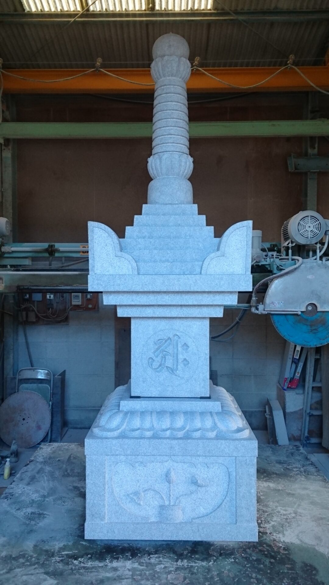 17Mar宝篋印塔 滋賀県石材組合連合会 古墓供養塚 大津市 滋賀県石材組合連合会の40周年記念で無縁塚に宝篋印塔を作ろうと決まり、僕が作らせて頂きました。 なかなかこのような大きな宝篋印塔作らせて頂けないので僕にとってもいい記念になりました。 上の写真より下は青年部が制作、据え付けました。 石種 庵治石細目(香川県) この宝篋印塔の制作ブログはコチラ 「決定~! やっと決まった! 滋賀県石材組合連合会40周年記念 1 」 | 【石大 兼子石材店】滋賀県近江八幡市の石彫刻のできる墓石店昨日は滋賀県石材組合連合会の理事会・40周年実行委員会の合同会議に出席してきました。 ワシは40周年実行委員会で参加しました。 ワシは40周年記念の式典委員なんですわ。 それに今日は記念のモニュメント何を作るか決まる日! それで決まったのがこれ! 「宝篋印塔(供養塔)小たたき仕上げ!」 これワシが作ります! めっちゃ楽しみです。 これから制作中の様子を随時アップしていきます。 お楽しみに! 場所は非公開です。 (時間が合えばお連れすることは可能です)