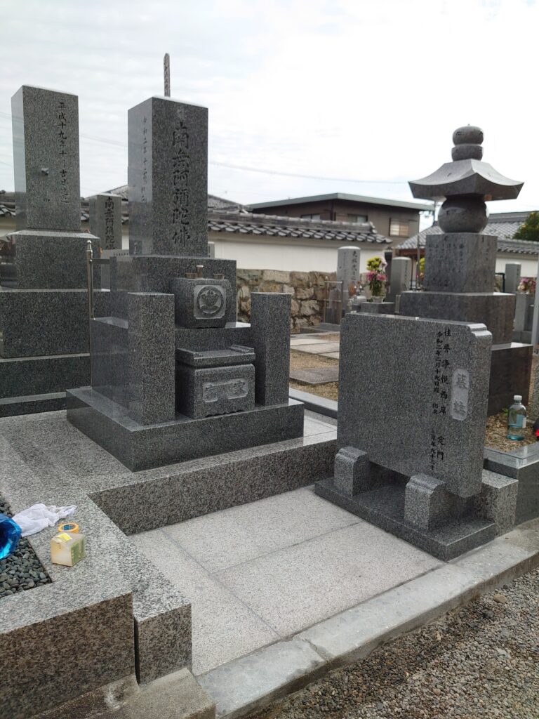 17Mar墓石 普通京都型三重台(墓誌付き・バリアフリー型巻石) 近江八幡市孫平治町 洞覚院 一番シンプルな昔から滋賀県では多い形の墓石です。 巻石は段々増えてきたバリアフリー型です。 以前の階段式ほど足を上げなくても入れます。 お年をめされてからでも入りやすいです。 石種 本体・墓誌 大島石特級 巻石 623(中国) この墓石の施工ブログ 「バリアフリー型巻石でお墓建て!! 基礎編 近江八幡市 洞覚院」 | 【石大 兼子石材店】滋賀県近江八幡市の石彫刻のできる墓石店このお寺もめちゃくちゃ久しぶりに行きました。 うちのご近所の方が墓石を建てたいと言うご親戚を紹介して下さいました。 ありがたい話です。 場所は近江八幡市孫平治町にある浄土宗 洞覚院です。 先ずは基礎から! 洞覚院の場所はコチラ