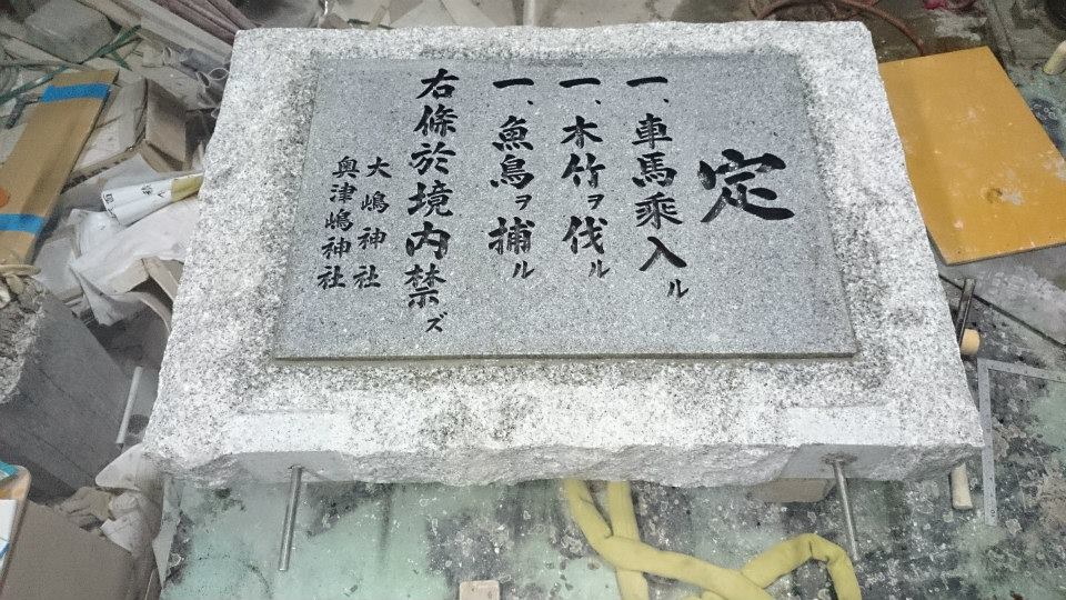 周りを割り肌仕上げにして文字を彫る所の石をはめ込みました。