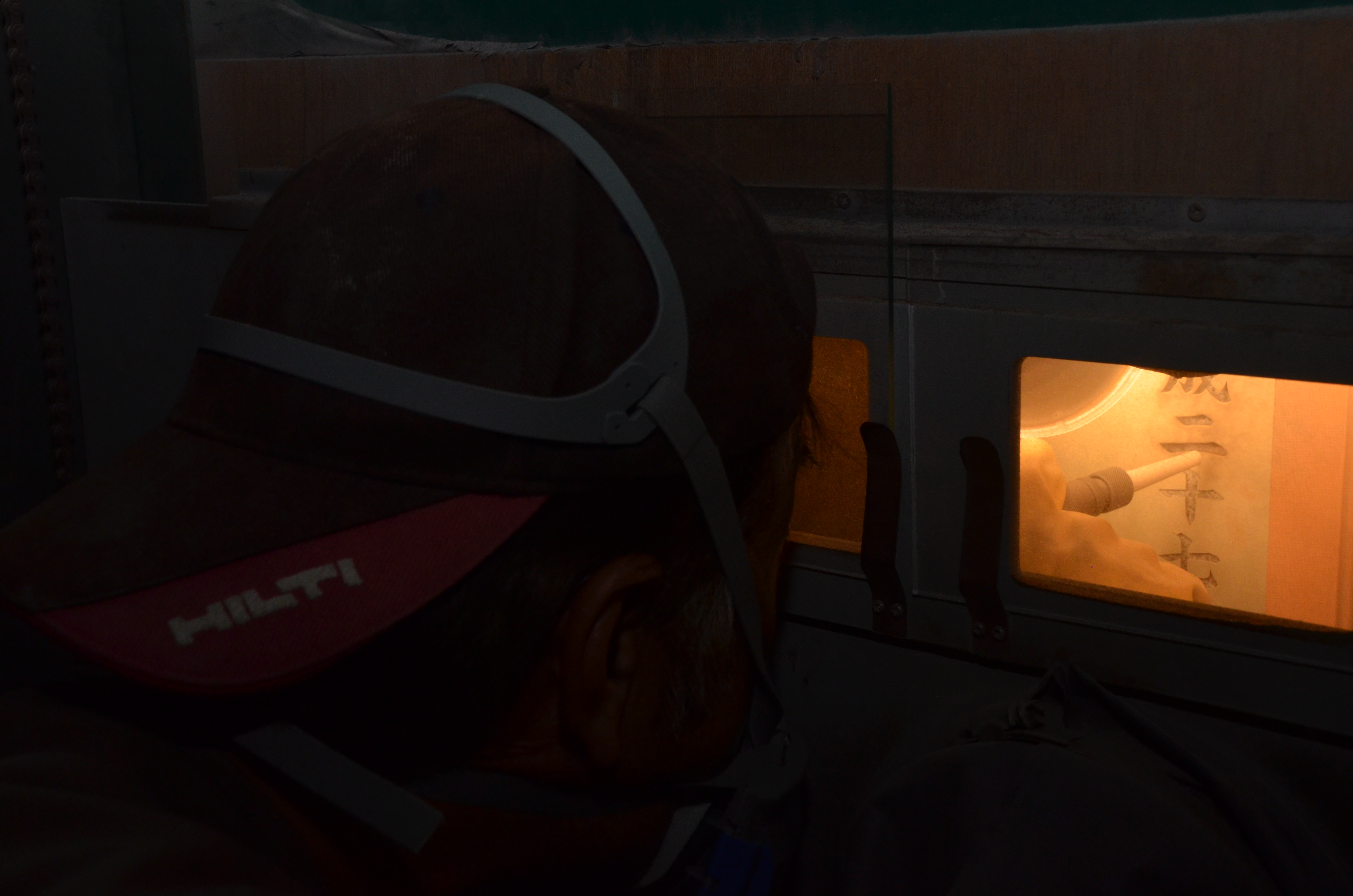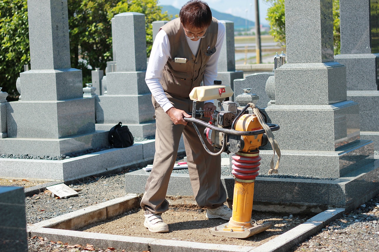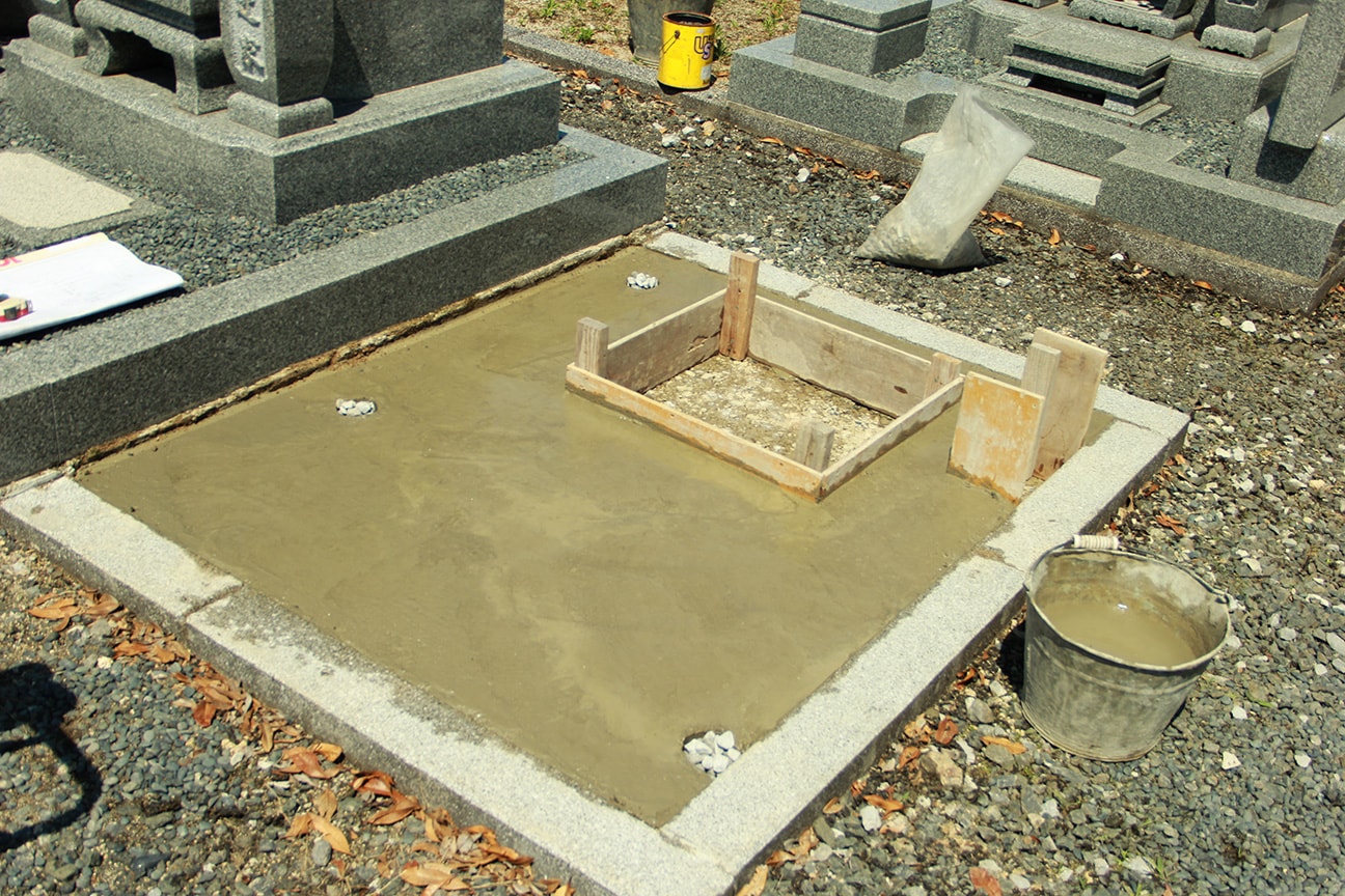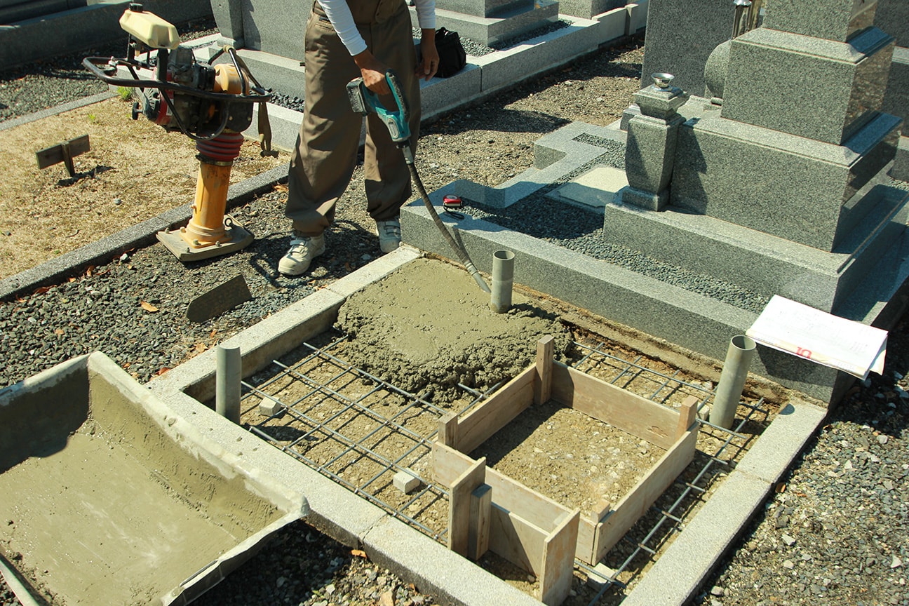 コンクリートが均一にいきわたるようにバイブレーターをかけます。